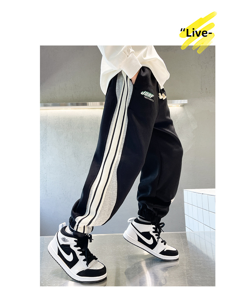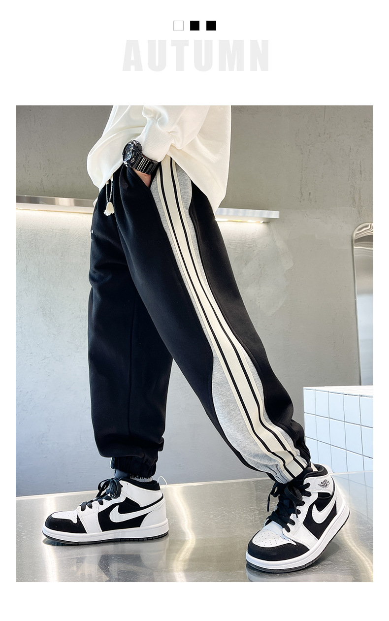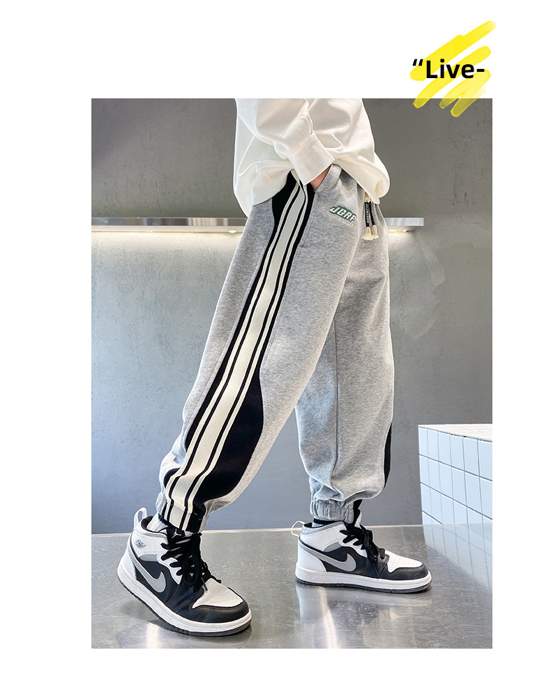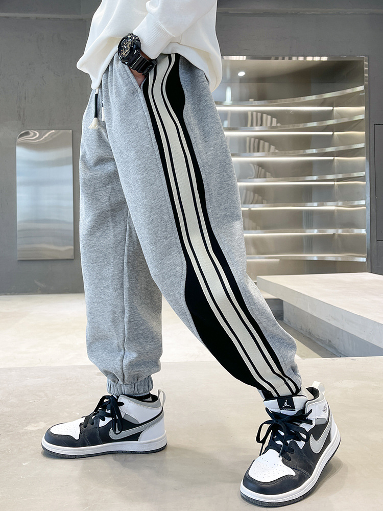 Брюки для мальчиков осень-зима 2023 новые большие детские спортивные штаны для отдыха, Индивидуальные детские бархатные штаны оптом