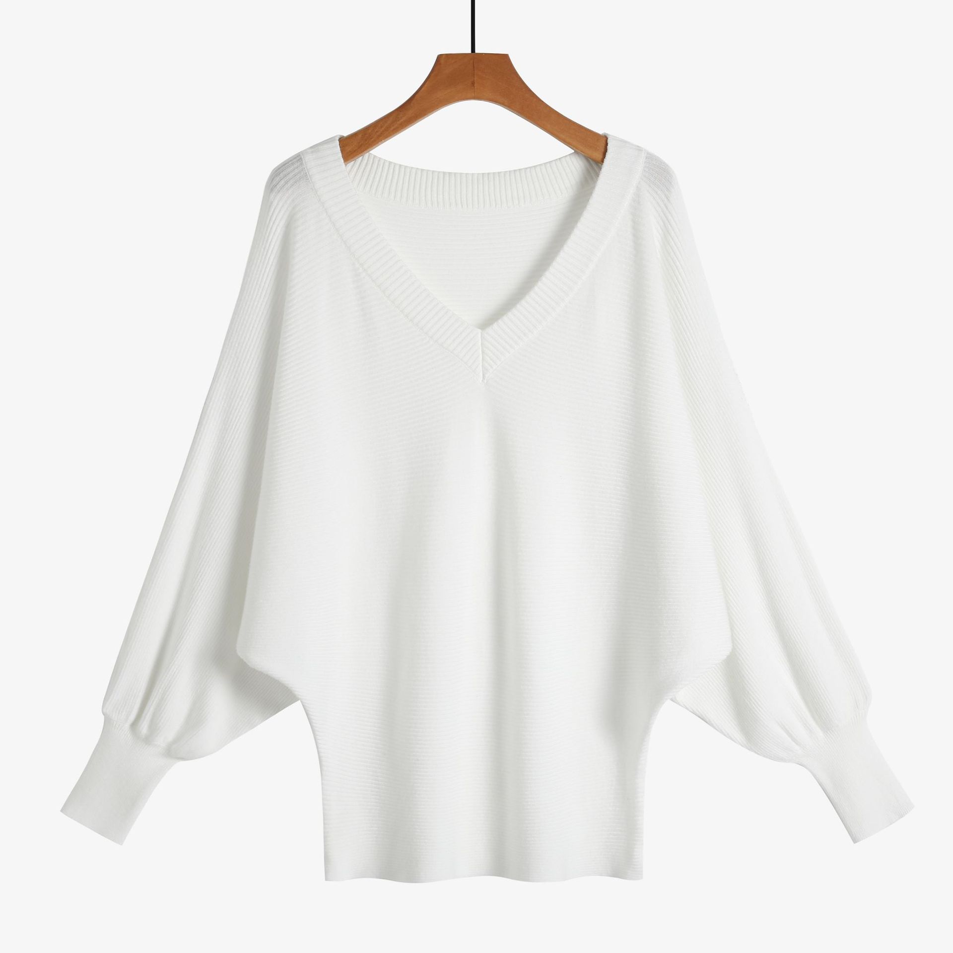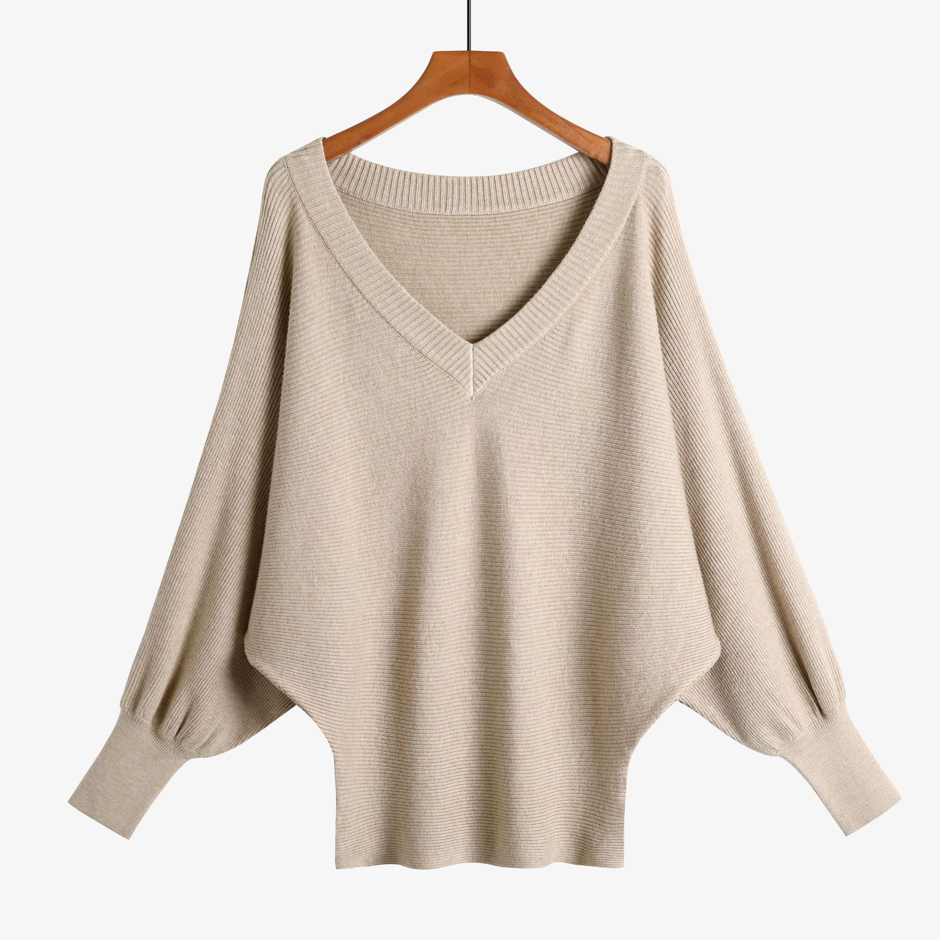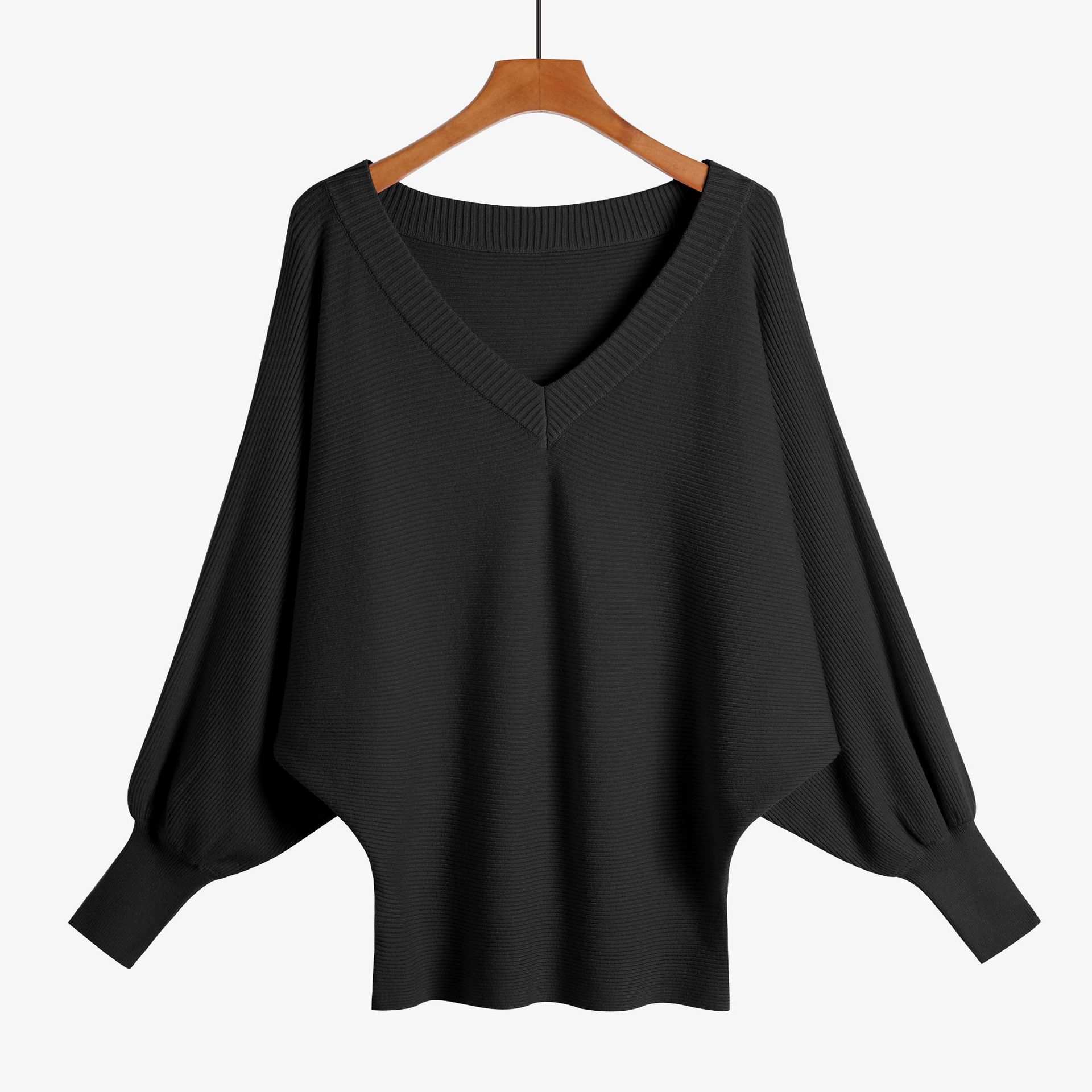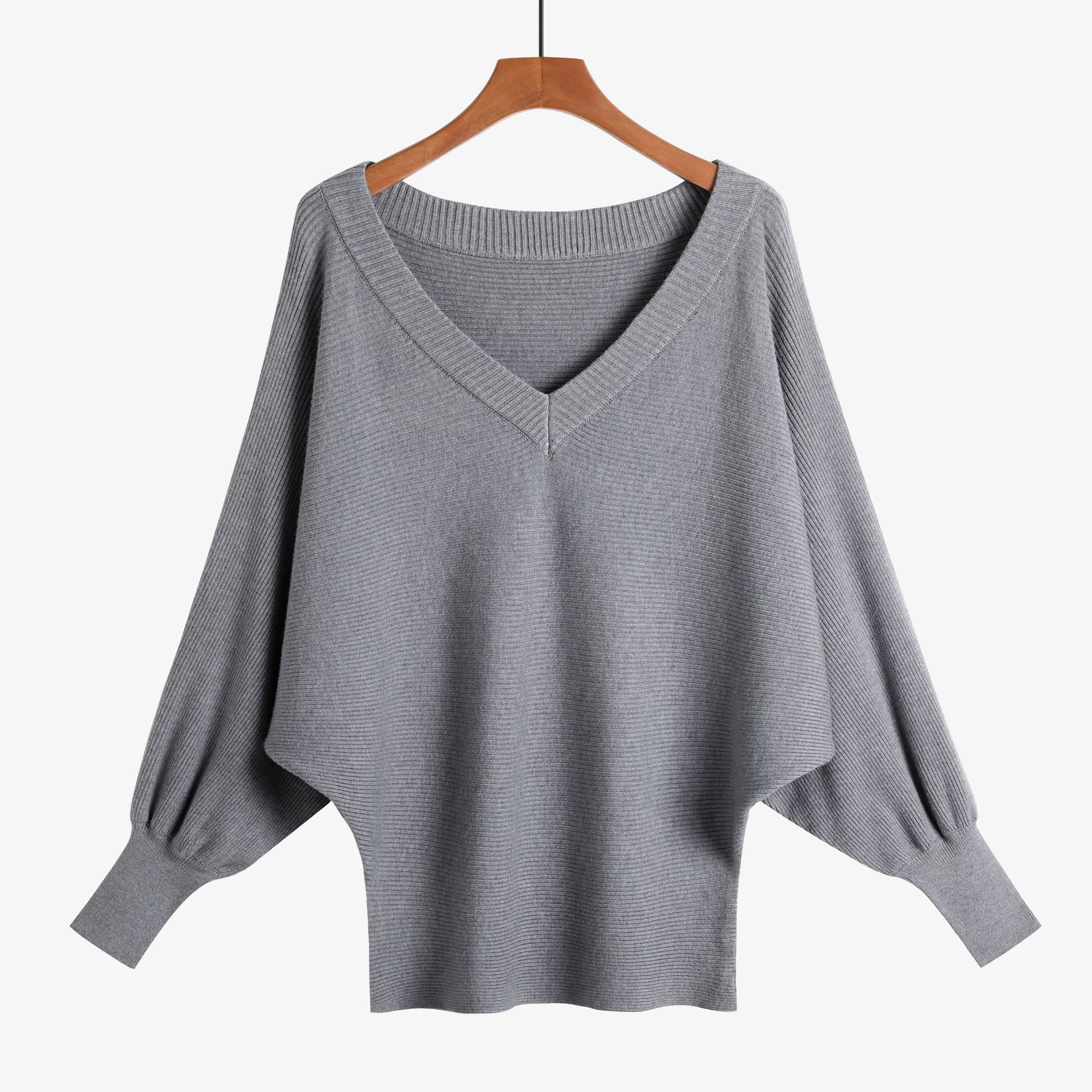 2023 Новый популярный на Amazon женский свитер-рубашка «летучая мышь» с большим V-образным вырезом ключицы Свободный пуловер с большой доской