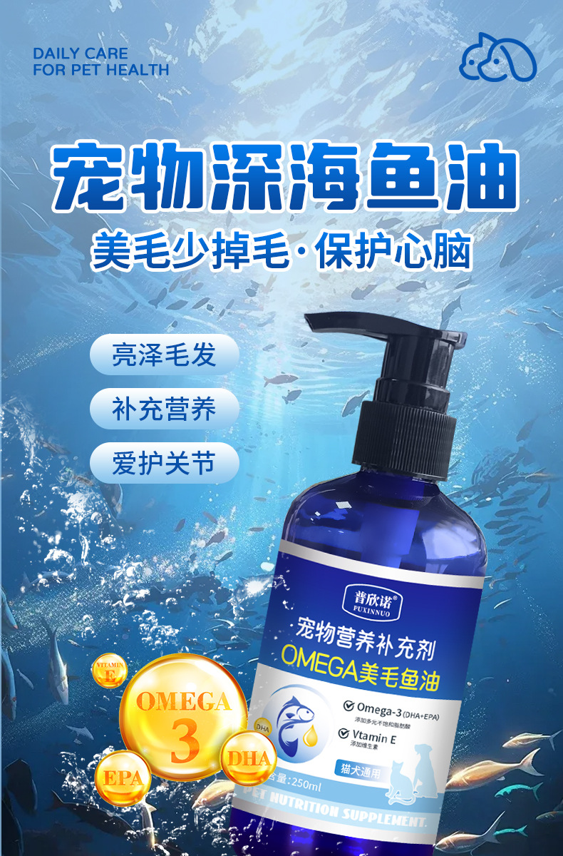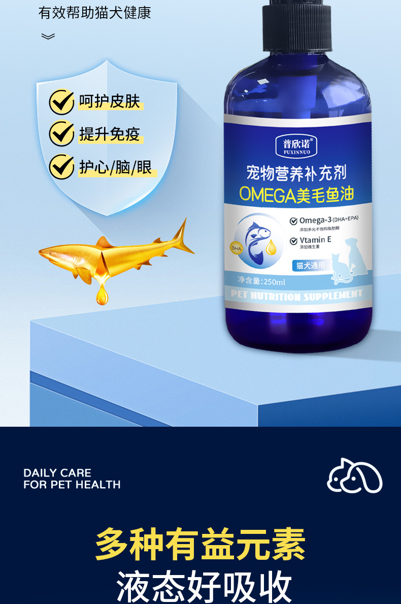 Puxinuo рыбий жир для домашних животных, рыбий жир для собак, товары для здоровья домашних животных, рыбий жир для кошек, добавка в форме капель с рыбьим жиром