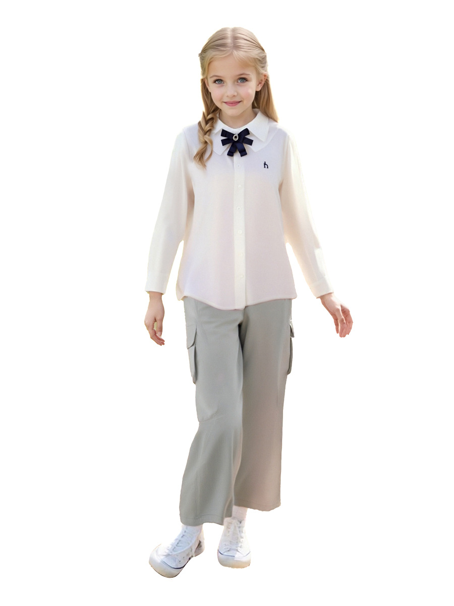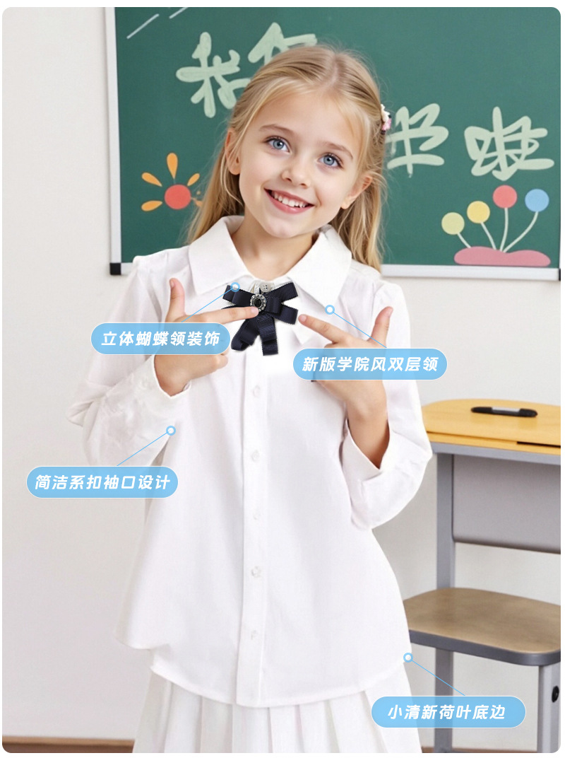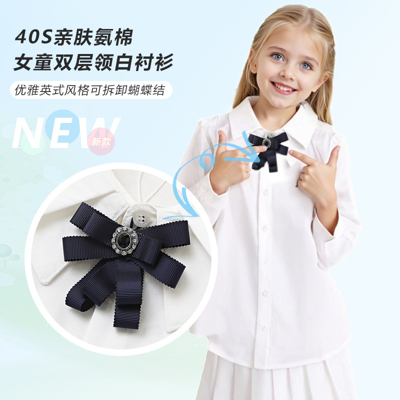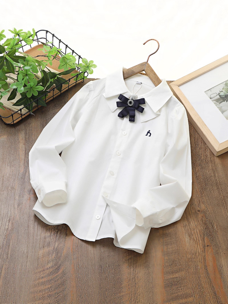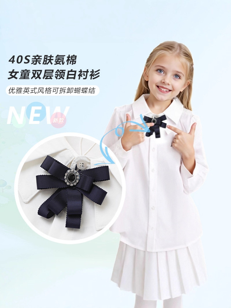 Коллекция Весна 2026: белый топ из чистого хлопка с эластичной тканью, дышащий, с бантом и двойным воротником, в комплекте с белой рубашкой.