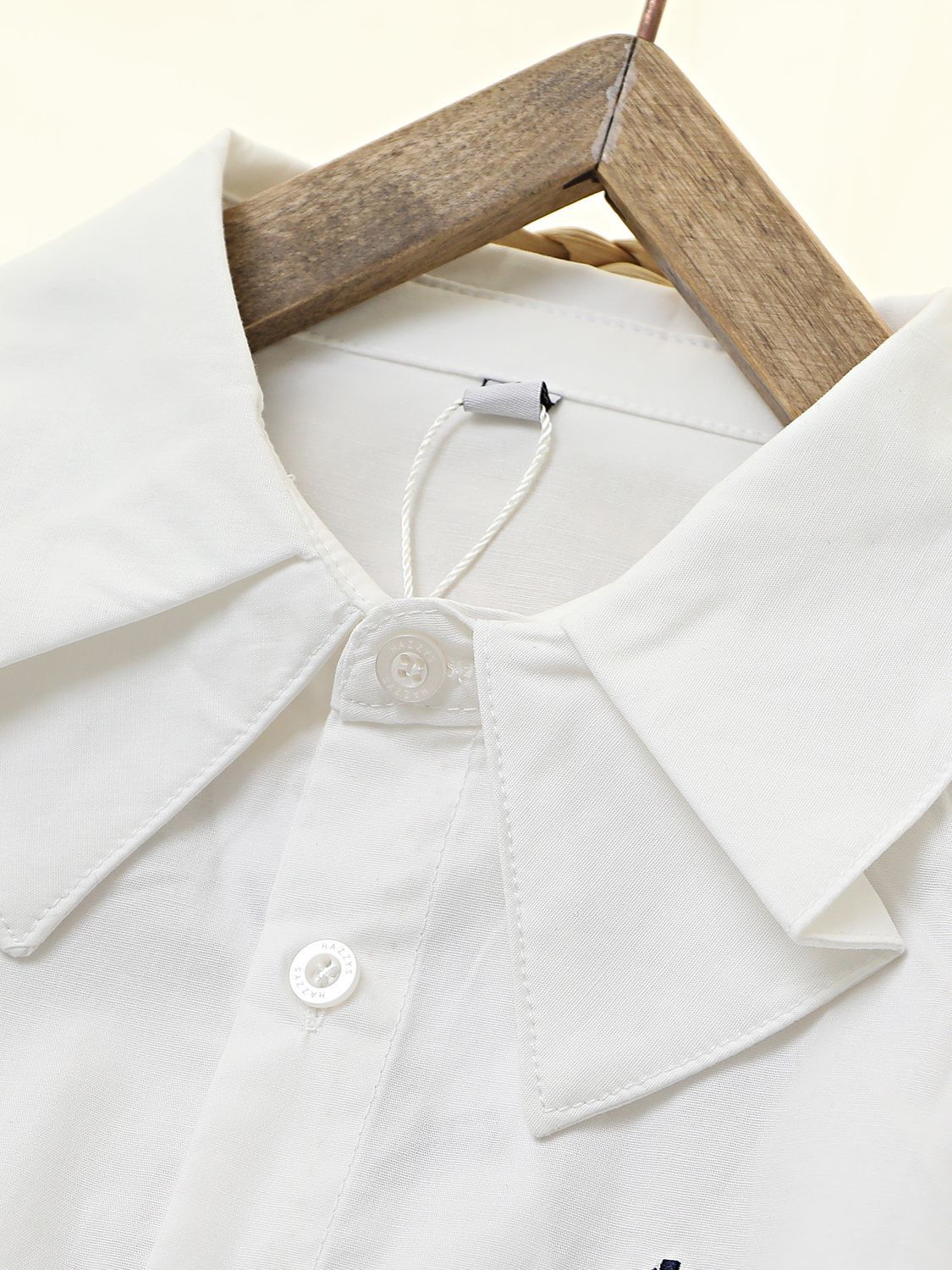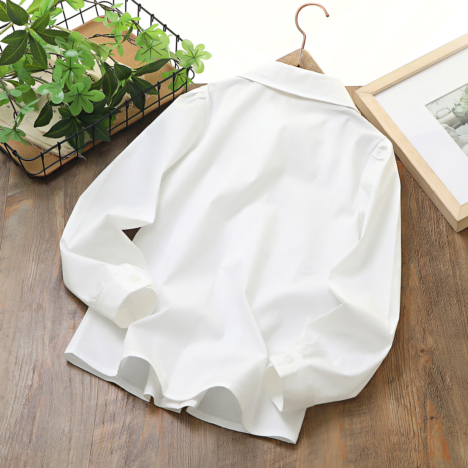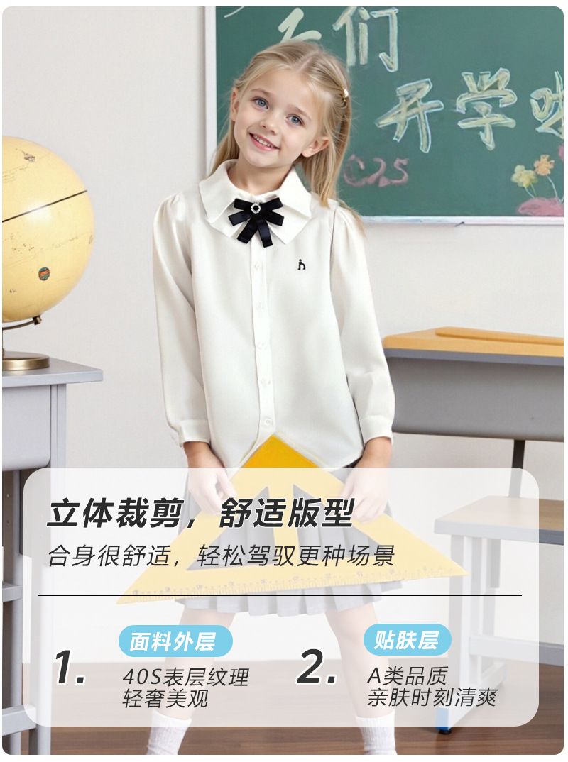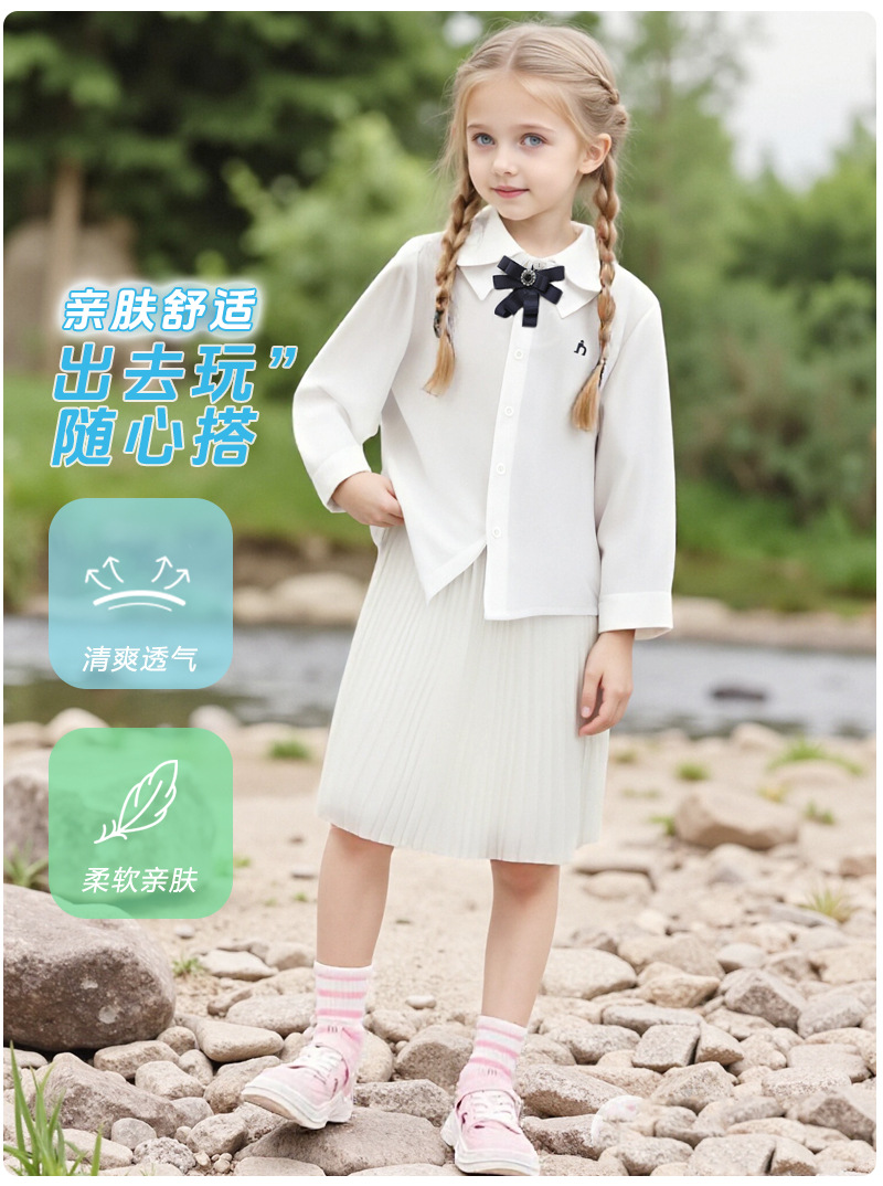 Коллекция Весна 2026: белый топ из чистого хлопка с эластичной тканью, дышащий, с бантом и двойным воротником, в комплекте с белой рубашкой.
