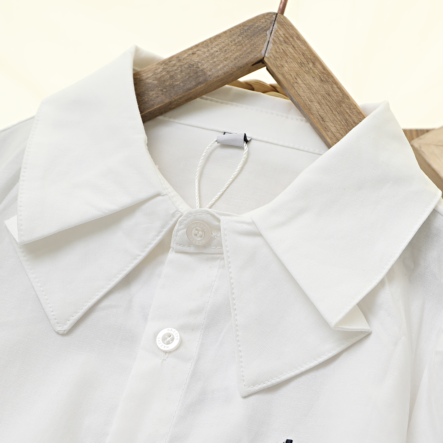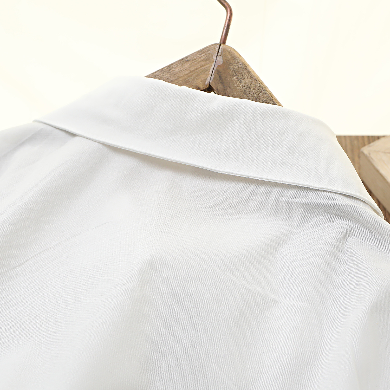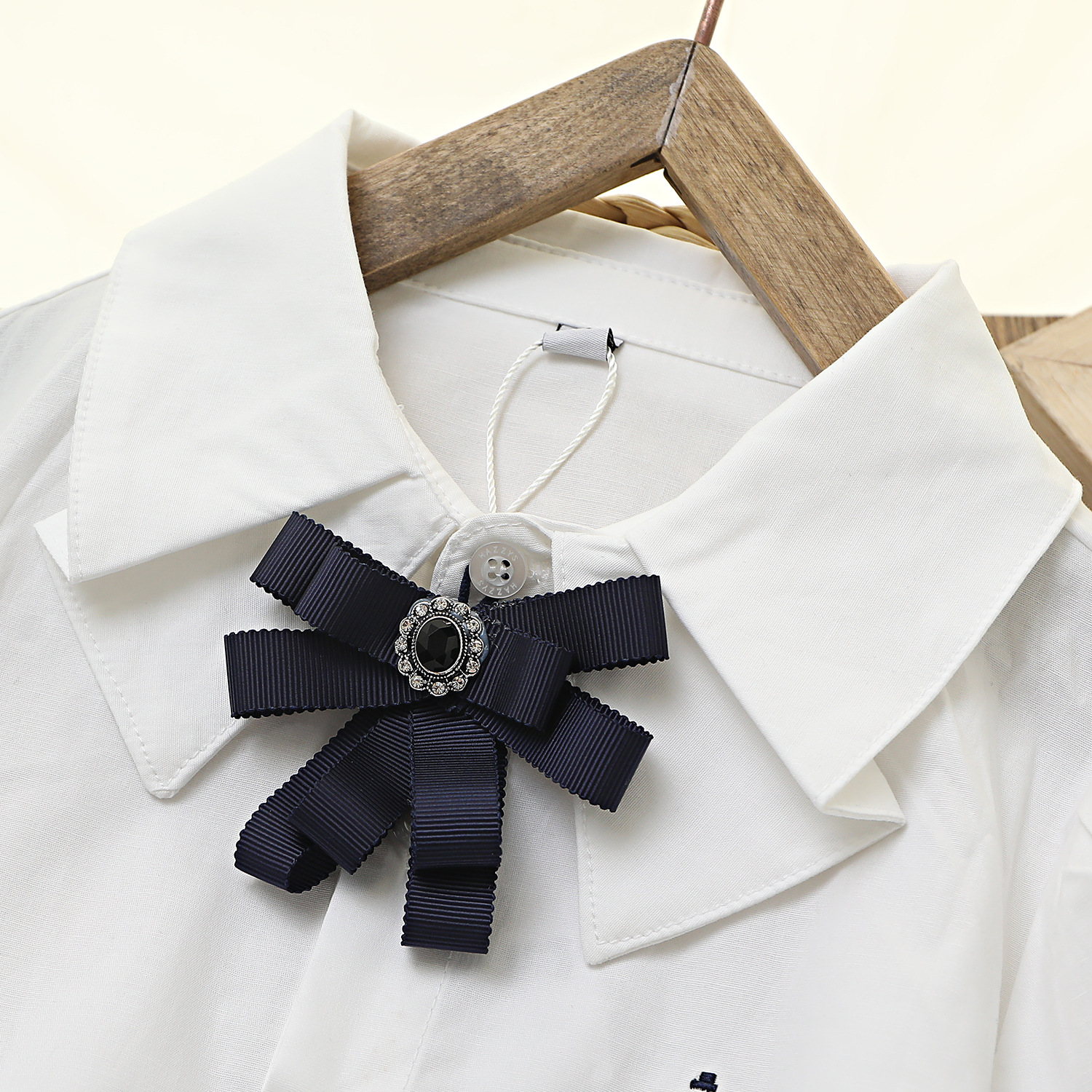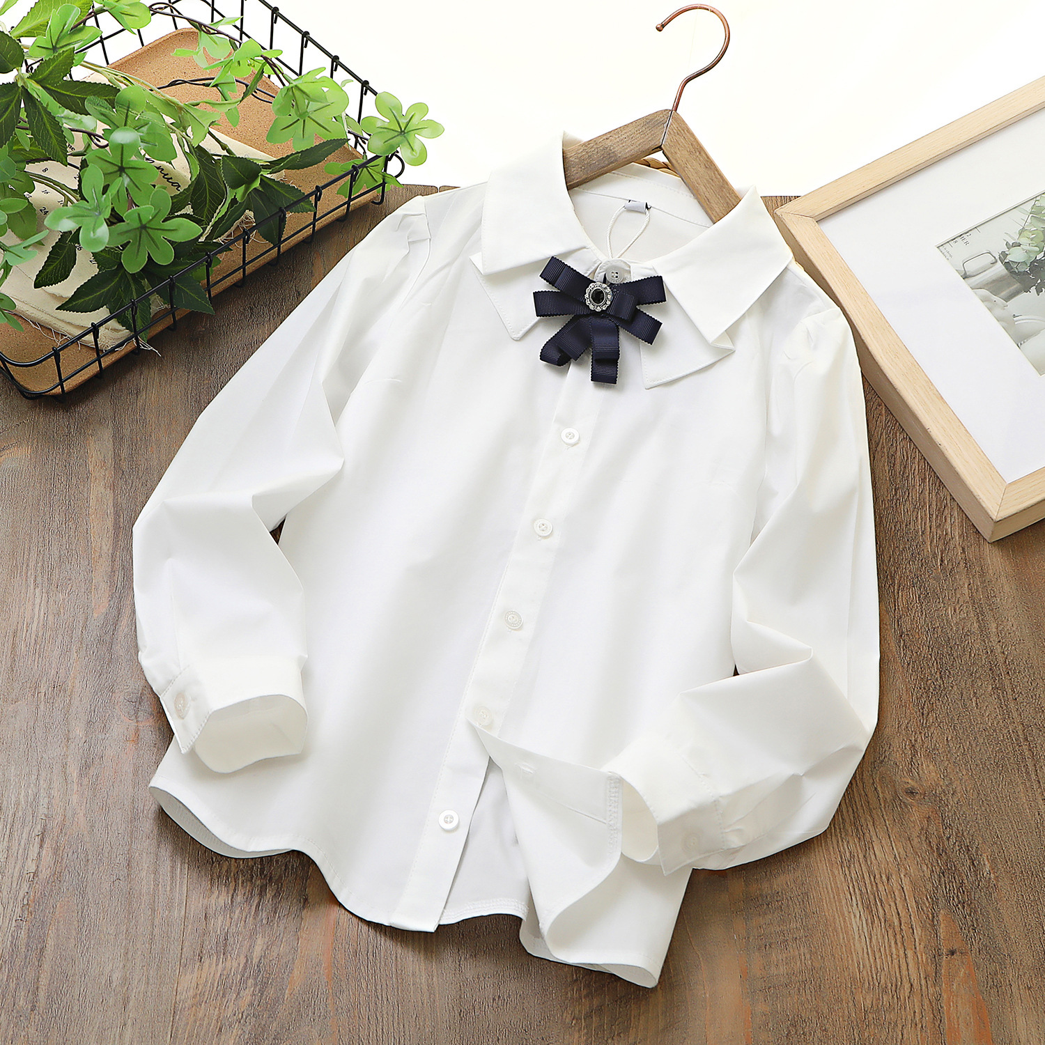 Коллекция Весна 2026: белый топ из чистого хлопка с эластичной тканью, дышащий, с бантом и двойным воротником, в комплекте с белой рубашкой.