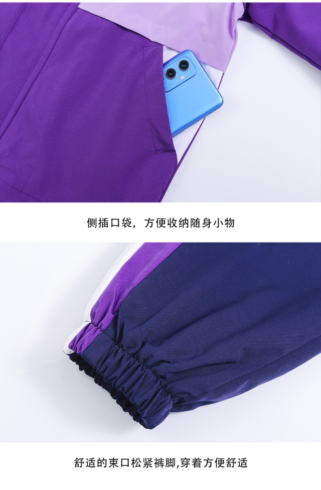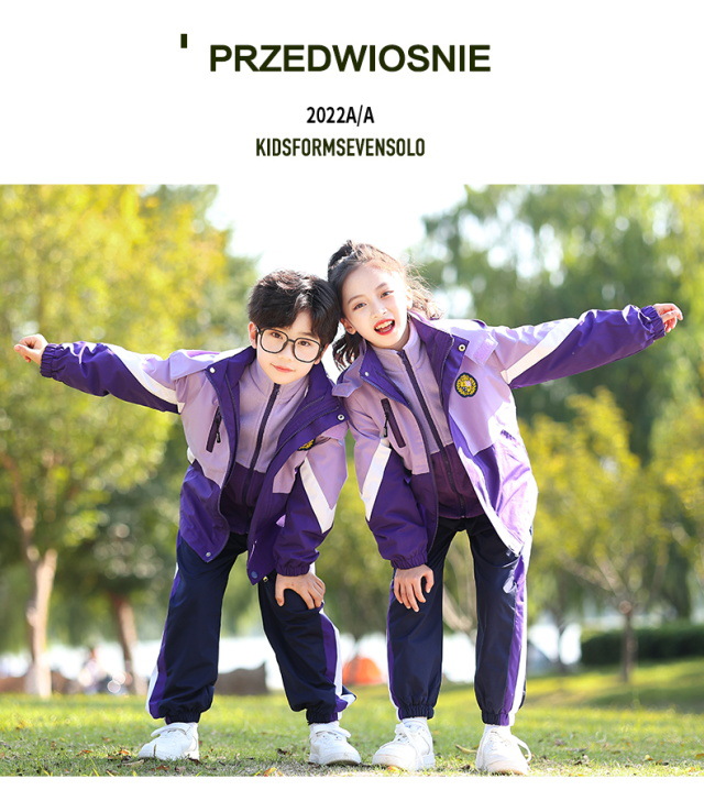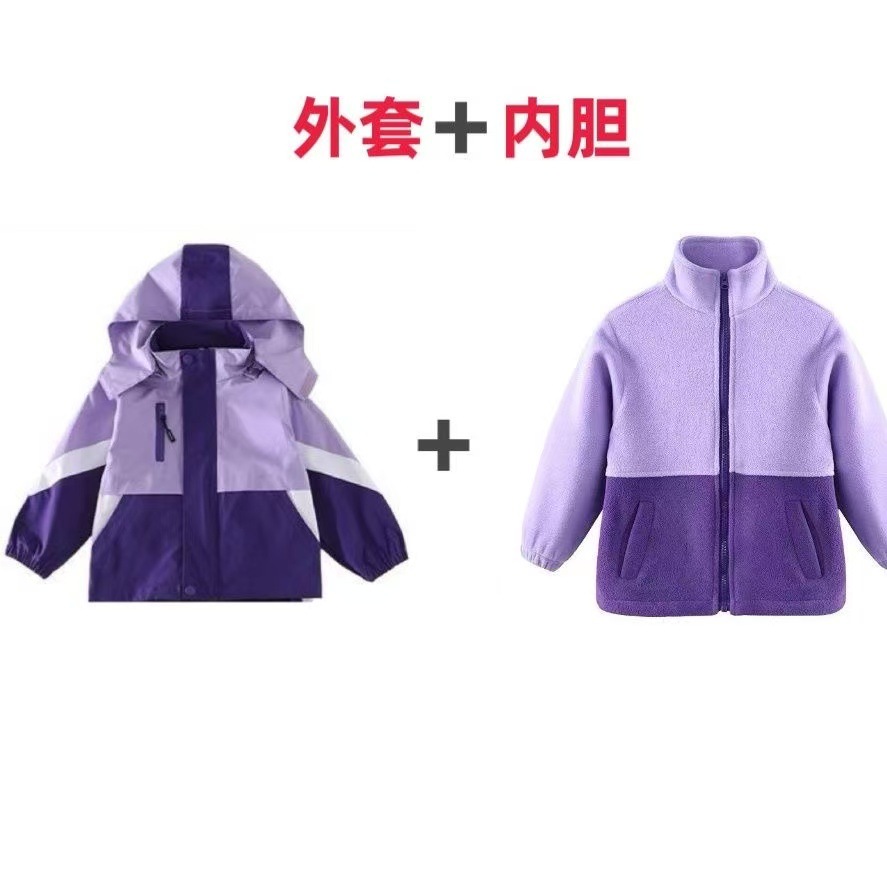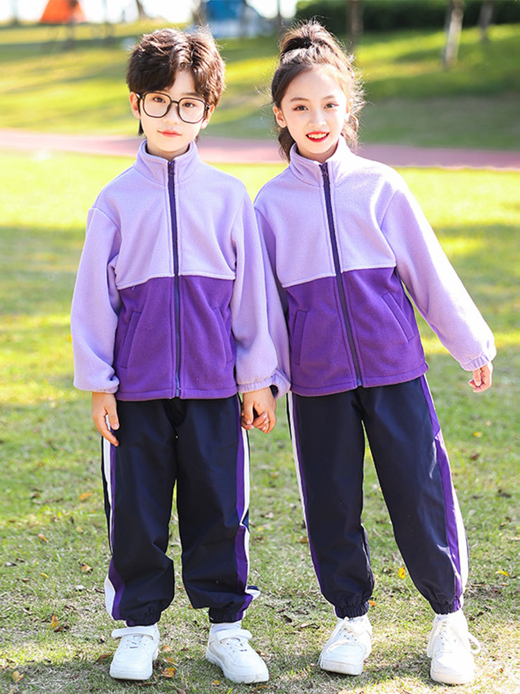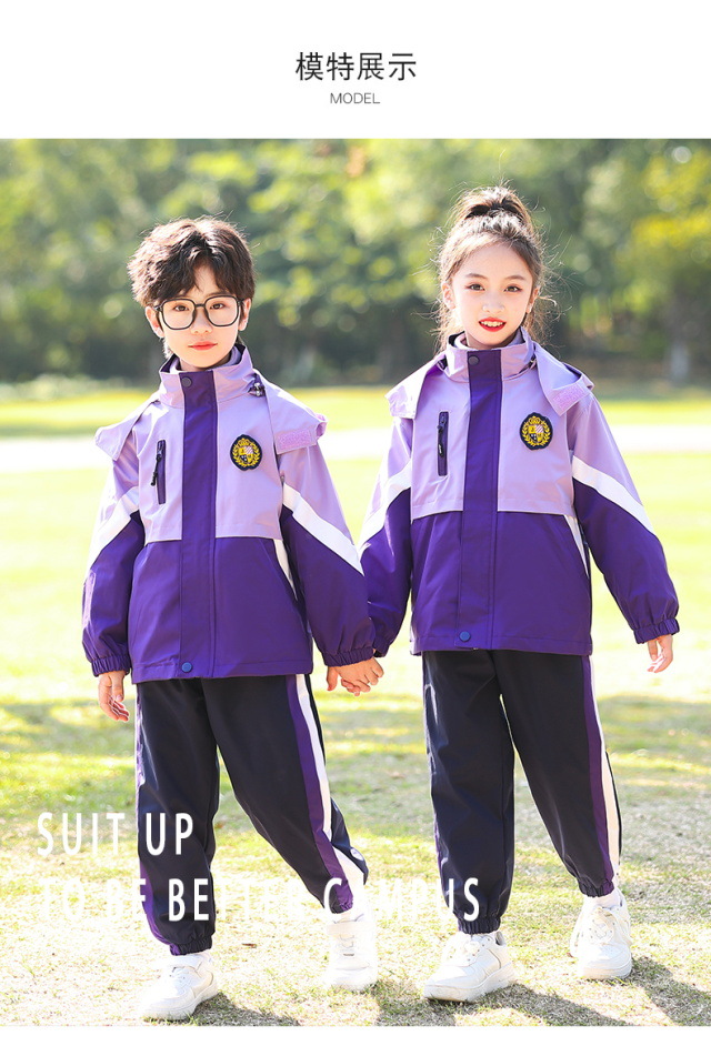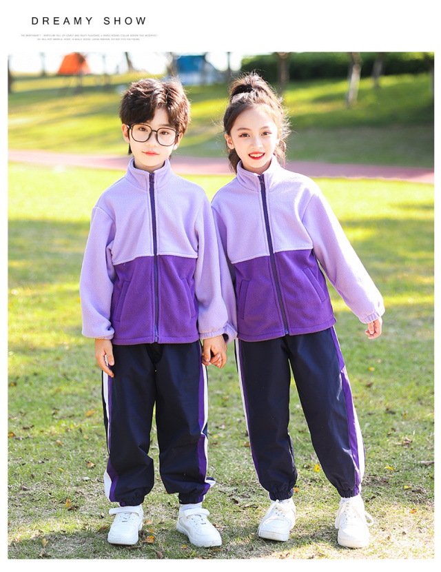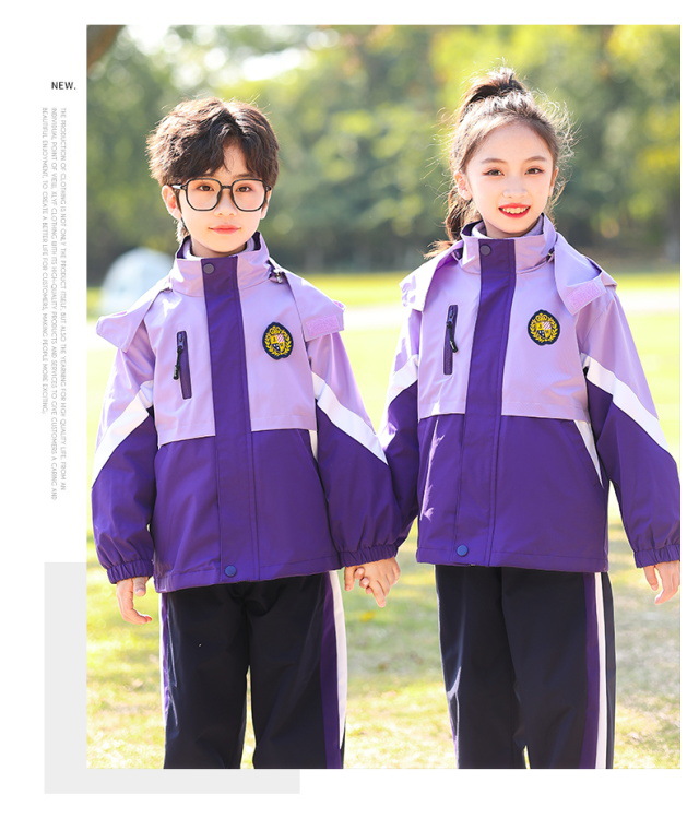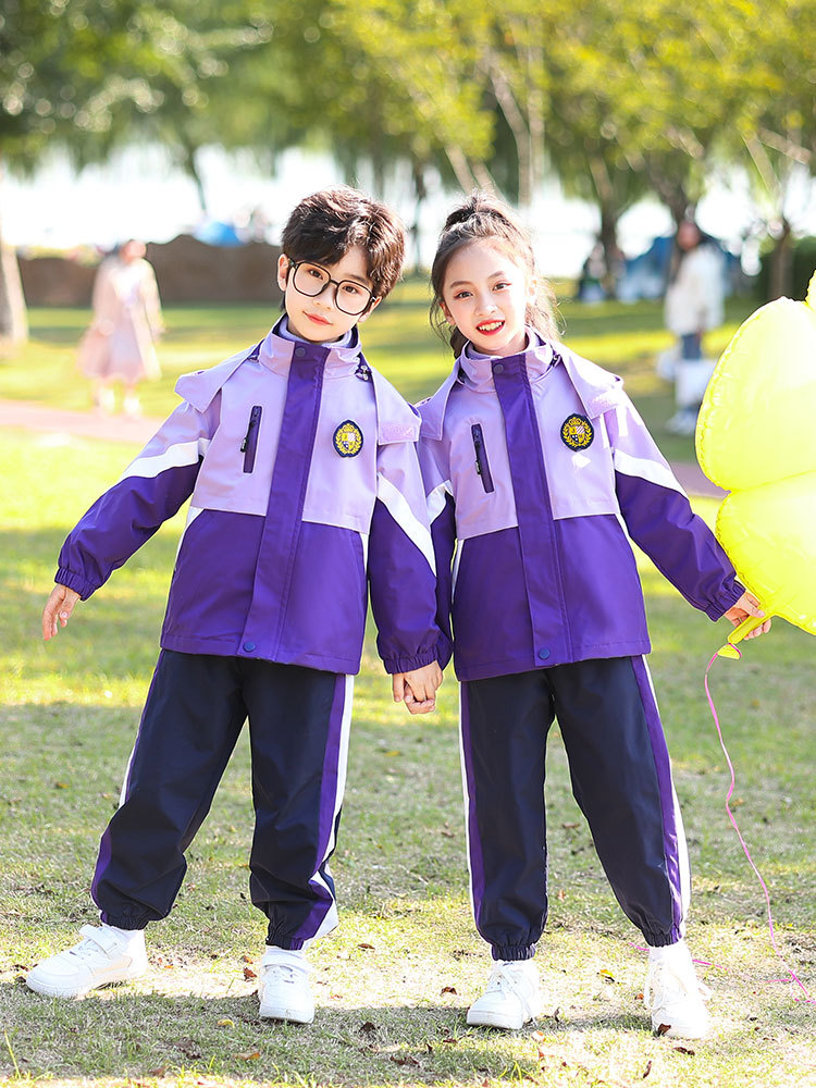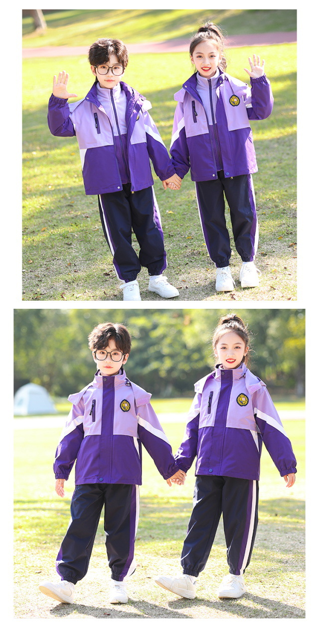 Теплый школьный костюм-тройка для учащихся начальной и средней школы, осенне-зимний новый фасон, на хлопковой подкладке, съемная фиолетовая куртка
