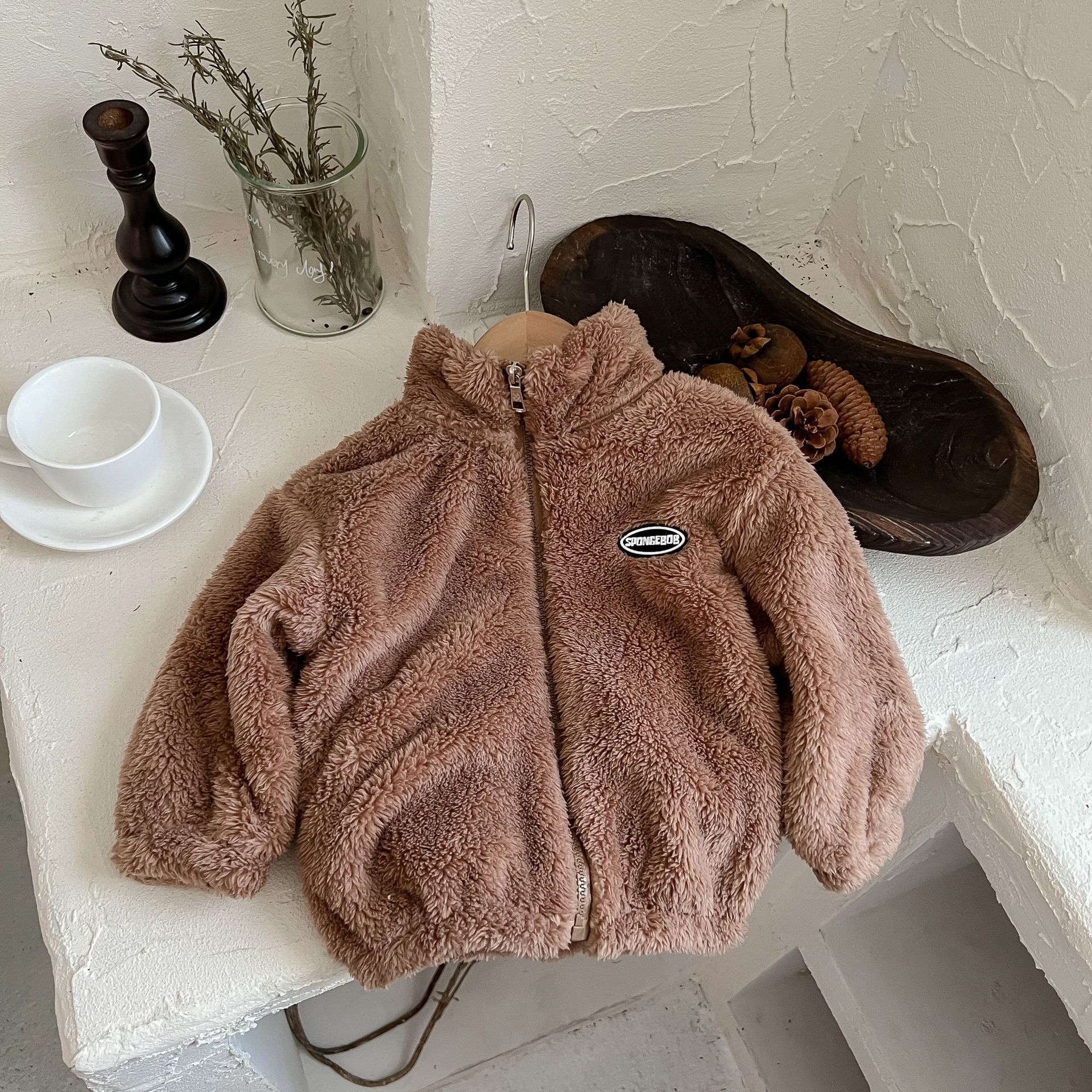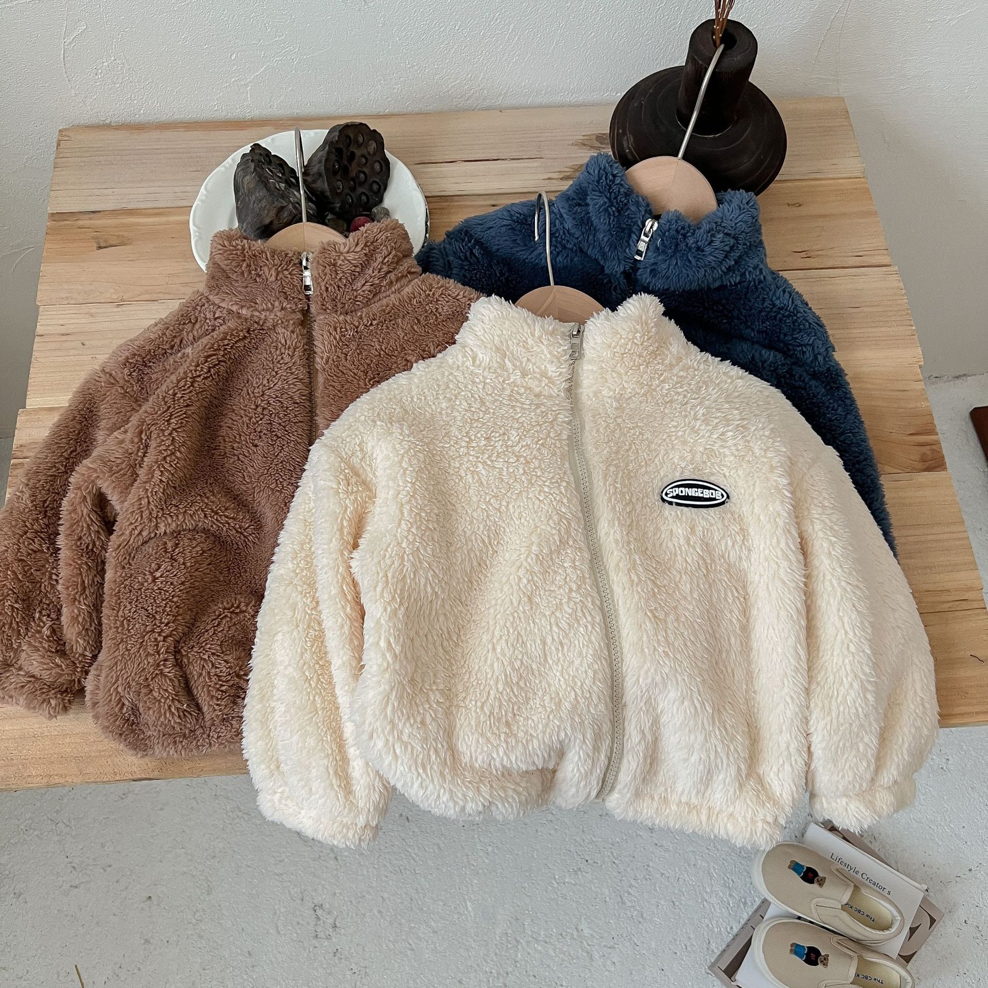 Новый детский пиджак фланец с плюшевым толстым топом для мальчиков и девочек осень-зима детский кардиган с стоячим воротником для теплой наружной одежды