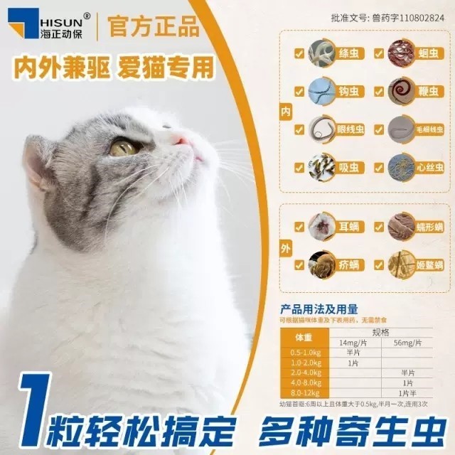 Hailemiao Haizheng — препарат для внутренней и внешней дегельминтации кошек (для котят и взрослых кошек), 1 таблетка, 3 таблетки, 6 таблеток, лекарство для внутренней дегельминтации животных