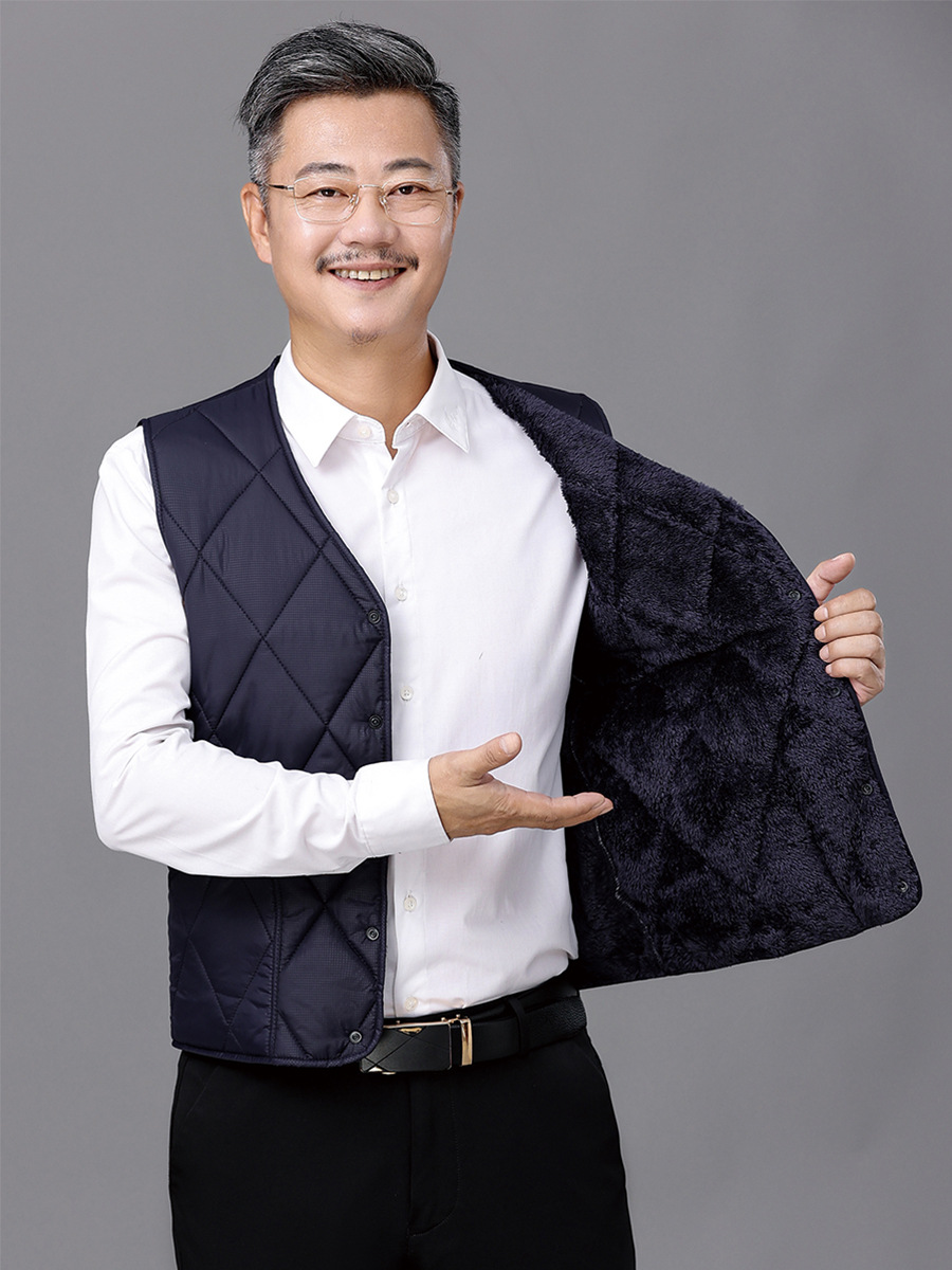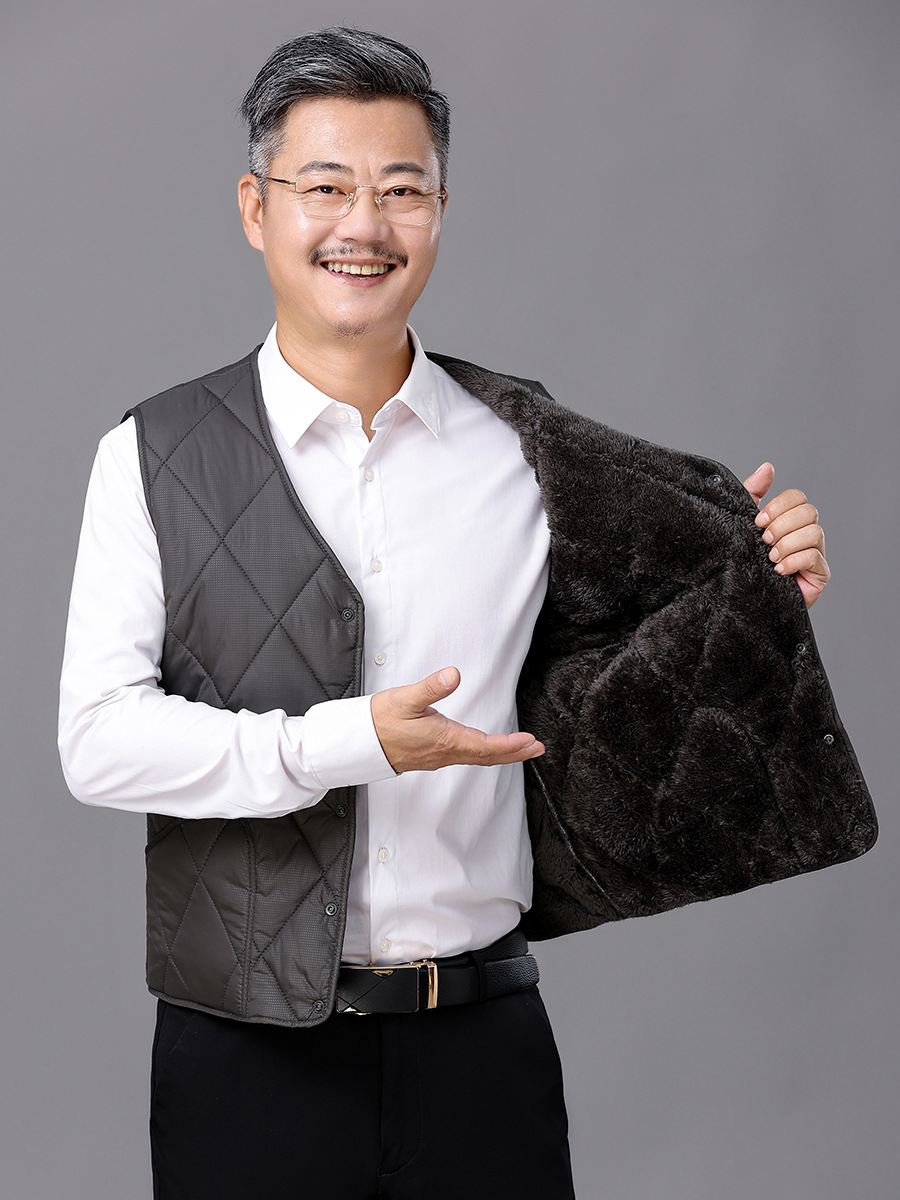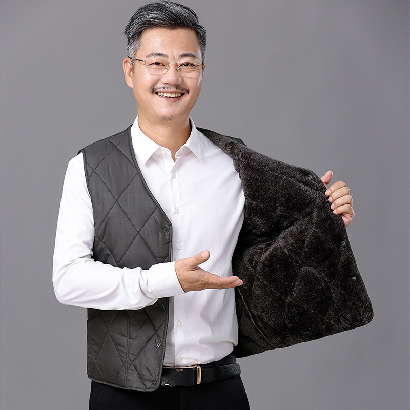 Зимний мужской пуховый хлопковый жилет на флисовой подкладке, утолщенный хлопковый жилет для среднего и пожилого возраста, жилет, теплая одежда для папы, жилет больших размеров