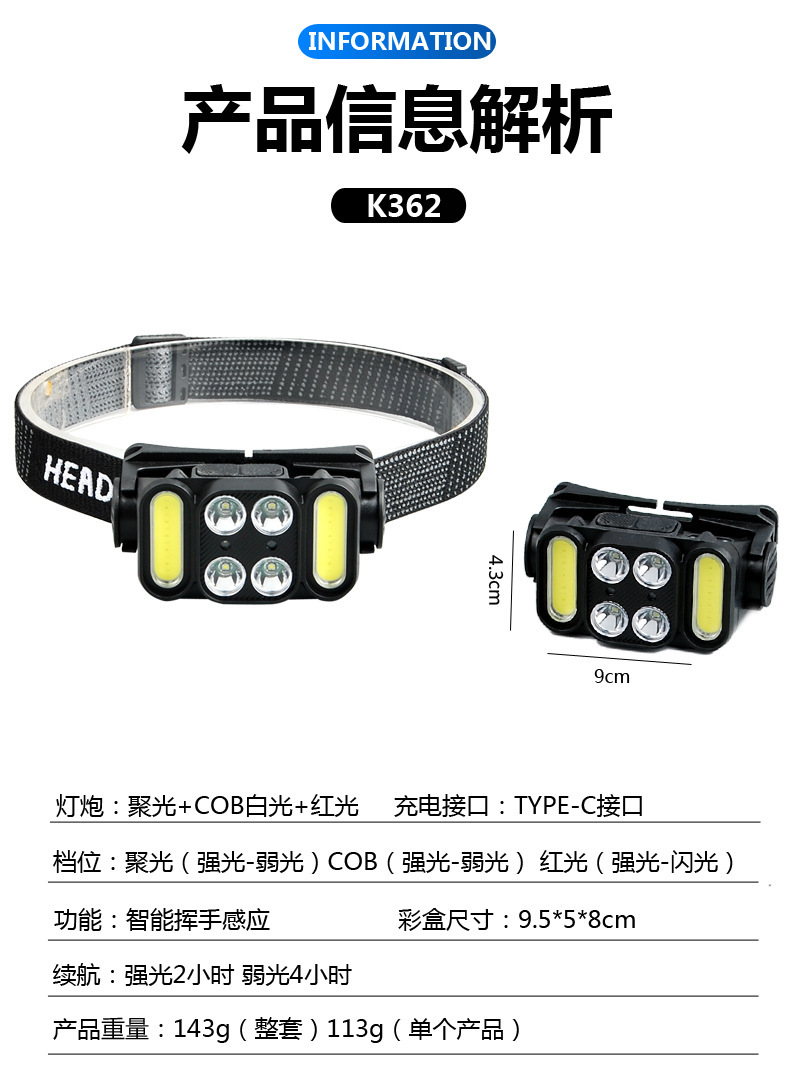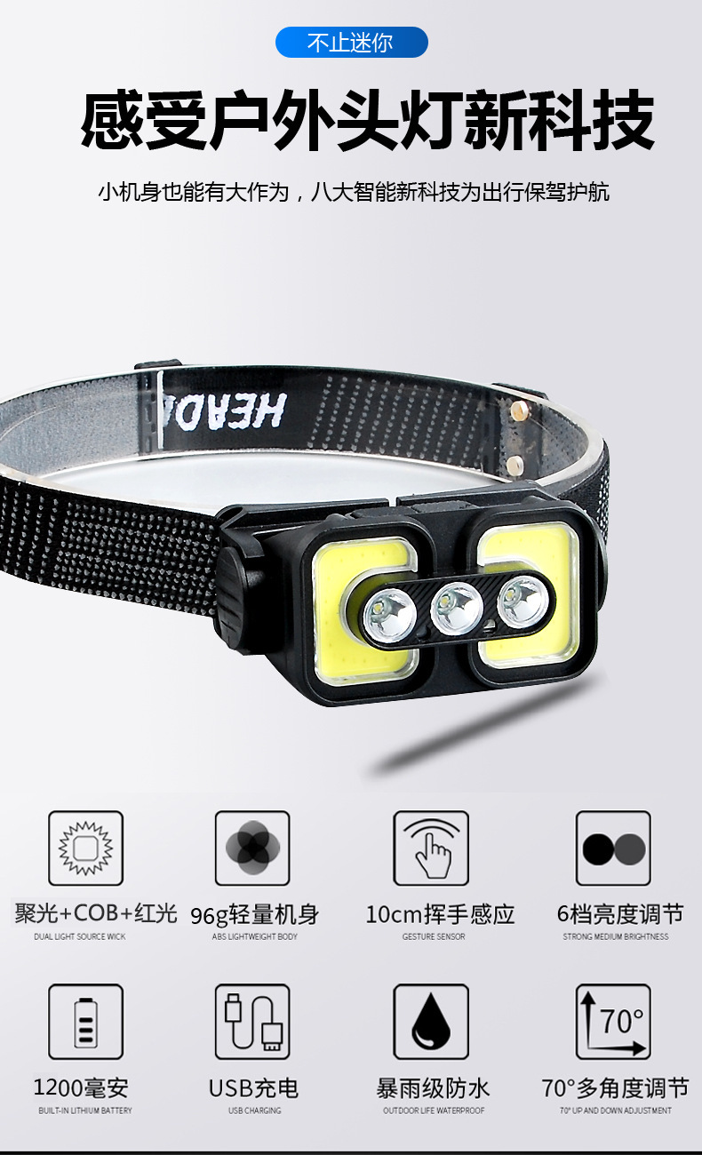 Трансграничная оптовая продажа индукционный сильный свет Фара ночная рыбалка зарядка головной убор супер яркий початок открытый дальний красный свет предупреждение