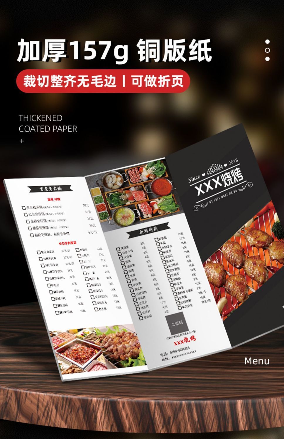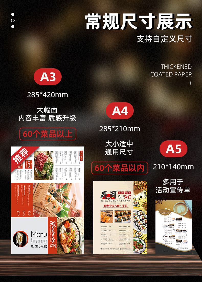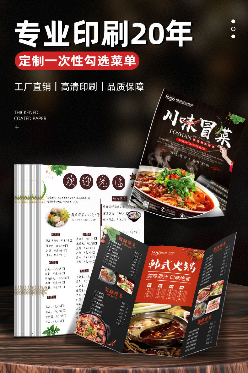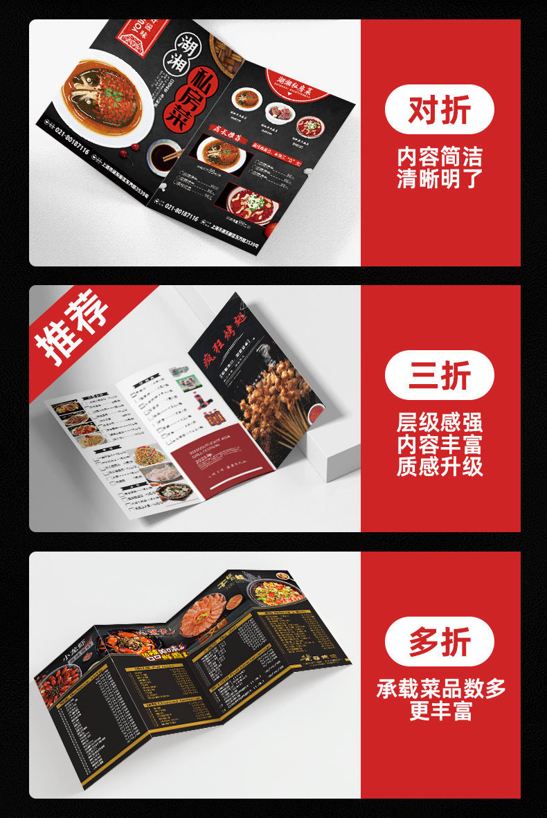 Плакат печать меню на заказ A4A3 три складных цветных печати общественное питание рекламное меню бумага флаер табло