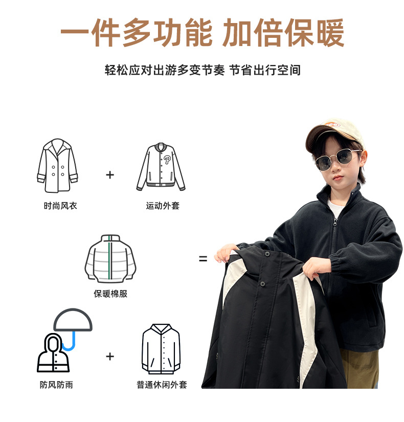 Демисезонная куртка-трансформер для мальчиков, ветрозащитная и водонепроницаемая зимняя куртка для детей постарше, детская зимняя куртка-трансформер, модная