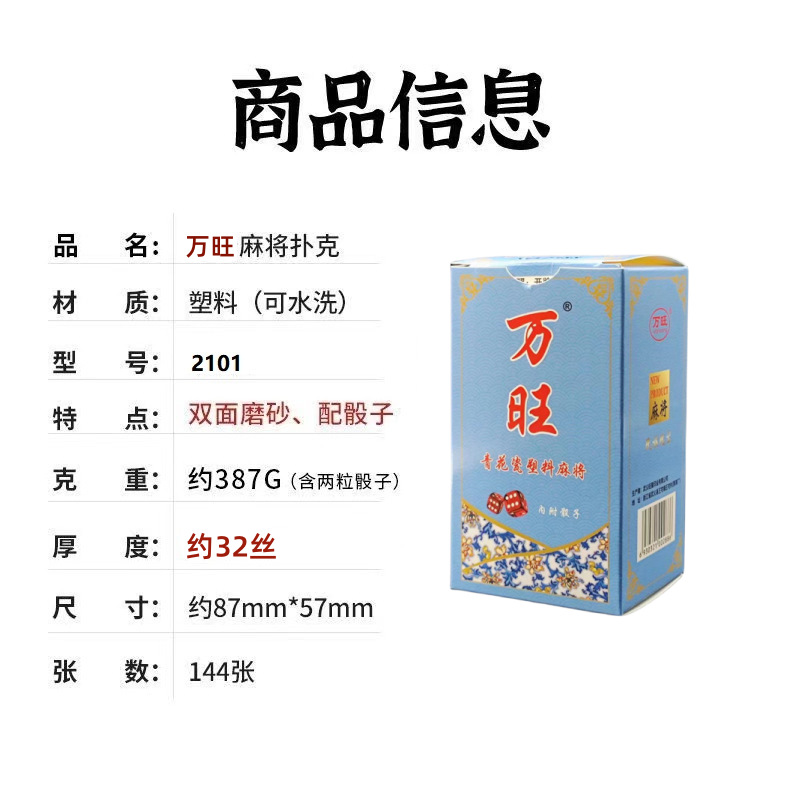 Wanwang широкий ПВХ пластиковый маджонг покер (по умолчанию 2 кости 1 сумка для хранения)