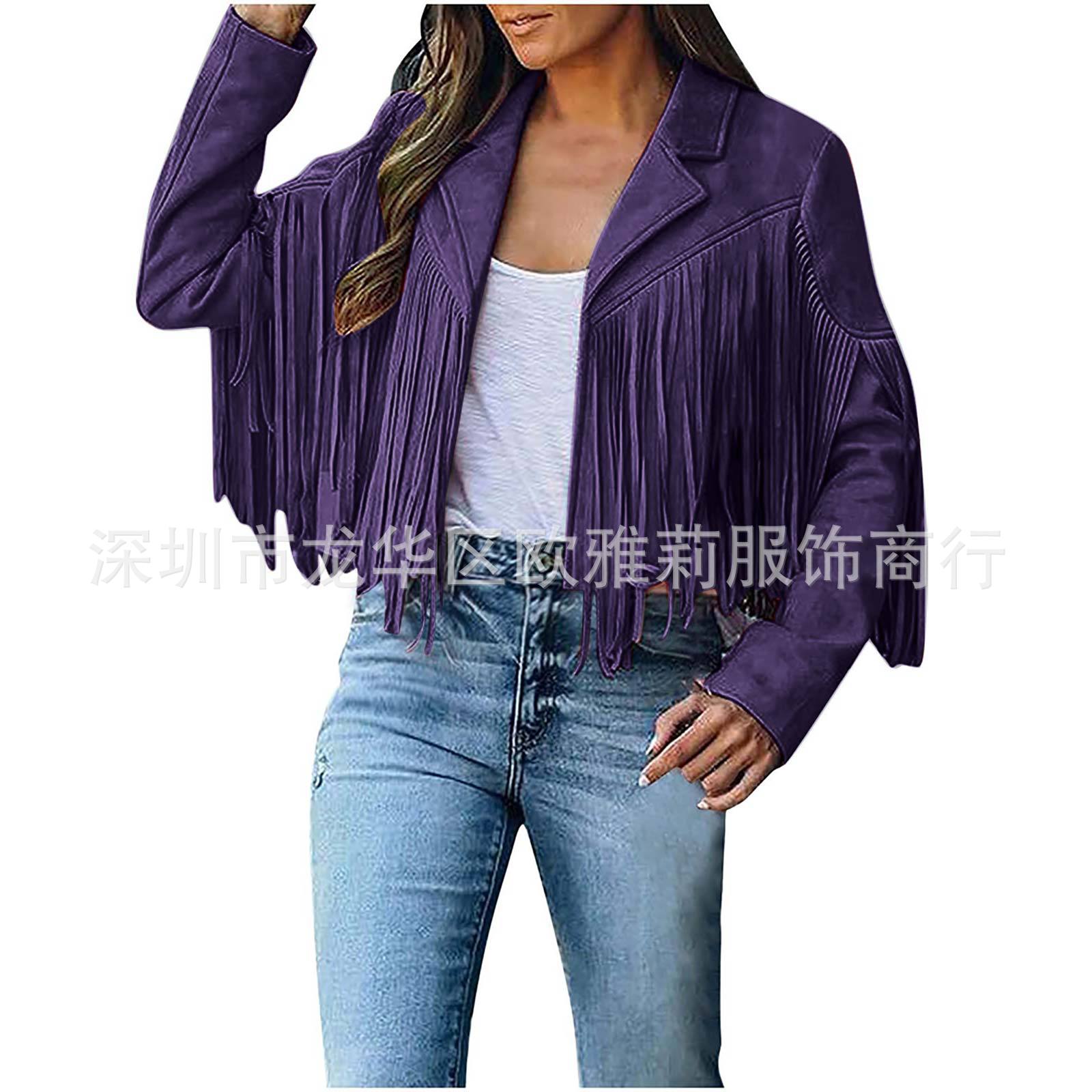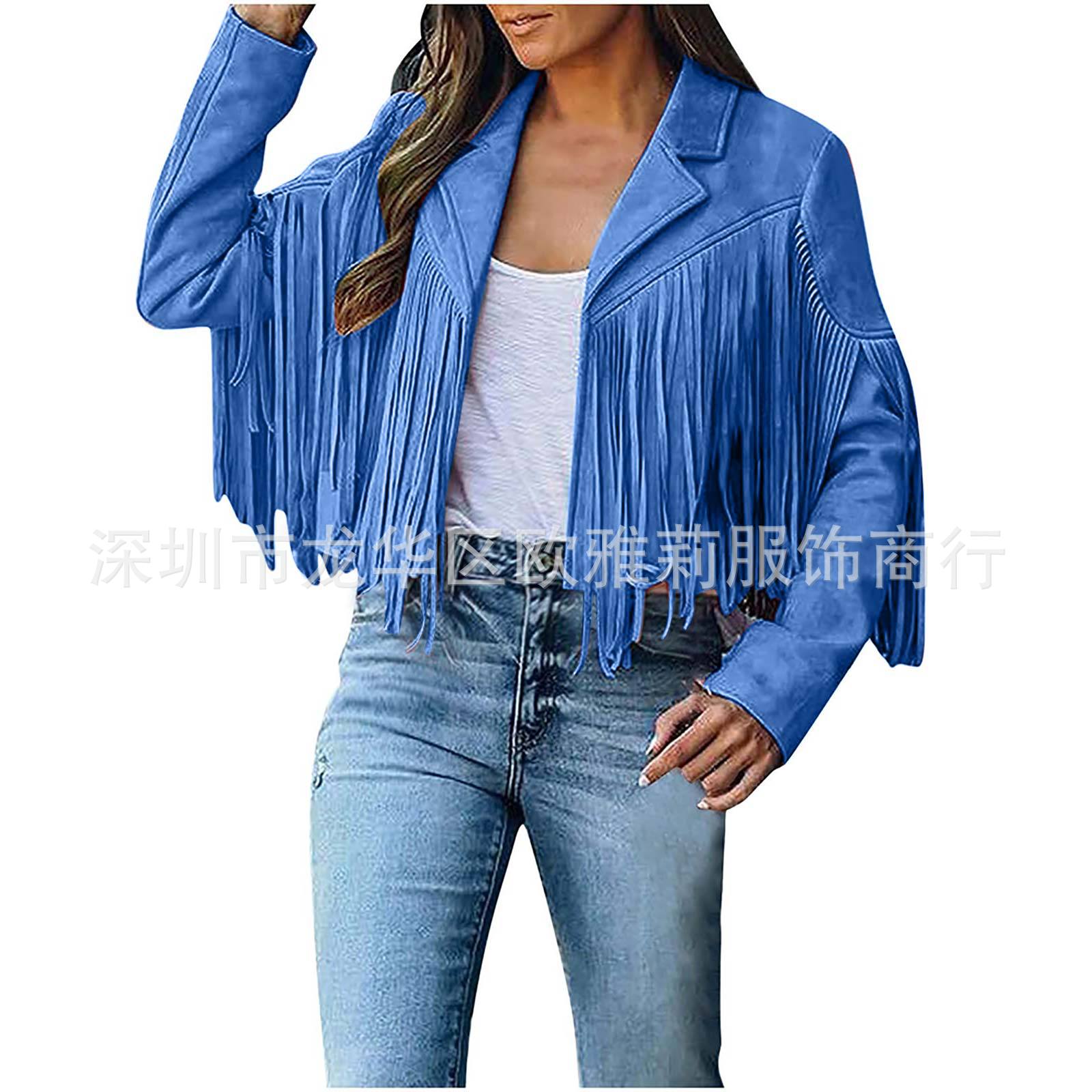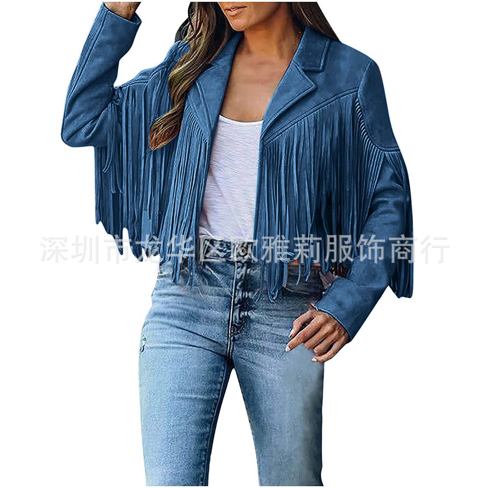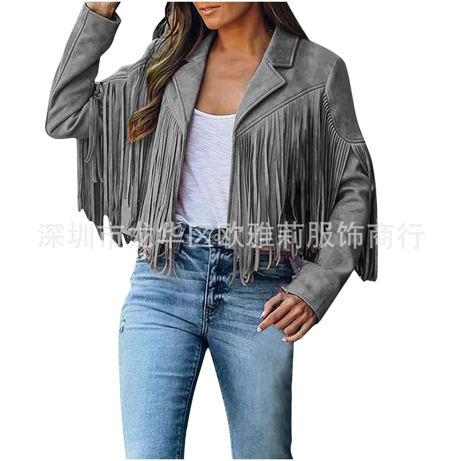 Вступила в электронную коммерцию Amazon 2023 Европейская и американская Осенняя женская короткая однотонная приталенная Классическая куртка из оленьей кожи с кисточками