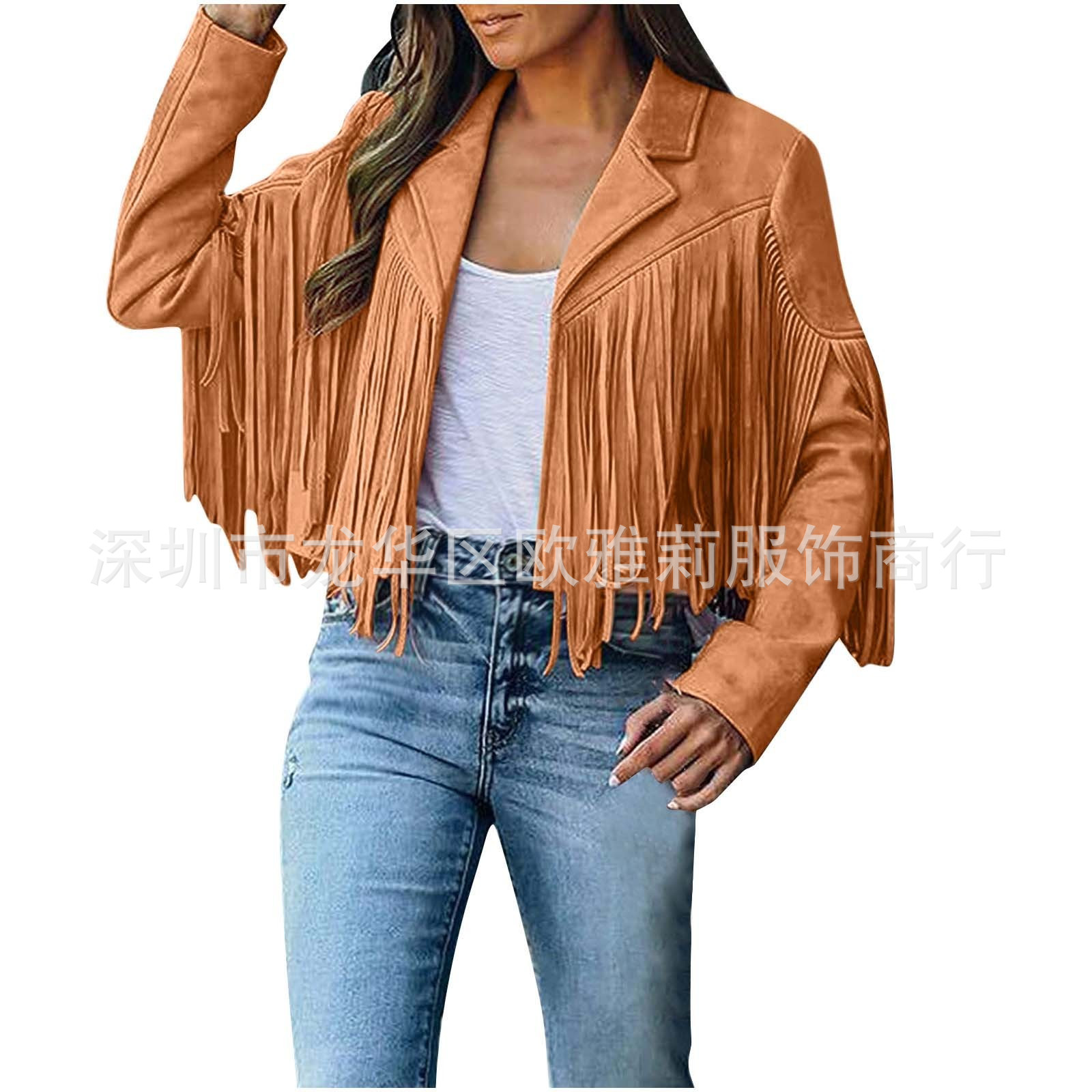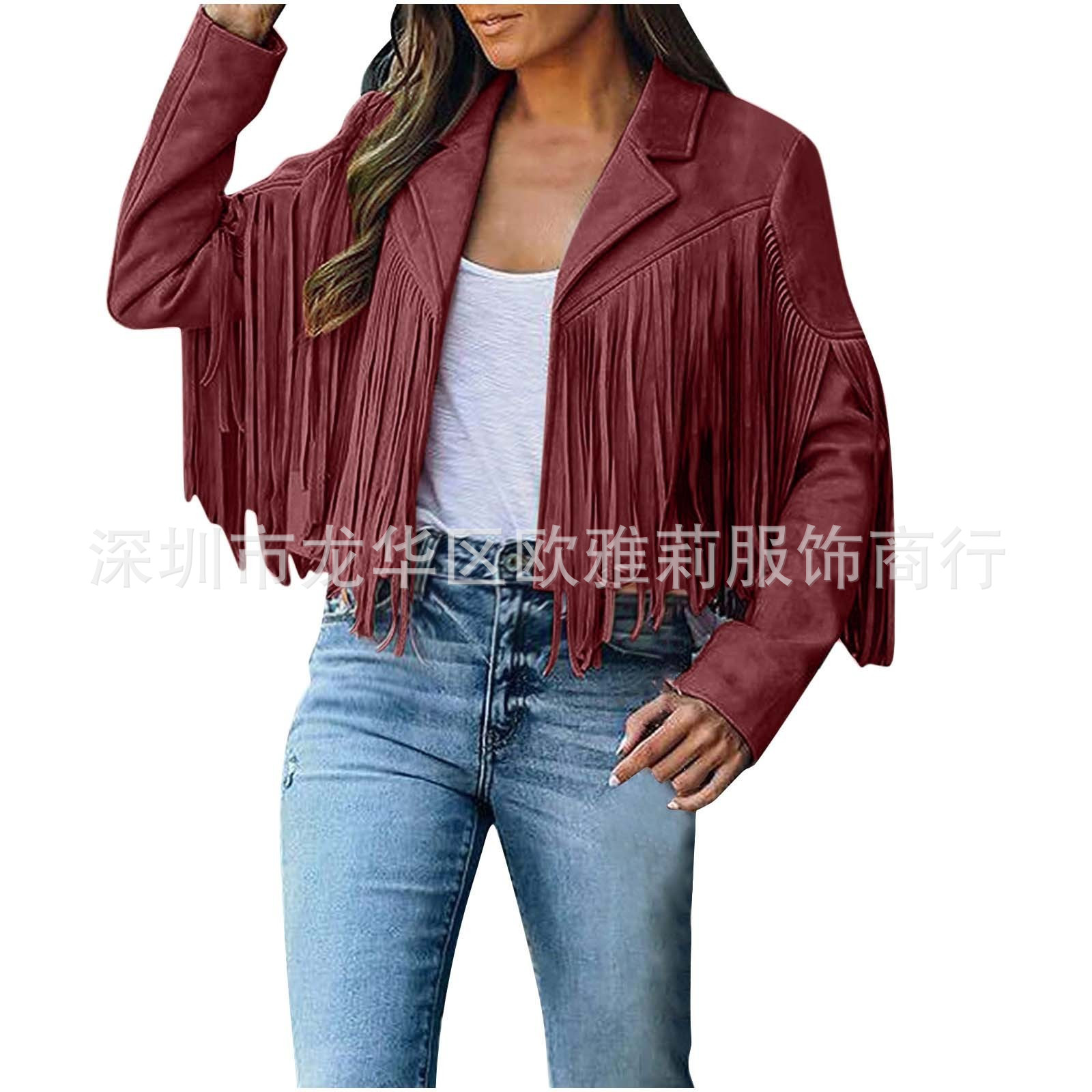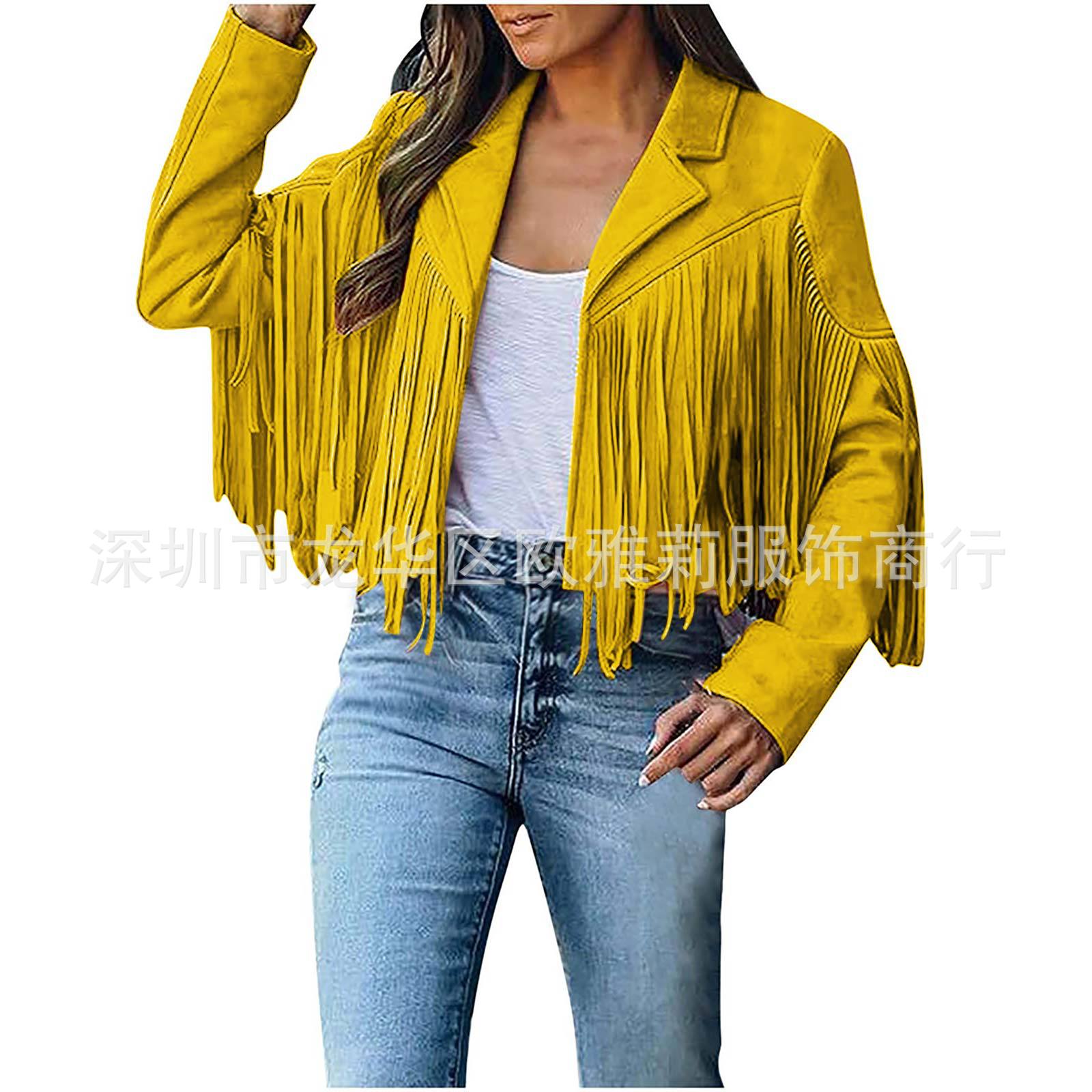 Вступила в электронную коммерцию Amazon 2023 Европейская и американская Осенняя женская короткая однотонная приталенная Классическая куртка из оленьей кожи с кисточками