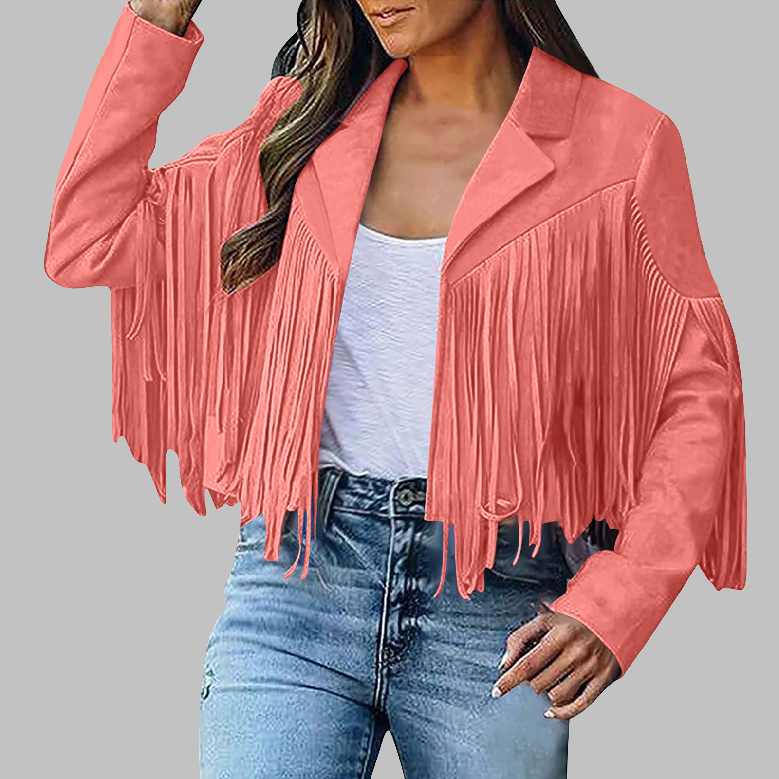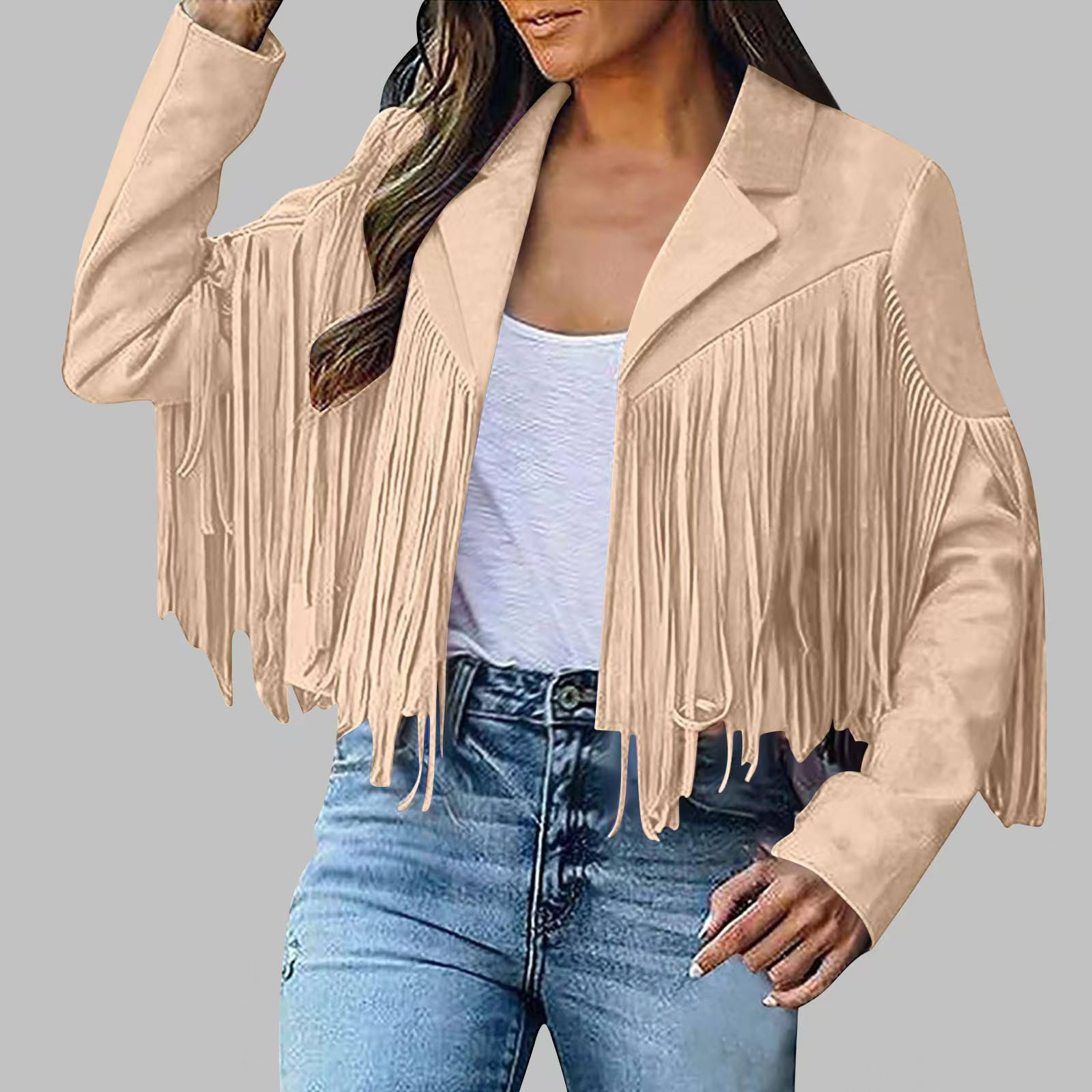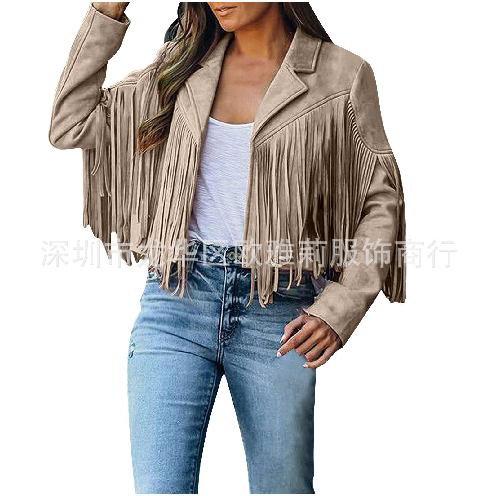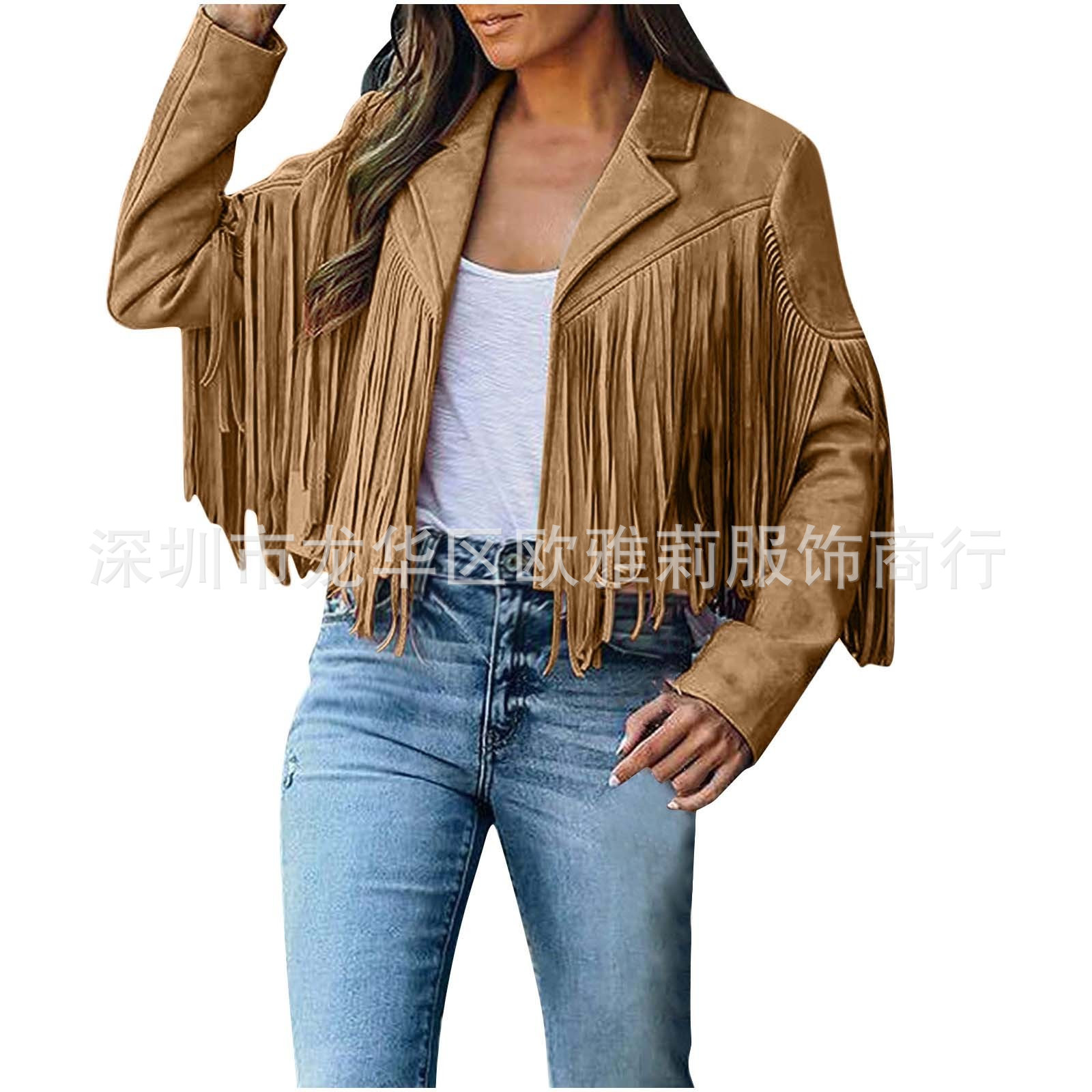 Вступила в электронную коммерцию Amazon 2023 Европейская и американская Осенняя женская короткая однотонная приталенная Классическая куртка из оленьей кожи с кисточками