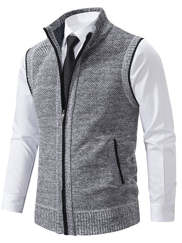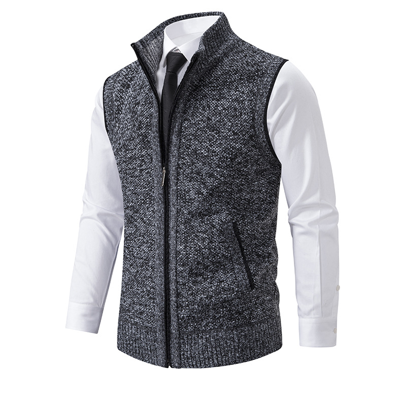 Трансграничный 2023 осенне-зимний мужской вязаный жилет с воротником-стойкой без рукавов свитер жилет через плечо утолщенная куртка с зажимом на молнии куртка
