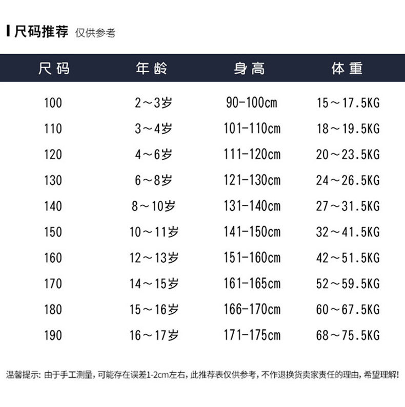 100 см; 110 см; 120 см; 130 см; 140 см; 150 см; 160 см; 170 см; 180 см; 190cm