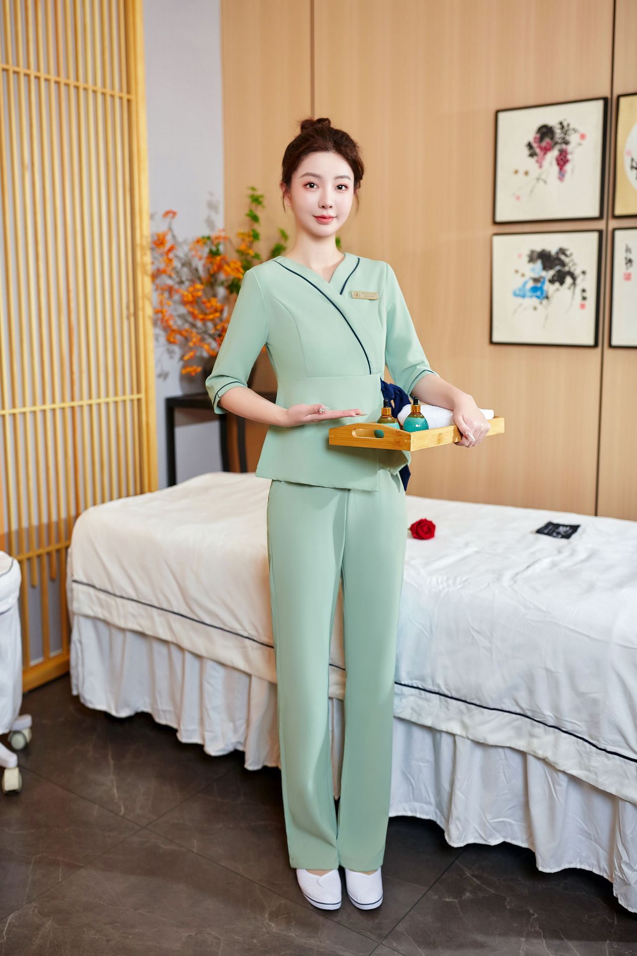 Новая рабочая одежда, женские весенне-осенние брюки для парикмахеров, брюки, Модная темперамент, зал здоровья, баня для ног, одежда для техников, рабочая одежда