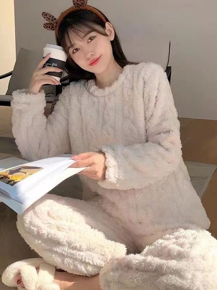 Новый рекламный Модный Цветной жаккардовый костюм, пижама, зимний утолщенный на флисовой подкладке, пара девушек-знаменитостей, повседневный костюм для мужчин