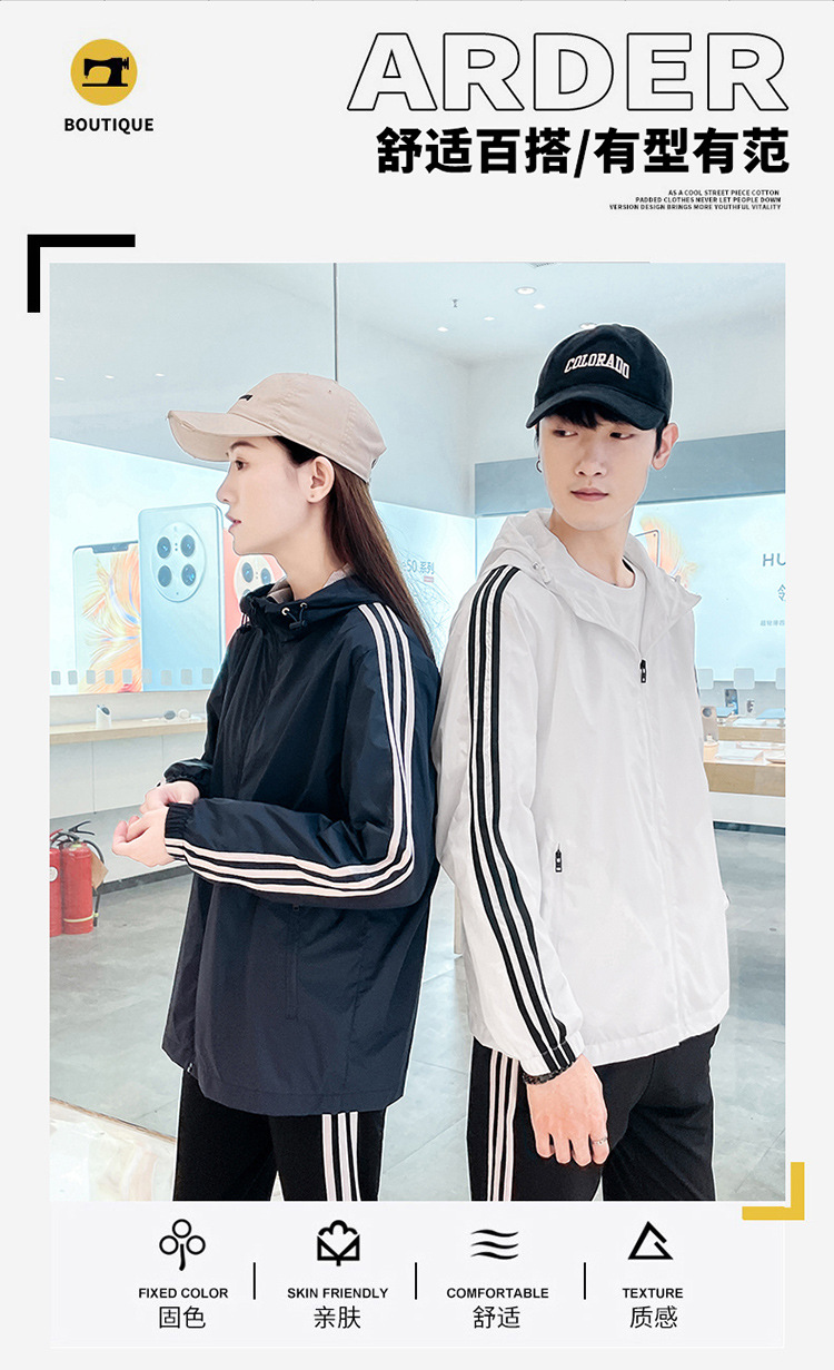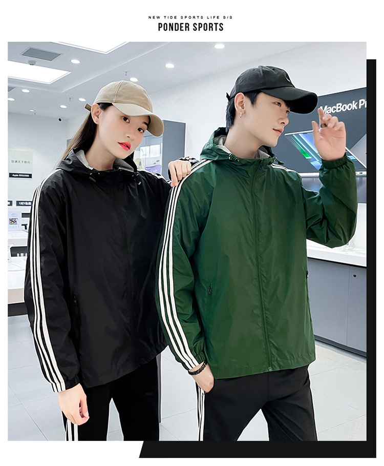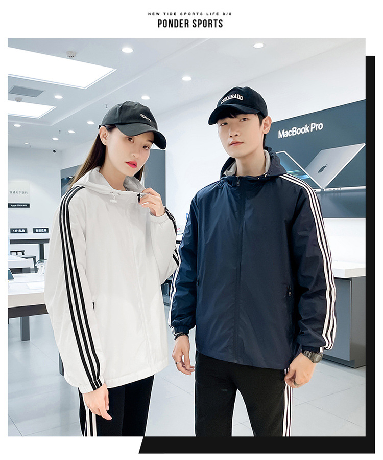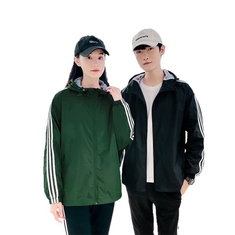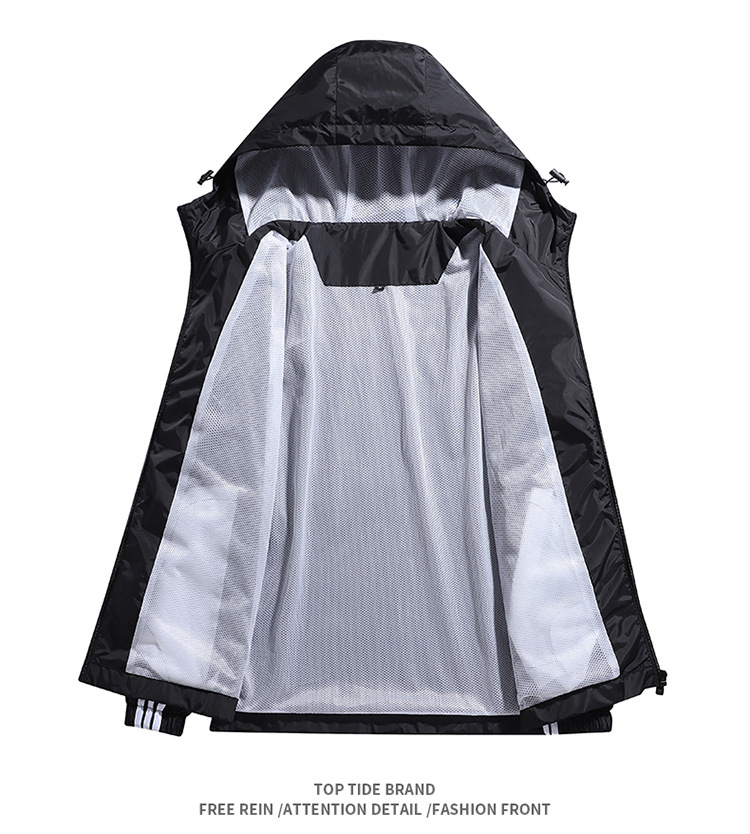 Качественная Мужская нейлоновая ткань Трехбарная куртка Пара Осенняя спортивная одежда Унисекс Куртка с капюшоном Ветровка