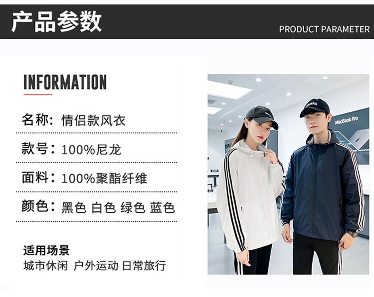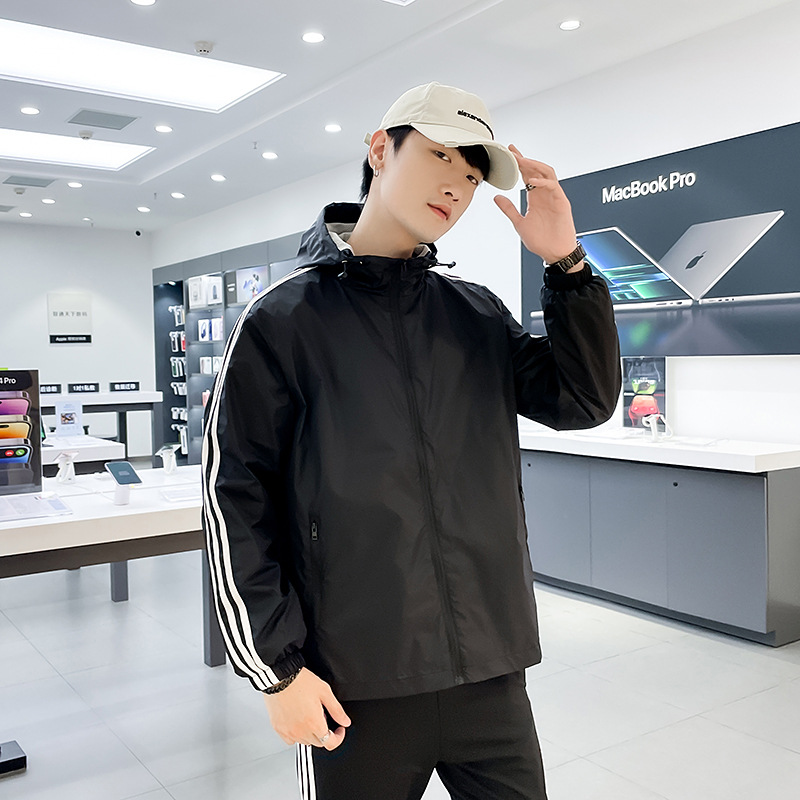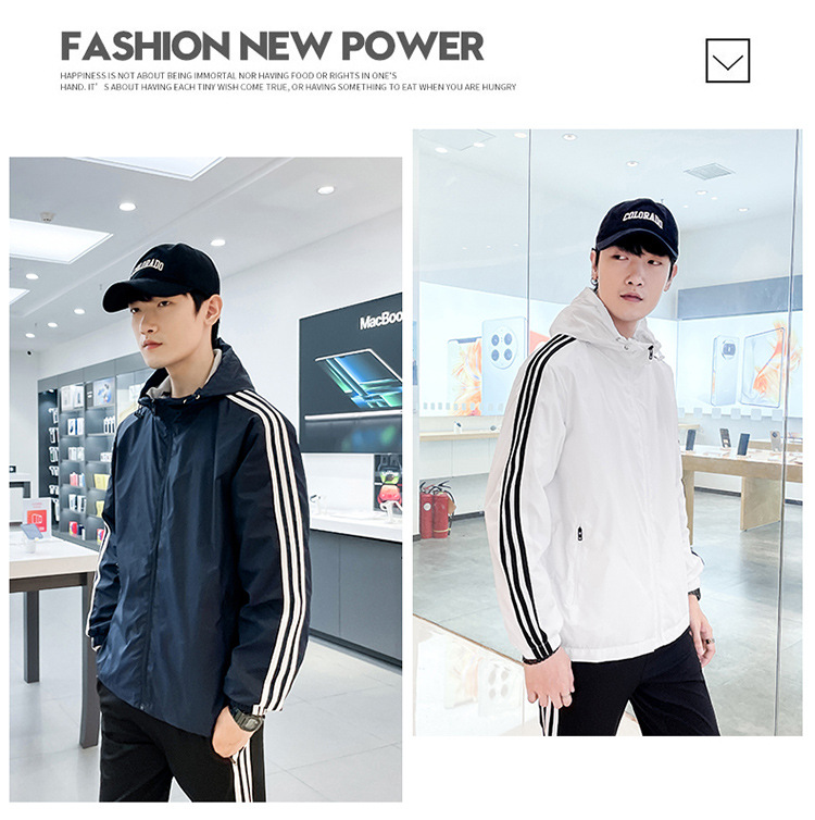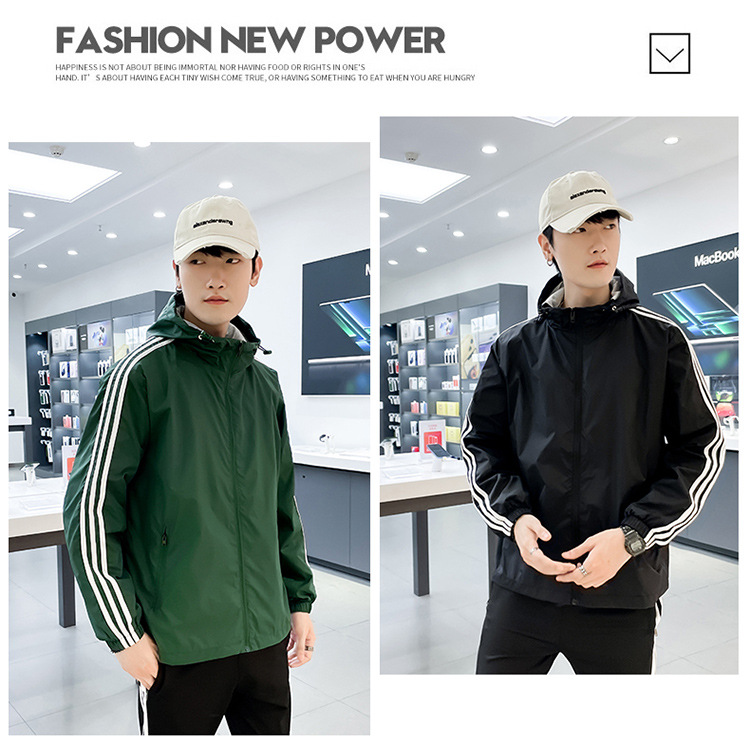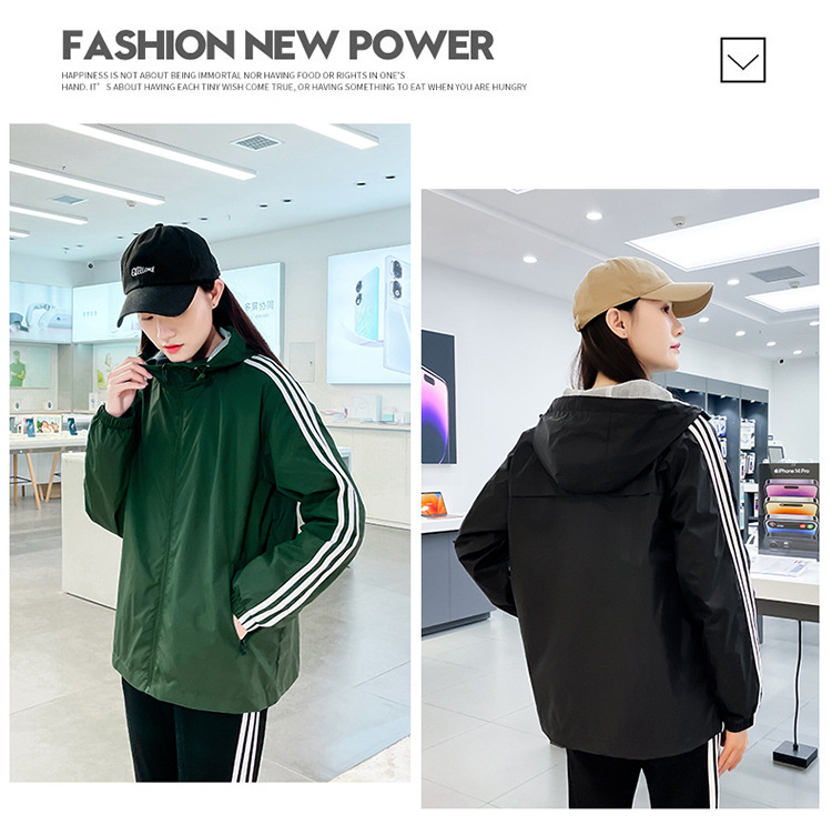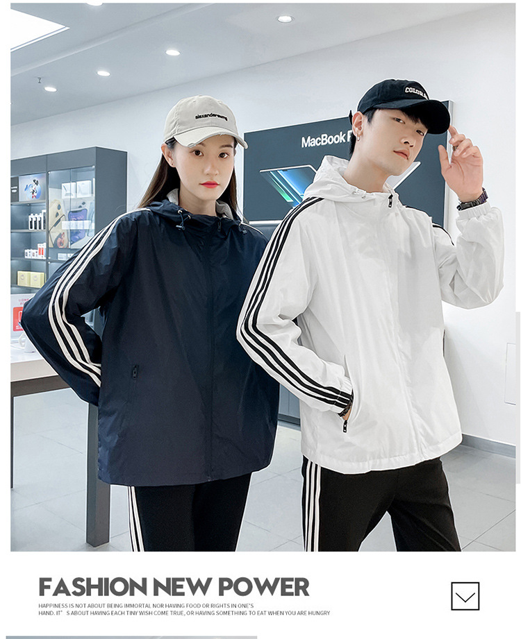 Качественная Мужская нейлоновая ткань Трехбарная куртка Пара Осенняя спортивная одежда Унисекс Куртка с капюшоном Ветровка