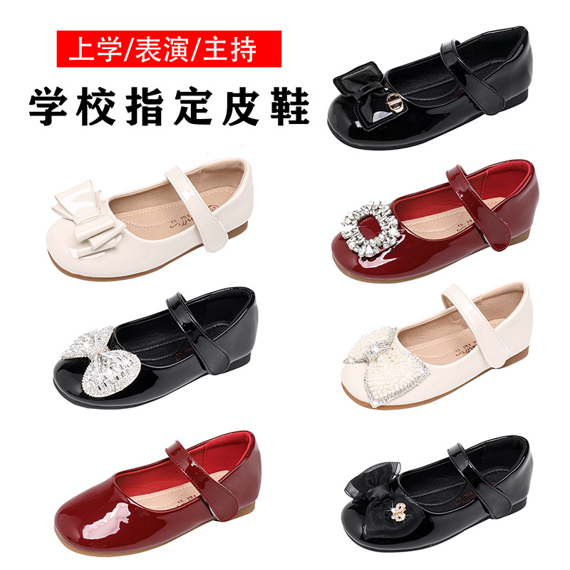 Черная кожаная обувь для девочек Обувь для выступлений Обувь принцессы Маленькая кожаная обувь Детская Студенческая одиночная обувь с мягкой подошвой Школьная обувь