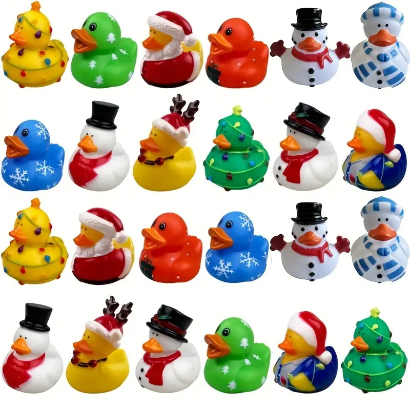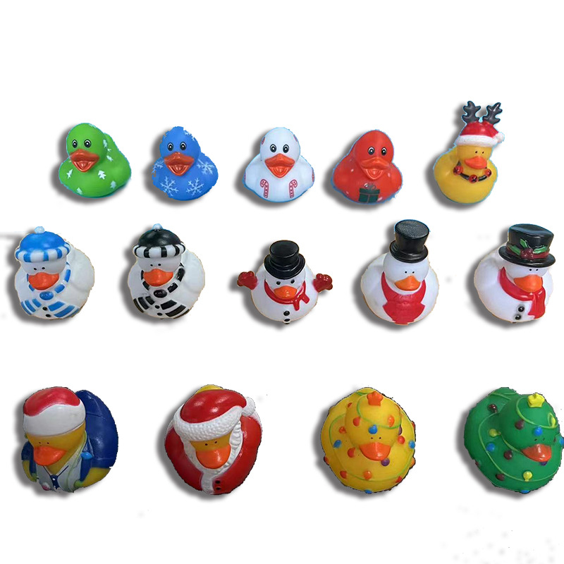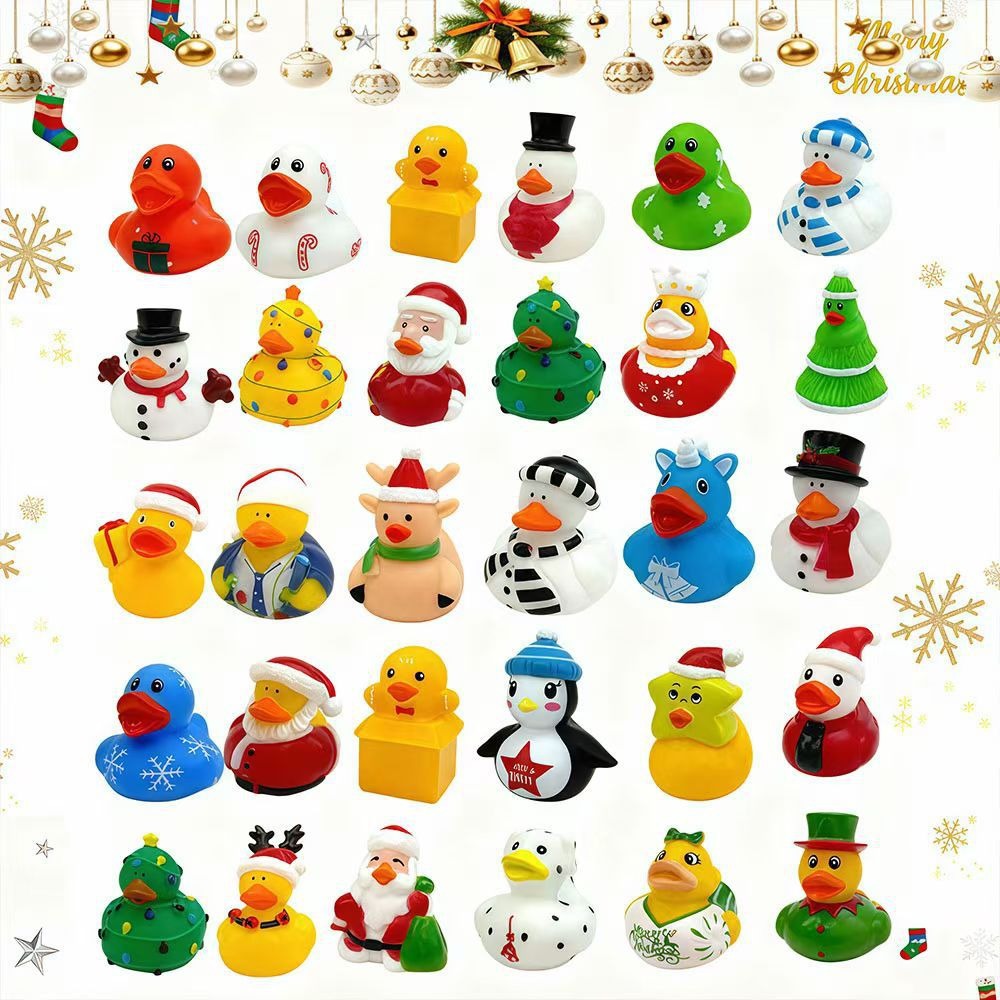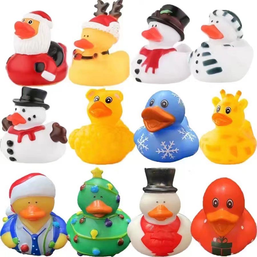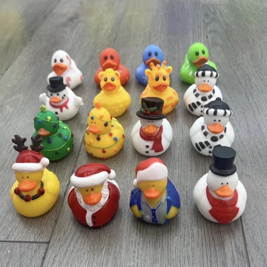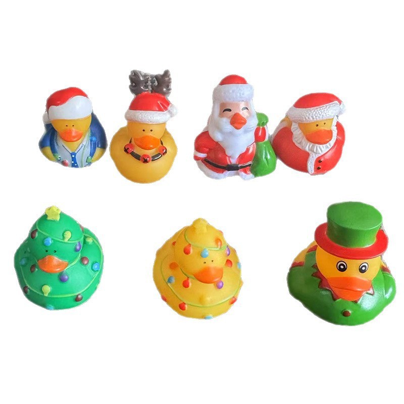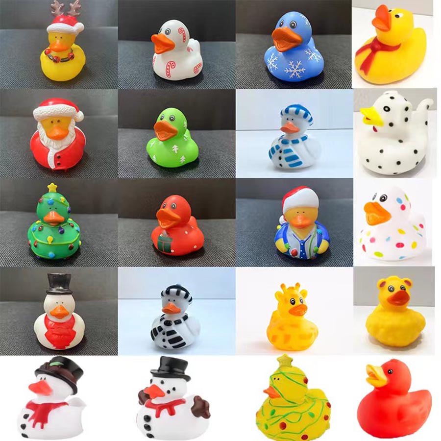 В наличии Рождественская утка виниловая мультяшная кукла, скрипучая игрушка для игр с водой, детская маленькая желтая утка, вечерние игрушки для снятия стресса, игрушка-слепой ящик