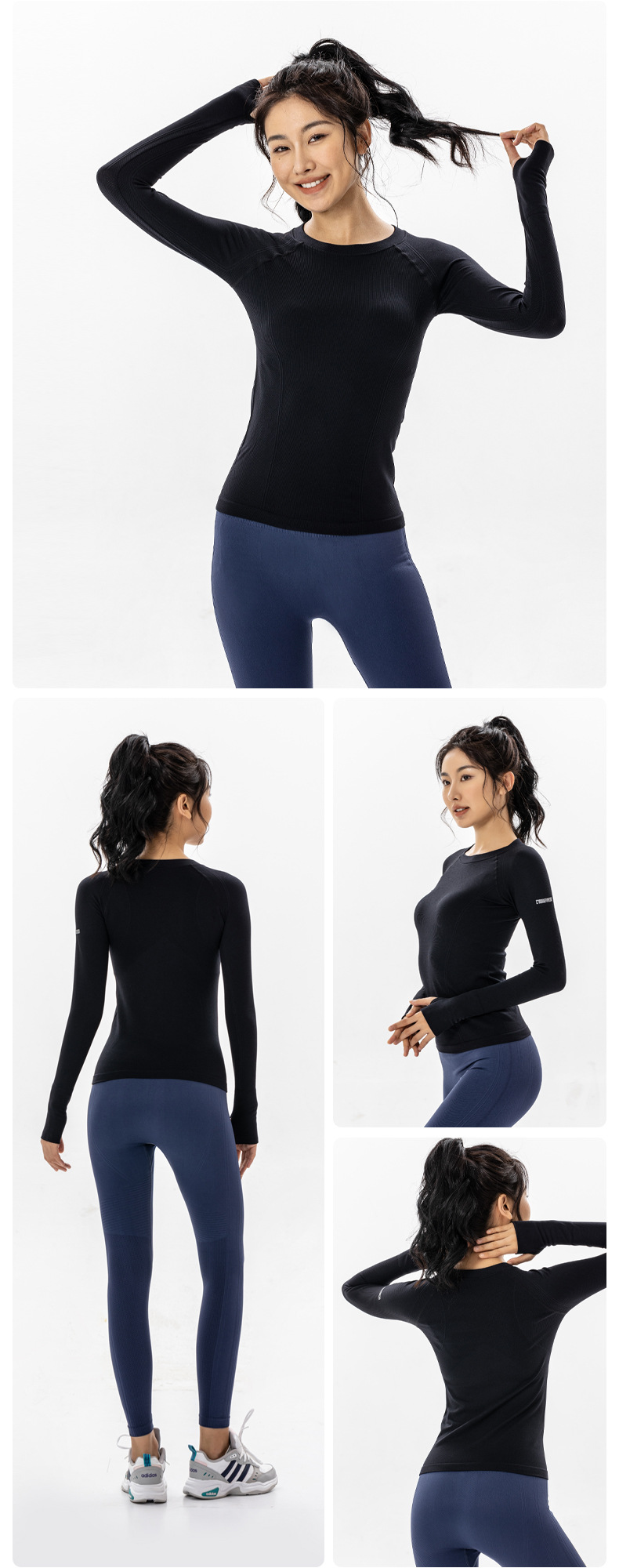 Yi Ang Новая женская спортивная футболка с длинным рукавом для йоги с круглым вырезом однотонная дышащая осенне-зимняя быстросохнущая одежда производители оптом