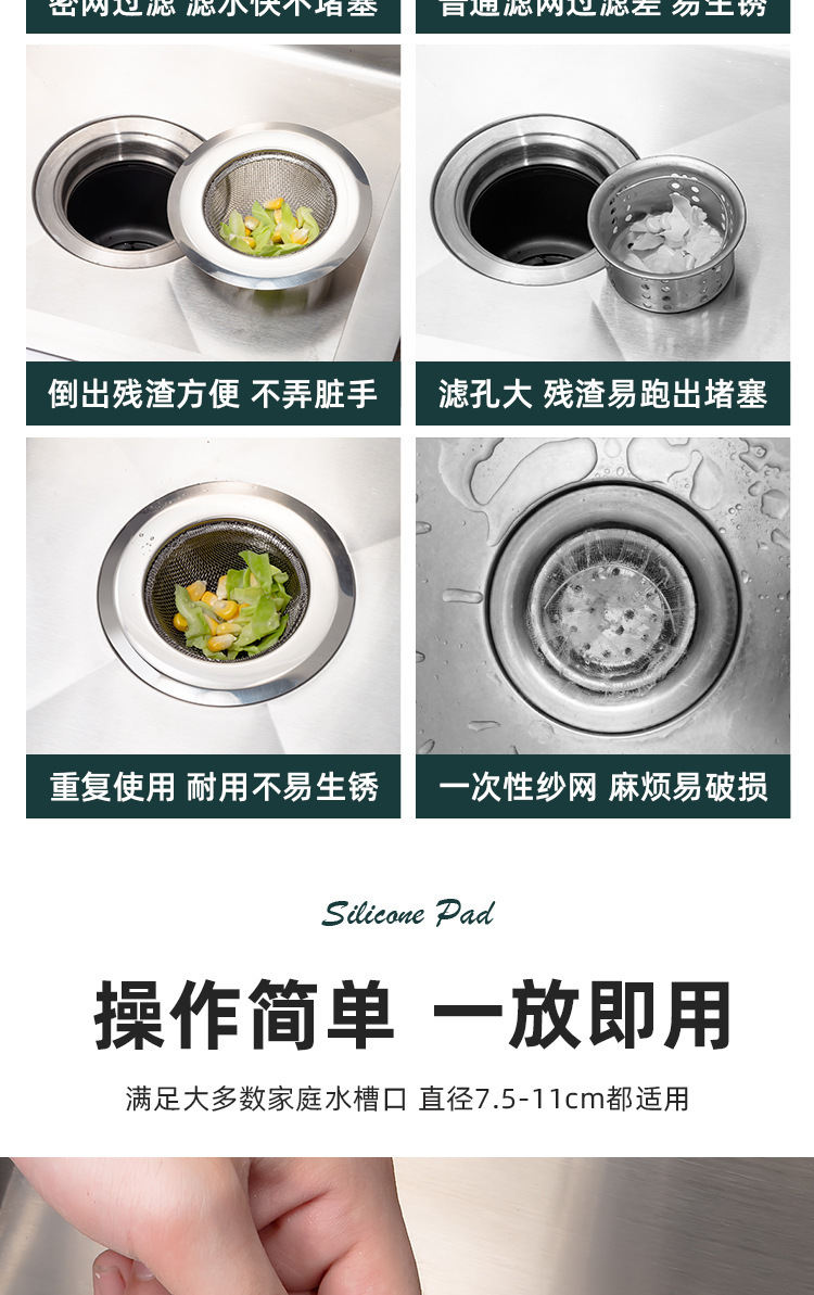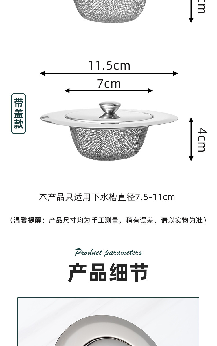 Корзина для раковины диаметром 7,7 см.; Корзина для раковины диаметром 7,7 см [материал 304]; Портативный фильтр диаметром 8,3 см с вилкой; Фильтр для раковины 11,3 см (обычная мелкая сетка) + крышка; Фильтр для раковины диаметром 11,3 см (обычная мелкая сетка); 11.3 Подходящая крышка сита для раковины; Фильтр для раковины диаметром 11,3 см [углубленная и утолщенная мелкая сетка]; Фильтр для раковины диаметром 9 см [углубленная и утолщенная мелкая сетка]; Фильтр для раковины диаметром 7,3 см [углубленная и утолщенная мелкая сетка]; Фильтр для раковины диаметром 5,3 см [углубленная и утолщенная мелкая сетка]; Диаметр 5,4 см [Пробивающий фильтр с широкими полями]; Диаметр 7,4 см [широкопольный перфорационный фильтр]; Диаметр 9 см [Пробивающий фильтр с широкими полями]; Диаметр 11,5 см. Высота 2,5 см. [Пробивный фильтр с широкими полями]; Диаметр 11,5 см. Высота 3 см. [Пробивный фильтр с широкими полями — усиленный]; Диаметр 11см, высота корзины 2см [легкая сетка]; Корзина диаметром 11см и высотой 3см.; Диаметр 7,7 см Высота 4 см Перфорированная корзина [430]; Диаметр 7,7 см Высота 4 см Перфорированная корзина [304]; Диаметр 7,7 см, высота 2 см перфорированная корзина [304]; Диаметр 7,7 см Высота 5 см Перфорированная корзина [304]; Крышка раковины из нержавеющей стали диаметром 8,7 см.; Диаметр 8,1 см, высота 4 см перфорированная корзина.; Диаметр 8,1 см, высота 4,7 см перфорированная корзина.; Диаметр 10,8 см. Высота 5,4 см. Фильтр со скошенными краями.; Диаметр 14см, высота 5см, перфорированный фильтр с ручкой.; Диаметр 8,5 см. Высота 5,5 см. Перфорированный скошенный фильтр.; Диаметр 11см, высота 2см, перфорированный фильтр с ручкой.; Диаметр 11см, высота 2см, перфорированный фильтр с ручкой - черный.; Диаметр 11см, высота 3см, перфорированный фильтр с ручкой.; Диаметр 11см, высота 3см, перфорированный фильтр с ручкой - черный.; Диаметр 14 см. Высота 5 см. Фильтр со скошенными краями.; Диаметр 11 см. Высота 3 см. Низ с одним утечками.; Сетка для слива в полу 7,8 см.; Сетка для слива в полу 9,0 см.; Широкая боковая штамповка, короткий стиль + крышка; Широкая боковая штамповка, высокий стиль + крышка.
