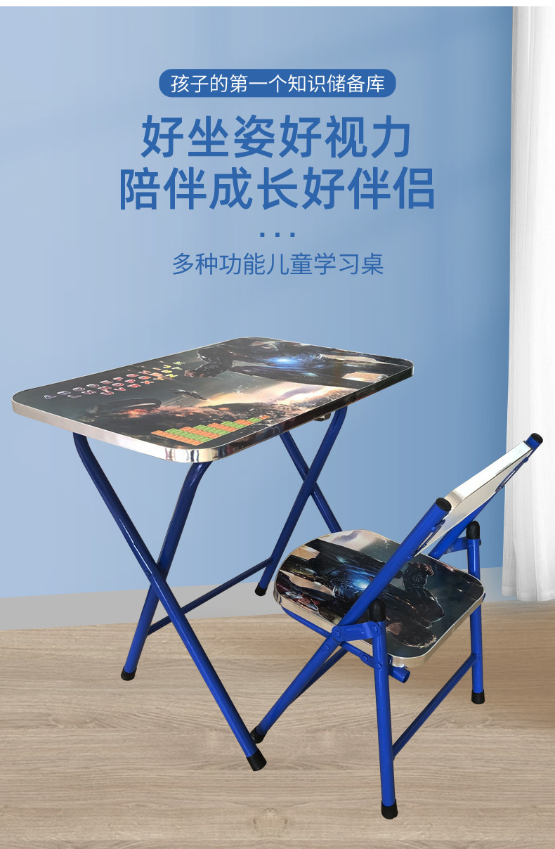 Трансграничный детский складной стол и стул, мультяшный учебный стол, студенческий простой складной учебный стол и стул, костюм