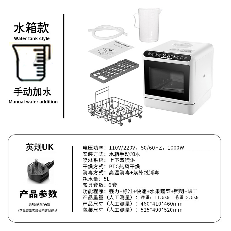 Новая Бытовая настольная установка-Бесплатная посудомоечная машина, автоматическая интеллектуальная мойка, дезинфекция и сушка с экспортным резервуаром для воды