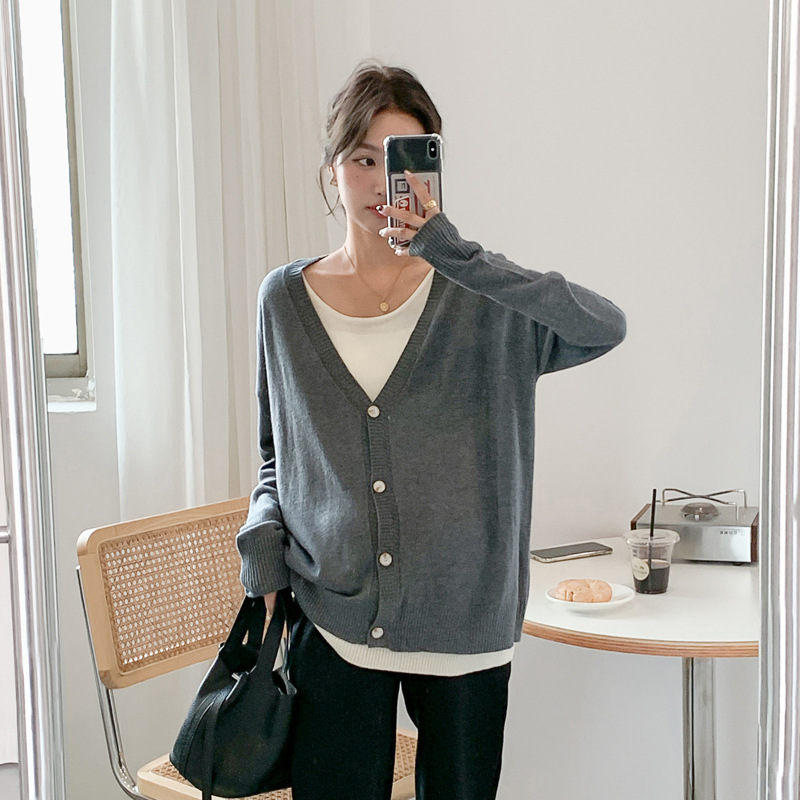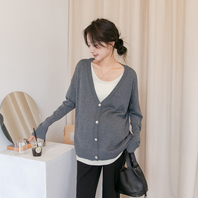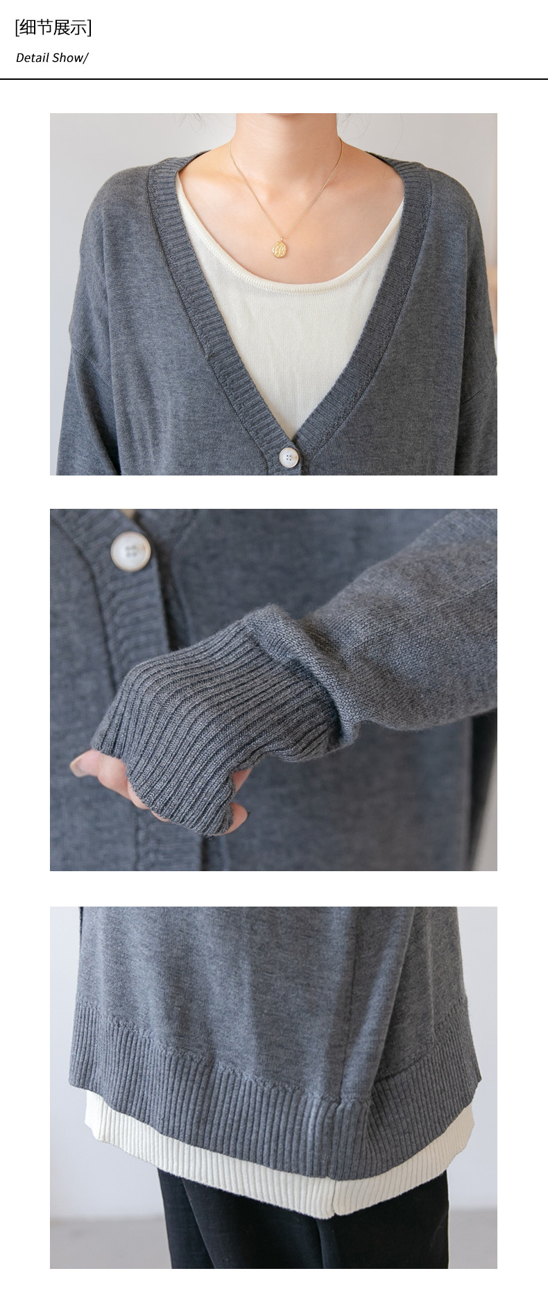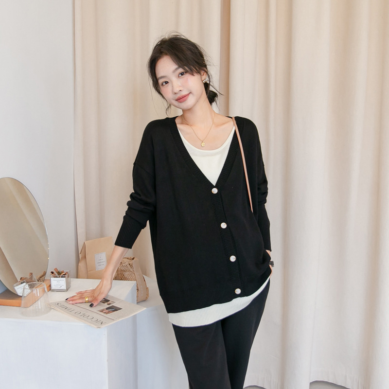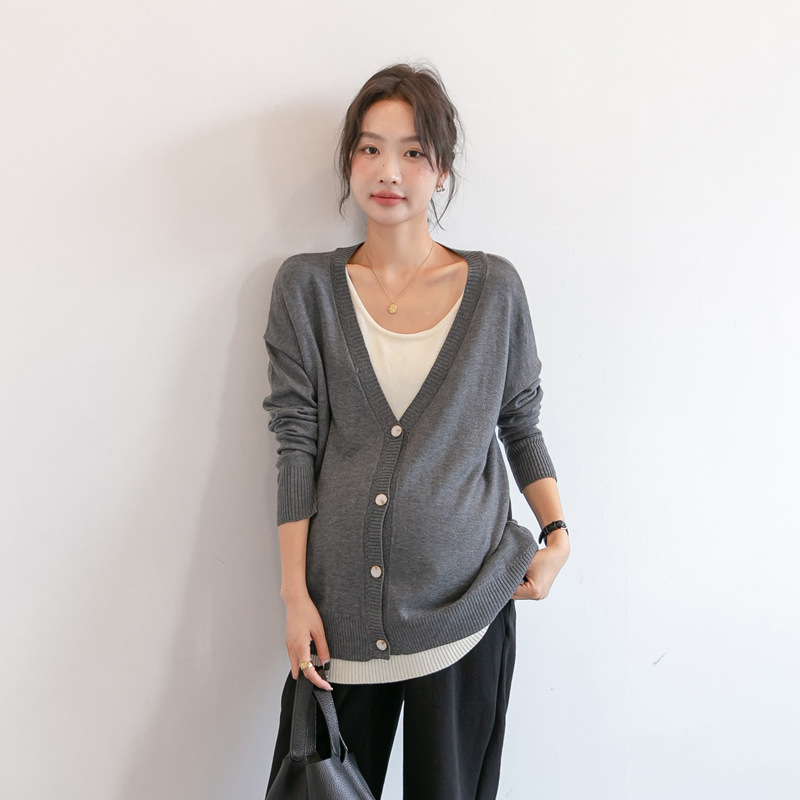 Осенне-зимний женский модный поддельный кардиган для беременных из двух частей, свитер с длинными рукавами, Свободный корейский вязаный свитер больших размеров с V-образным вырезом, открытый