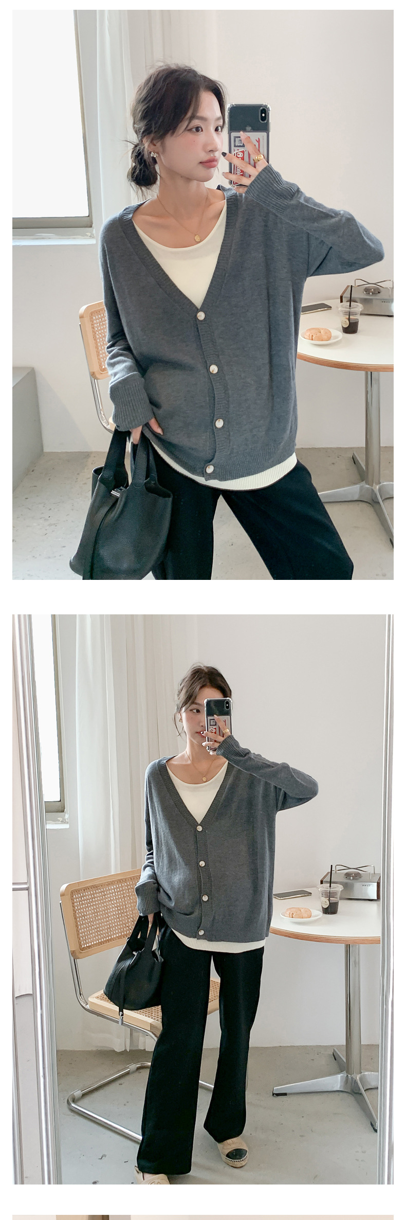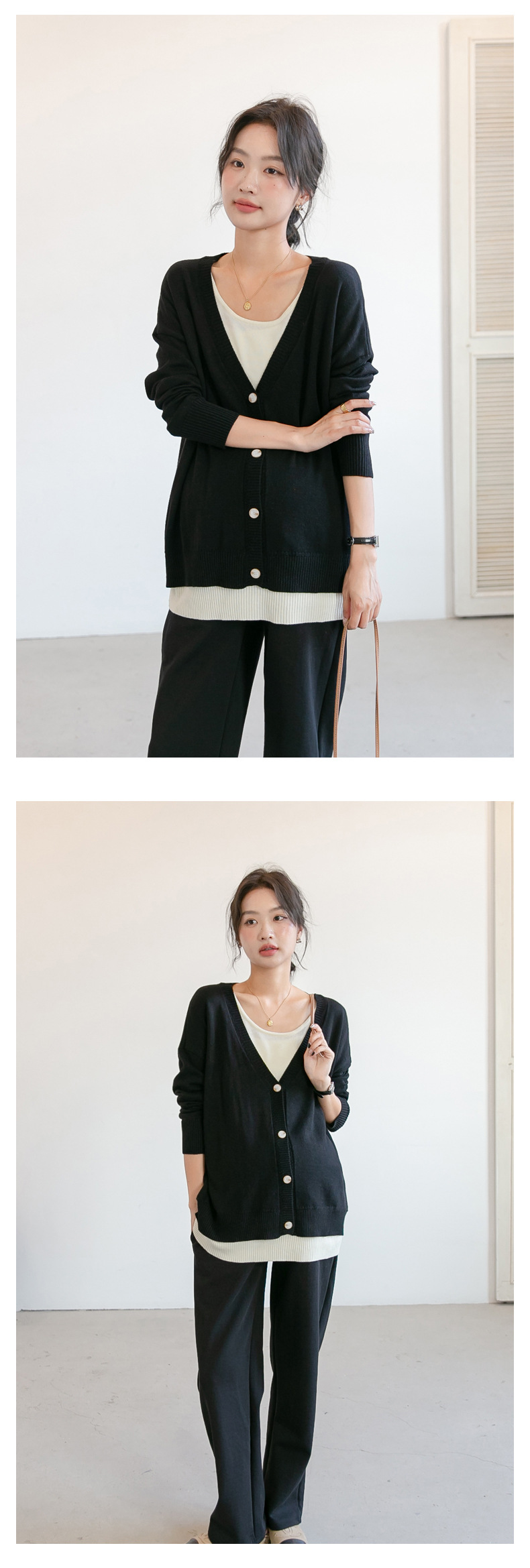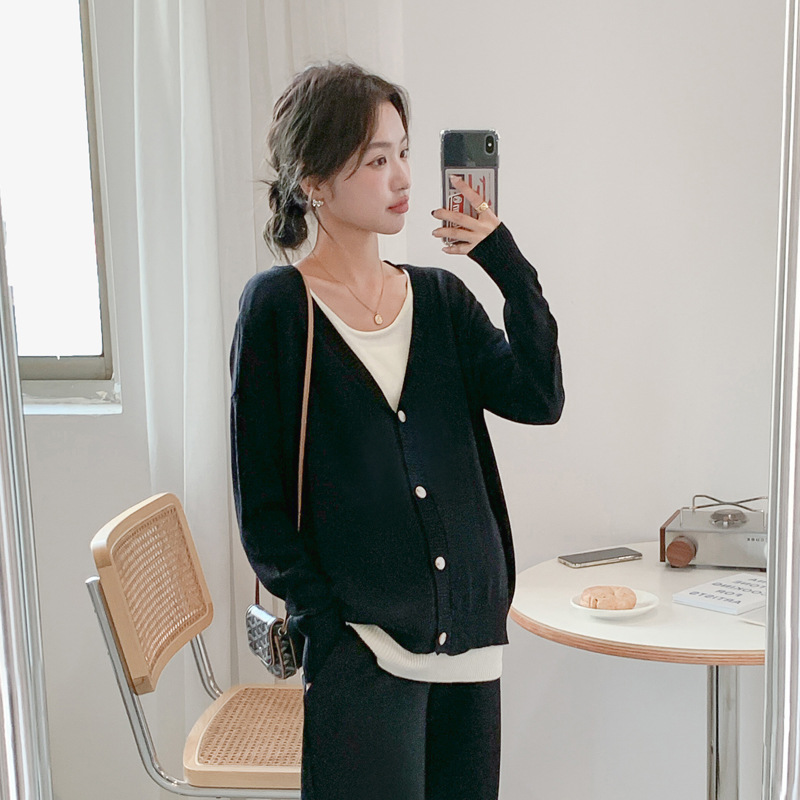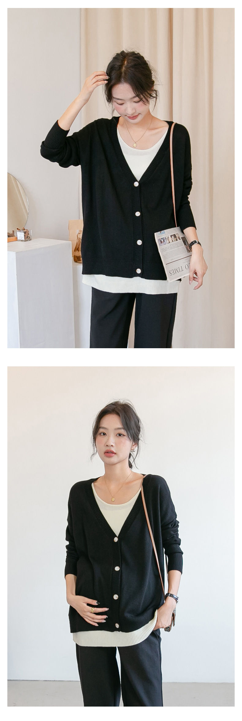 Осенне-зимний женский модный поддельный кардиган для беременных из двух частей, свитер с длинными рукавами, Свободный корейский вязаный свитер больших размеров с V-образным вырезом, открытый