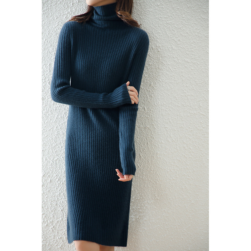 Платье-свитер с высоким воротом, новинка на осень и зиму, шерстяной свитер средней длины, женская вязаная базовая юбка из кашемира, приталенная внутренняя вязаная юбка