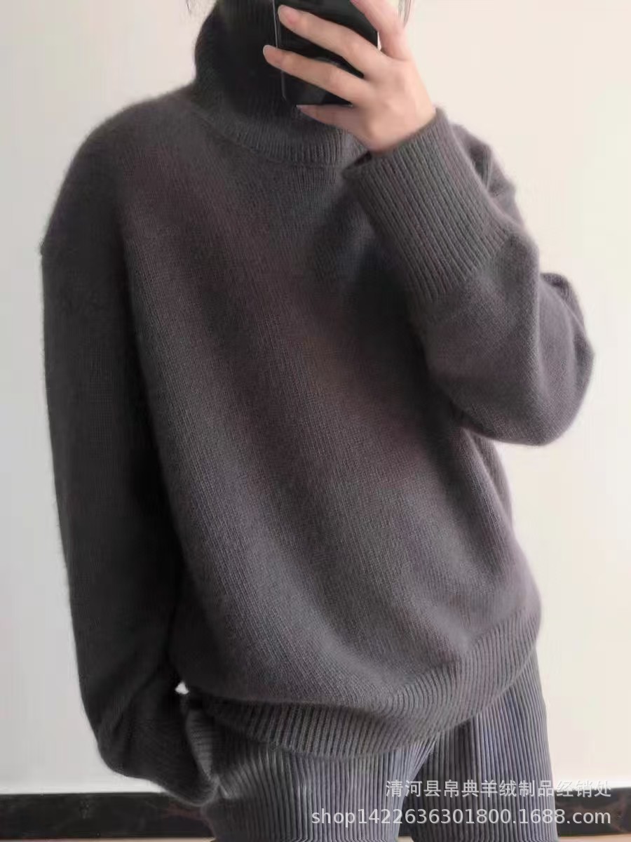Тяжелая водолазка, 100 шерстяной свитер, женский свободный осенне-зимний базовый пуловер для похудения, модный ленивый свитер