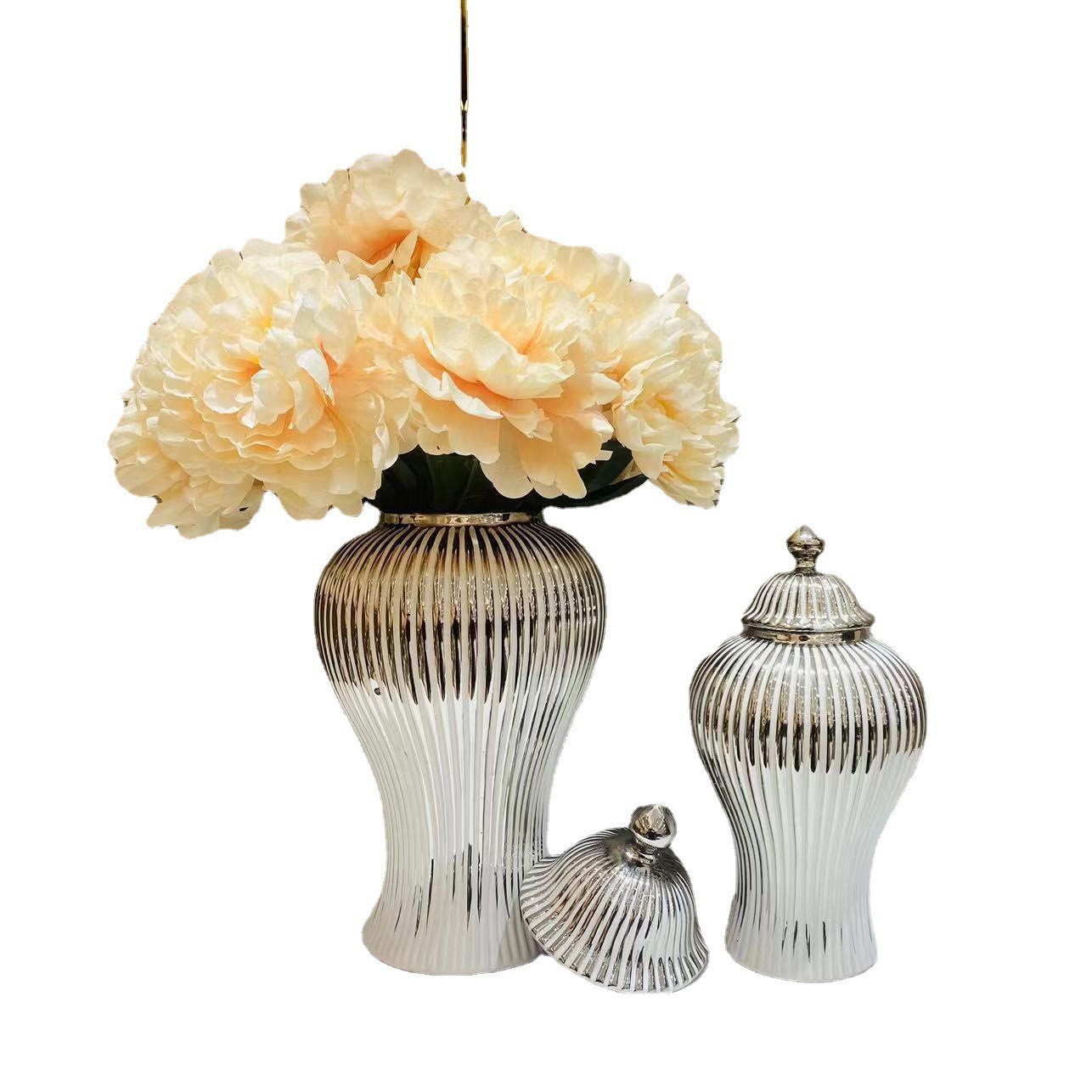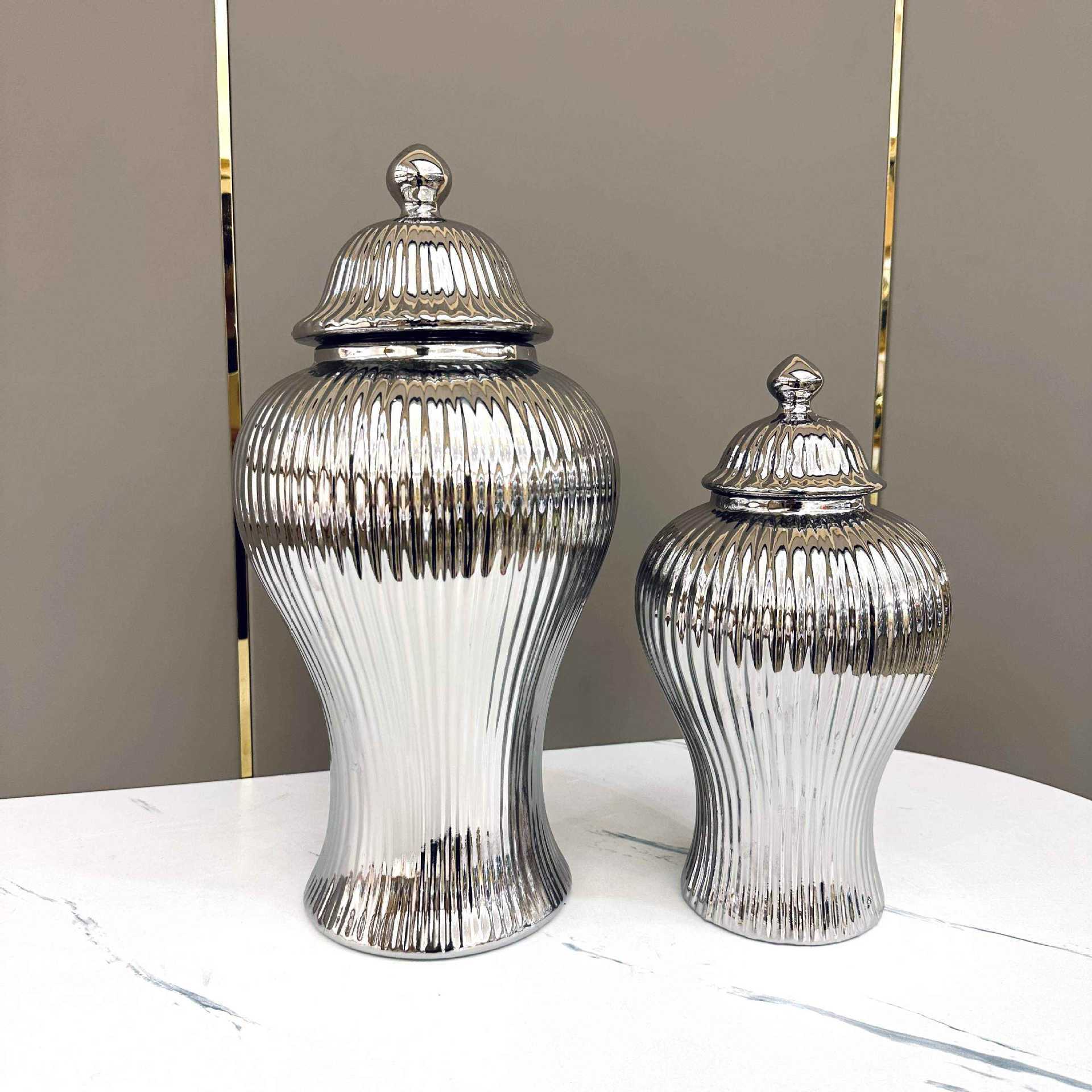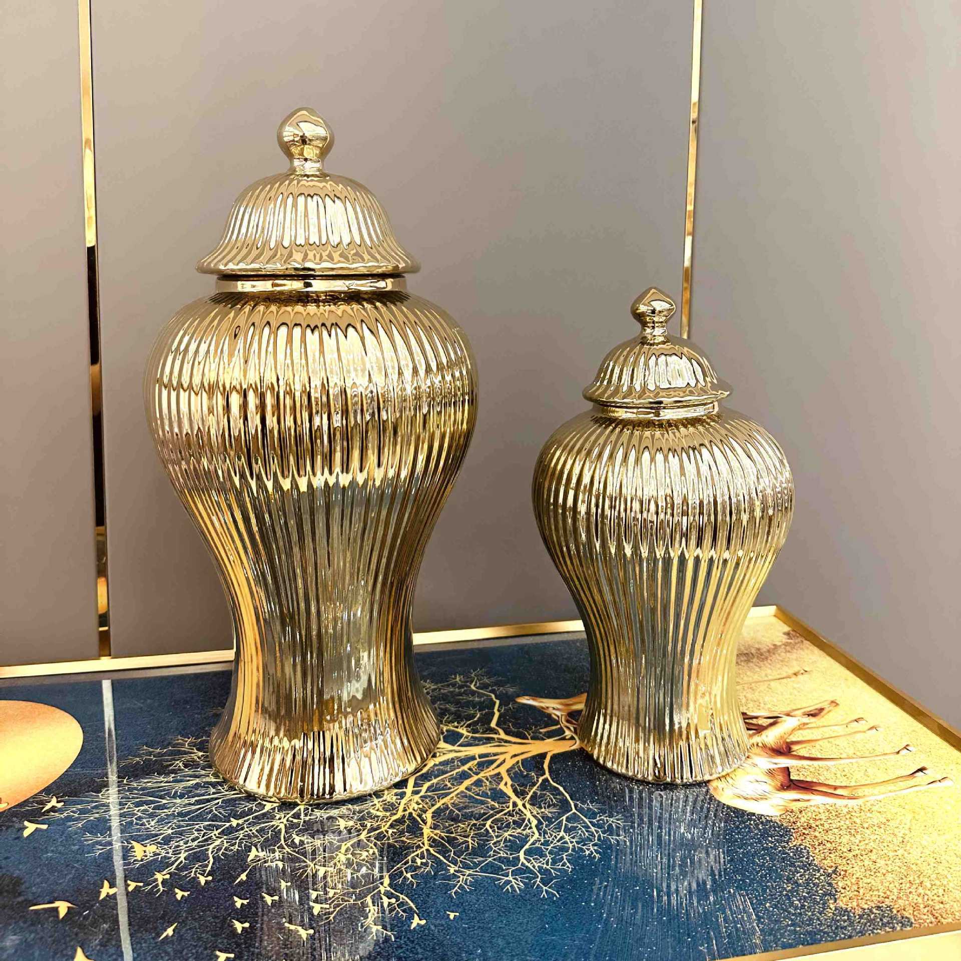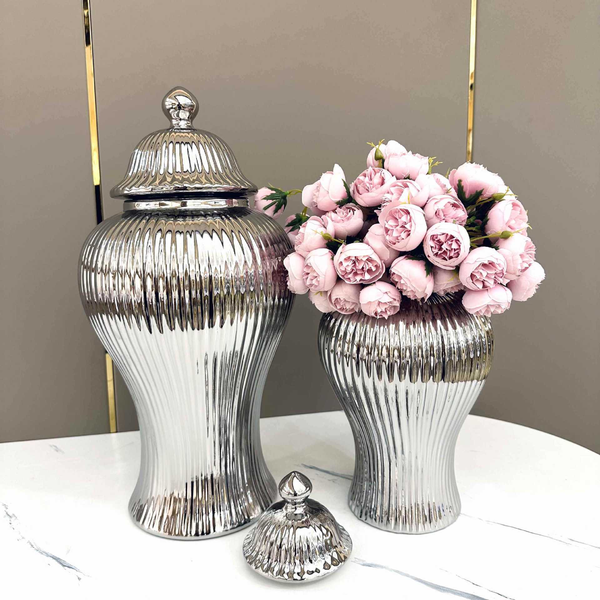 Керамическая легкая Роскошная Гальваническая общая банка Европейская ваза для цветов Ремесленные украшения Прихожая Мягкая декоративная банка для хранения