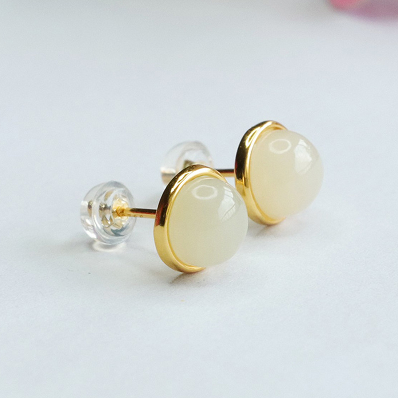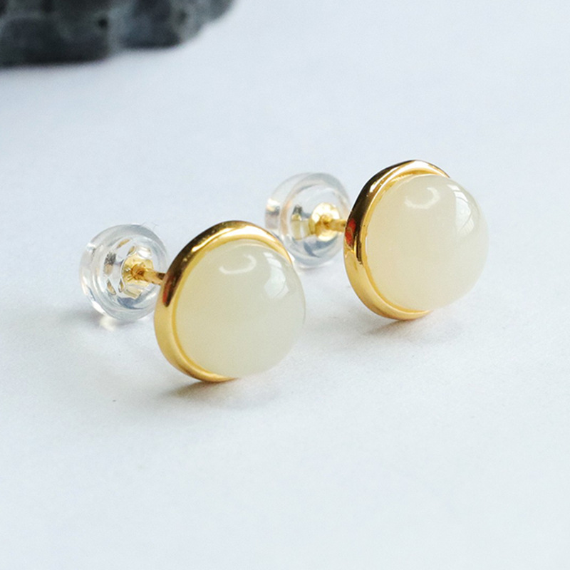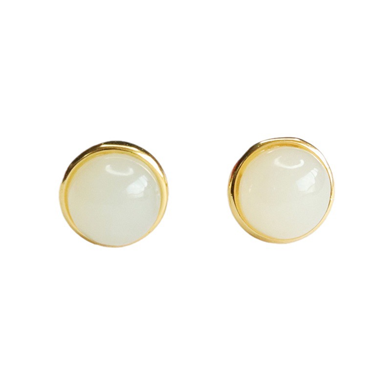 S925 серебряные инкрустированные круглые серьги Hetian Jade из белого нефрита (HT3082404)