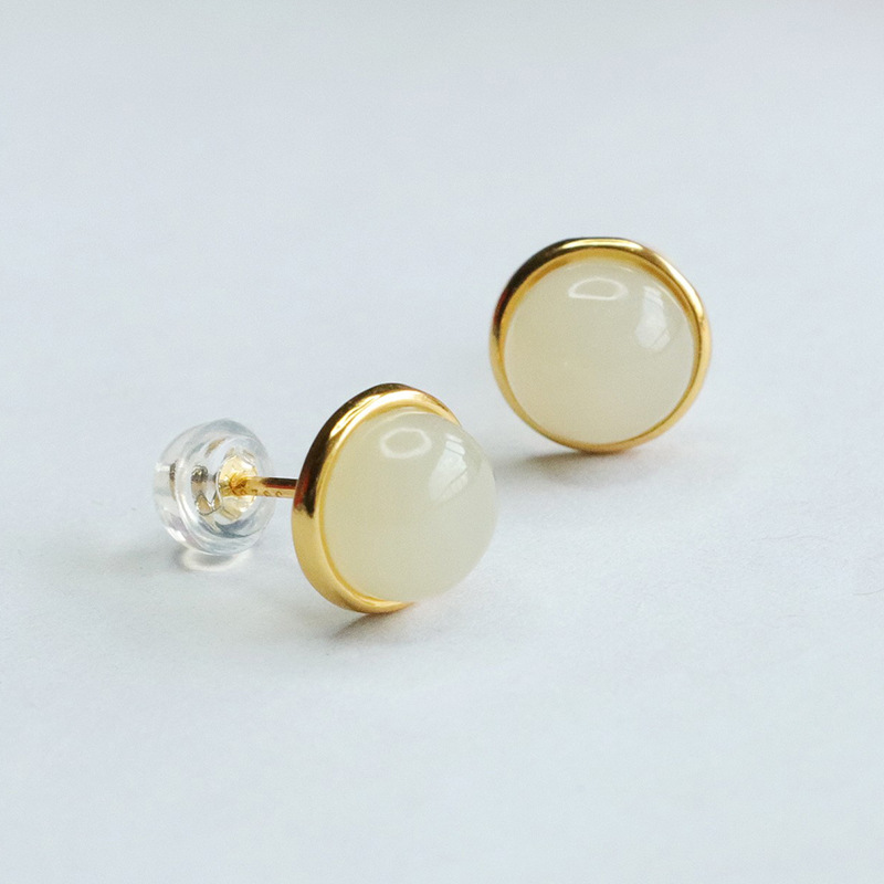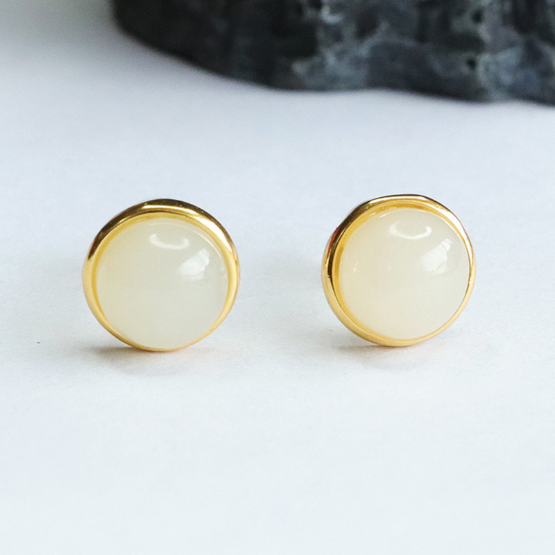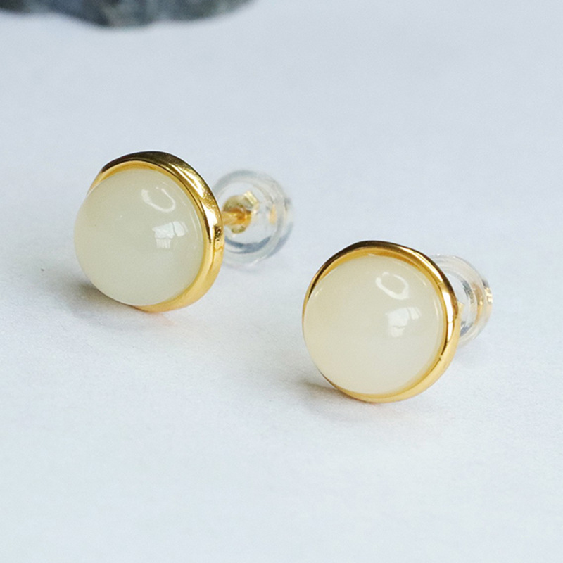 S925 серебряные инкрустированные Hetian нефрит белый нефрит круглые серьги стержня