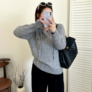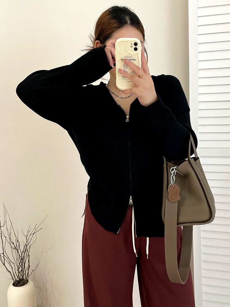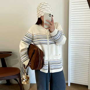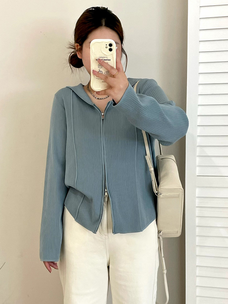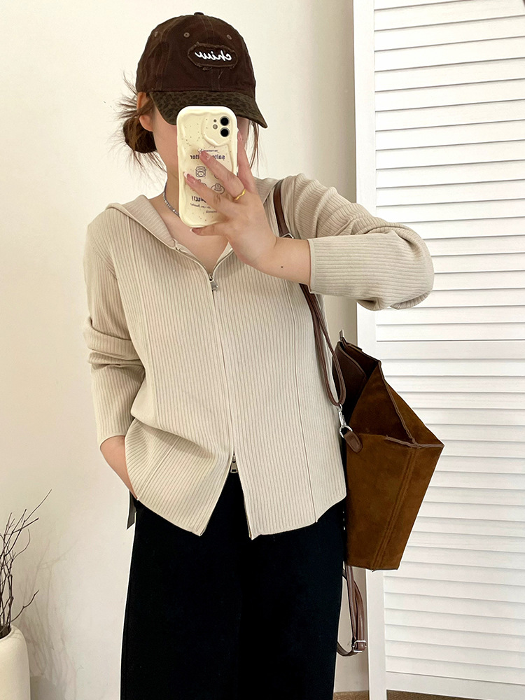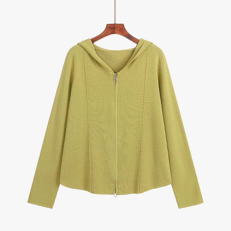 Женская одежда больших размеров, куртка с капюшоном и двойной молнией, топ 2025, осенний свободный вязаный кардиган для полных мм 21921
