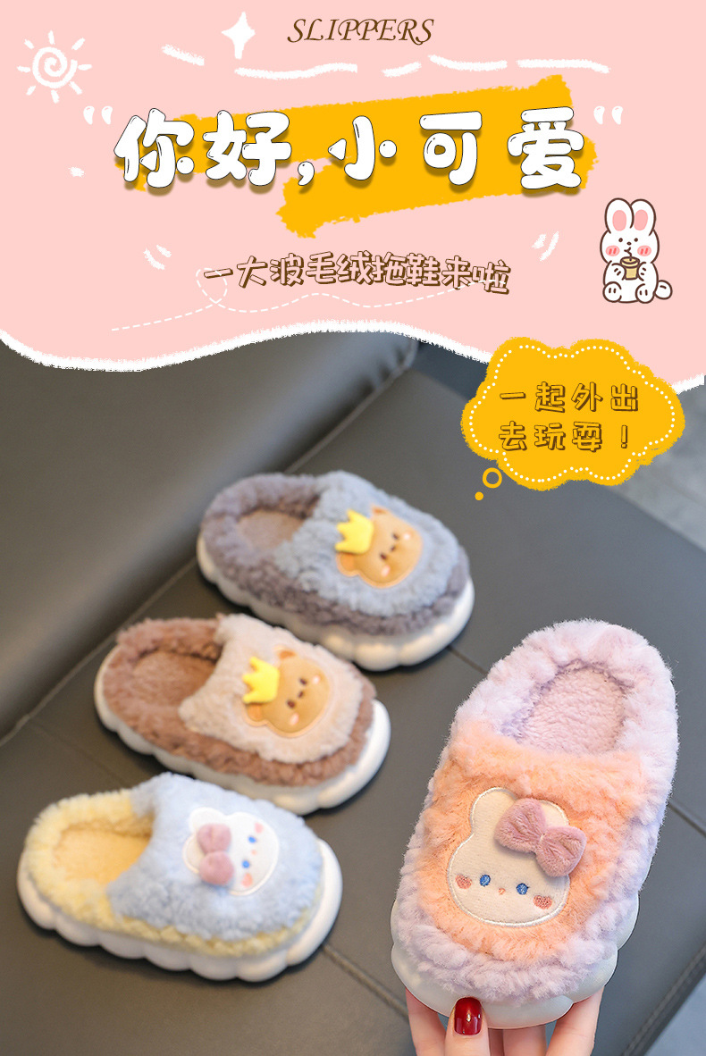 Зимние Детские хлопковые тапочки для мальчиков и девочек, теплые Нескользящие сумки для родителей и детей с флисовой подкладкой, а также детские тапочки из хлопка Мао маленького и среднего размера