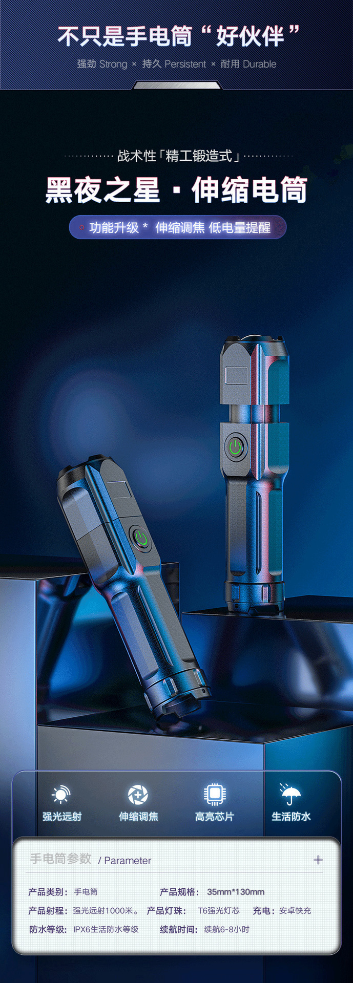 Трансграничный уличный фонарик USB ручной выдвижной прожектор высокая выносливость сильный свет открытый портативный кемпинг свет