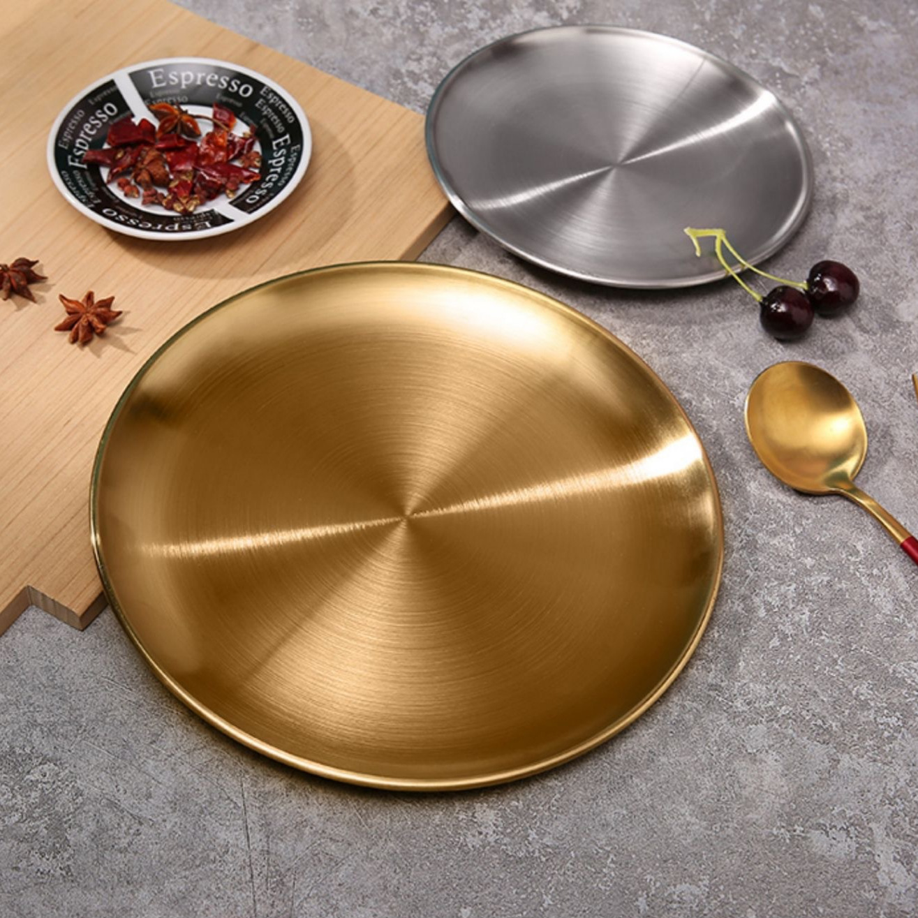 Круглая тарелка для барбекю в корейском стиле, круглая подставка из нержавеющей стали 304, тарелка для мяса, тарелка для фруктов, тарелка для украшений