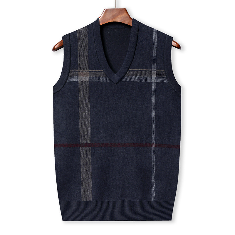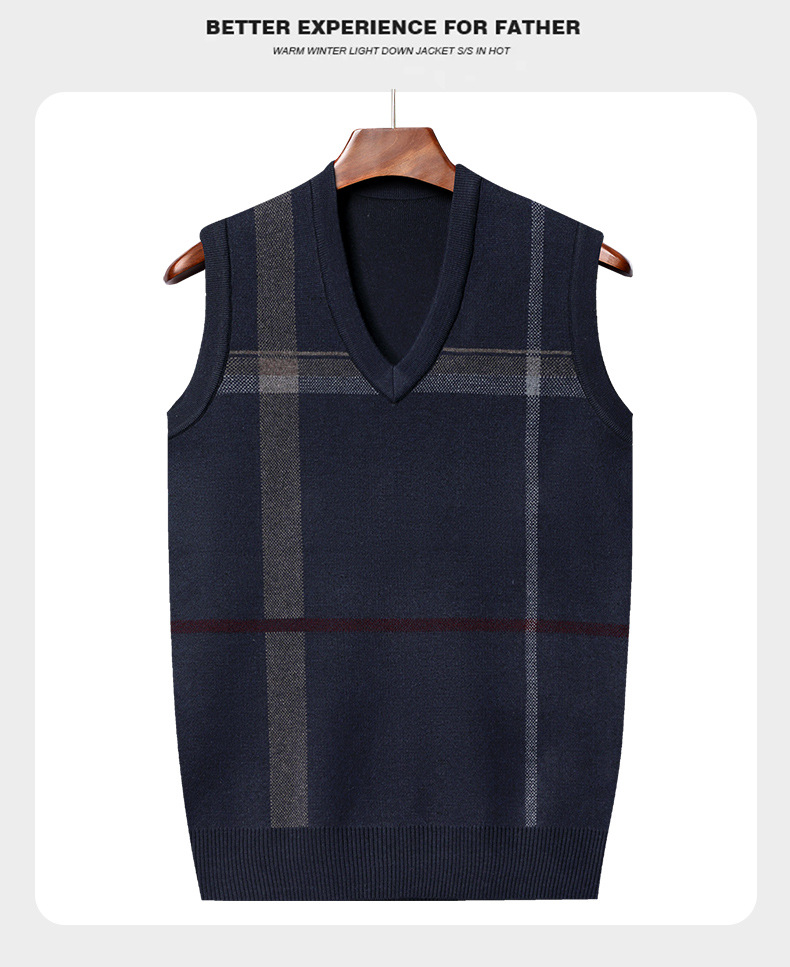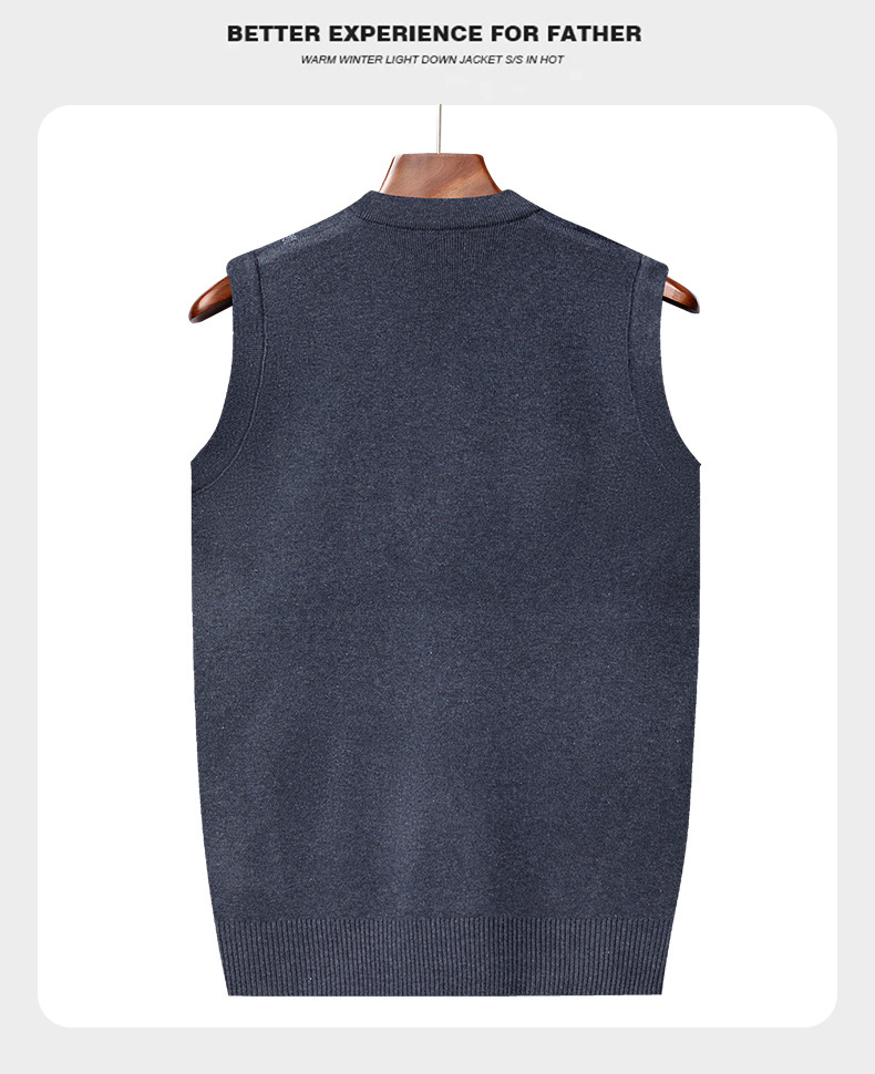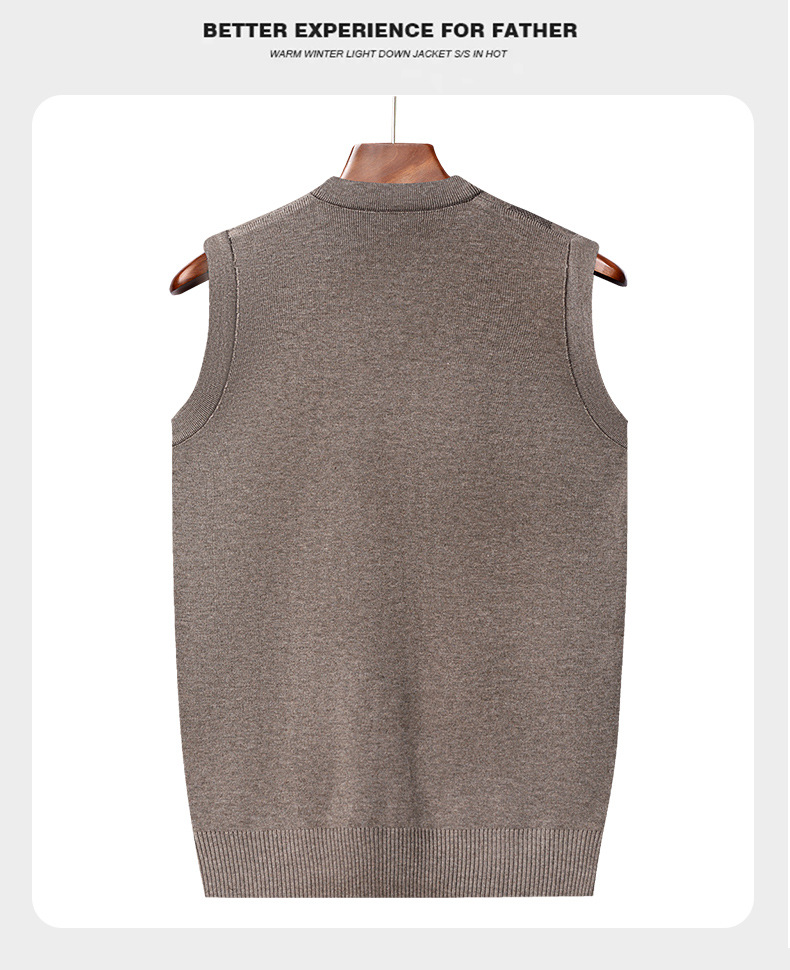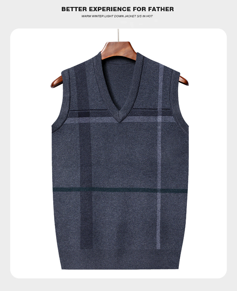 Мужской жилет, жилет для среднего и пожилого возраста, жилет для папы, вязаный свитер без рукавов с V-образным вырезом, зимний теплый базовый топ