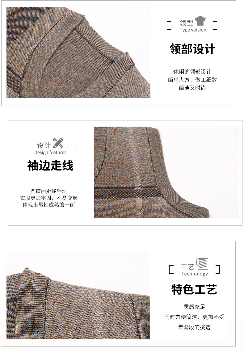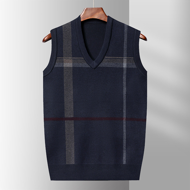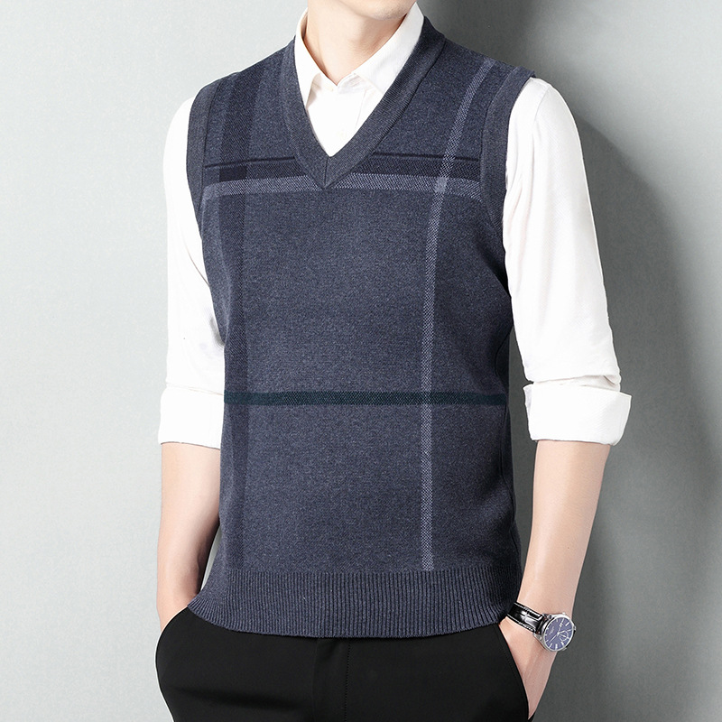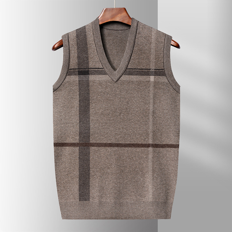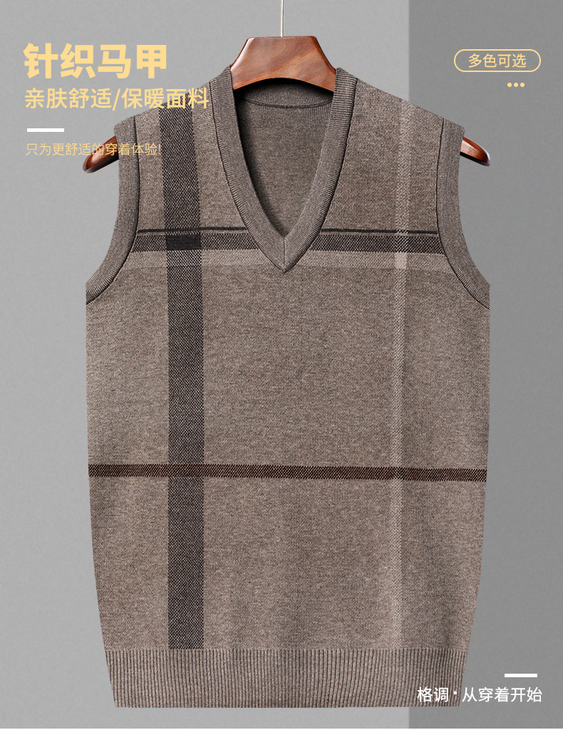 Мужской жилет, жилет для среднего и пожилого возраста, жилет для папы, вязаный свитер без рукавов с V-образным вырезом, зимний теплый базовый топ