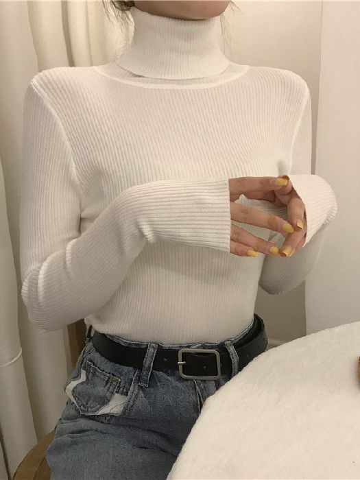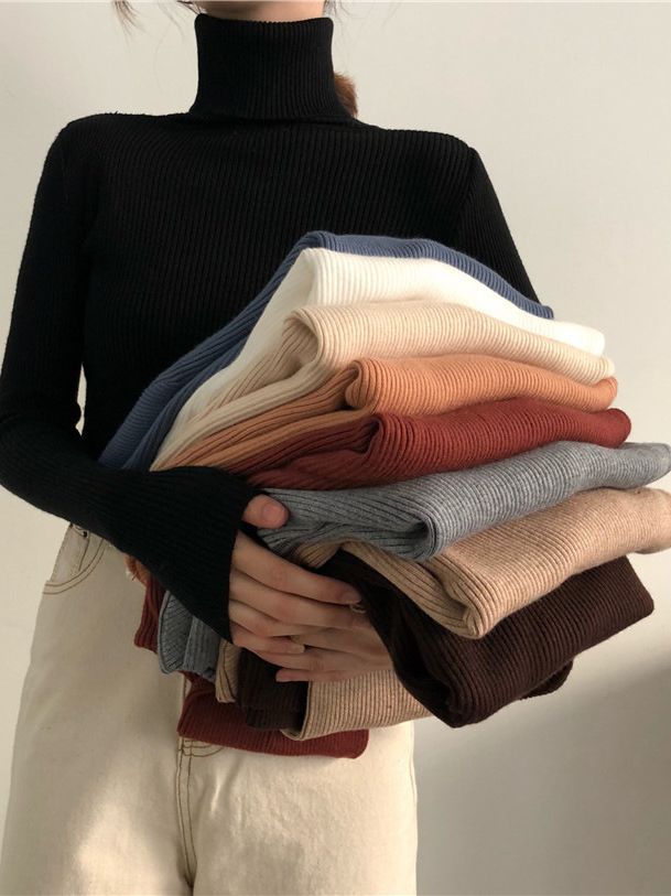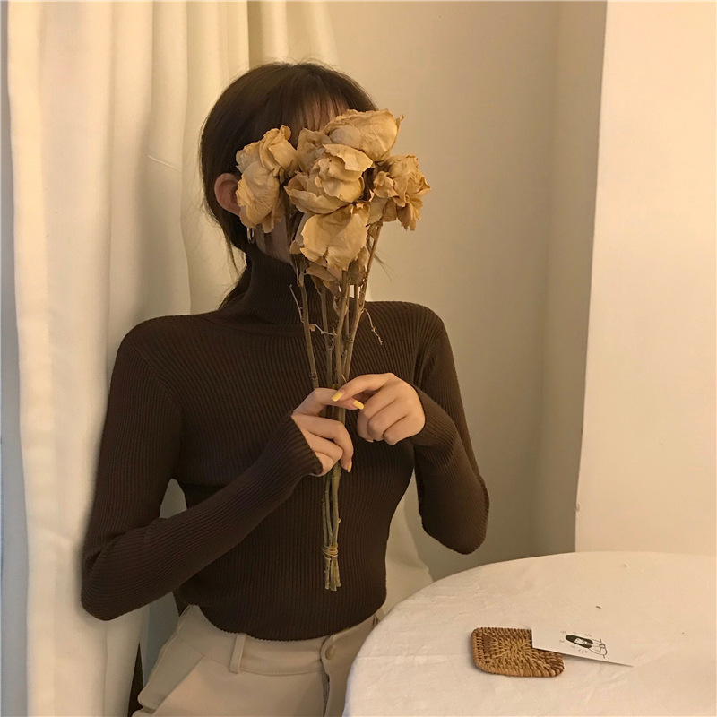 Новая однотонная трикотажная рубашка с высоким воротником, осенне-зимняя внутренняя одежда, женский свитер, универсальный верхний топ, горячий стиль 2023.
