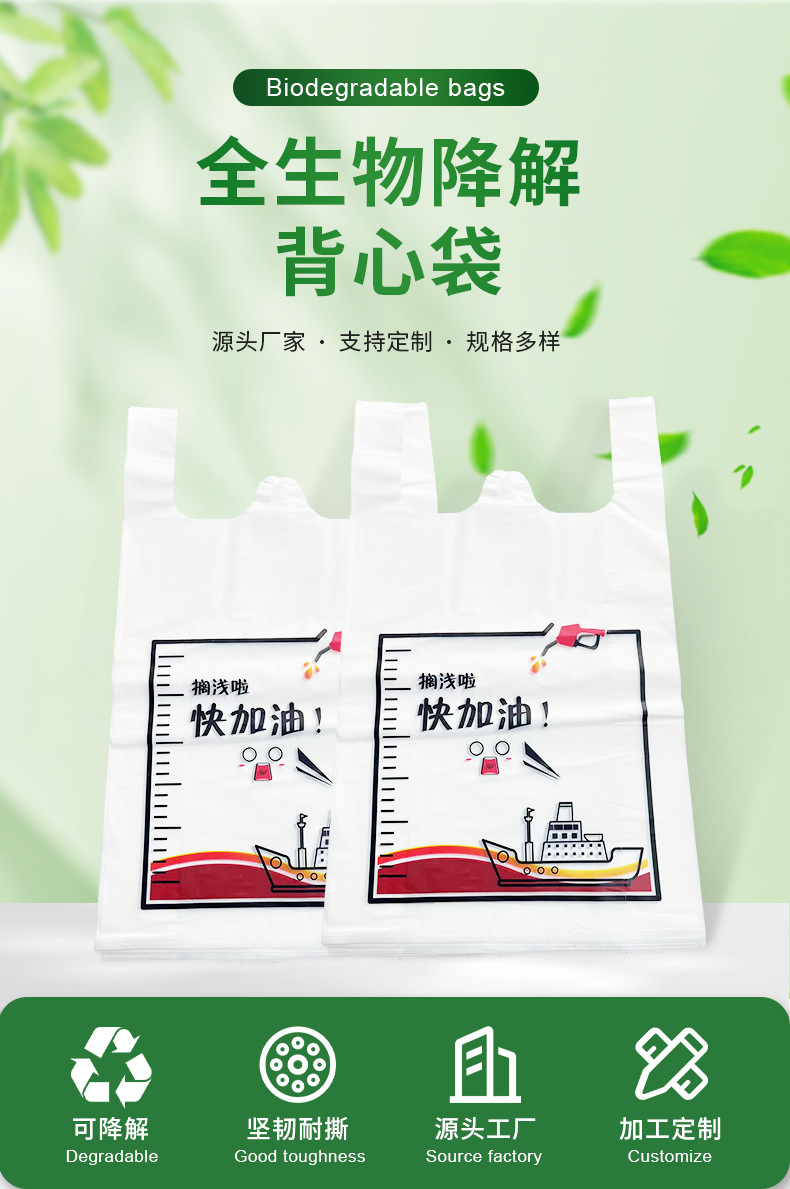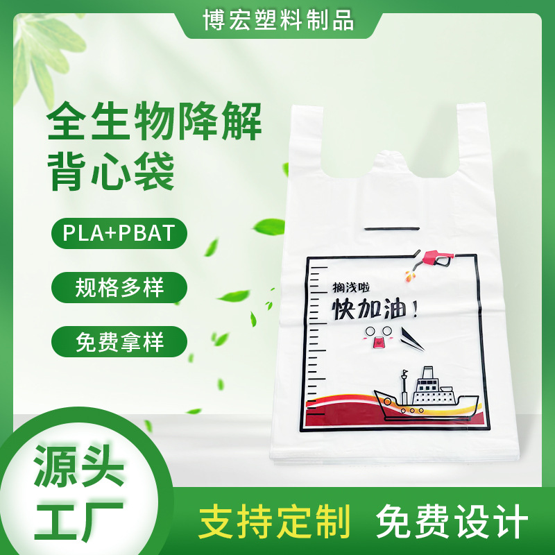 Полностью биоразлагаемые пакеты-жилеты, пакеты для покупок в супермаркетах, упаковочные пакеты для еды на вынос, пакеты из материала с печатью логотипа, экологически чистые, компактные и разлагаемые.