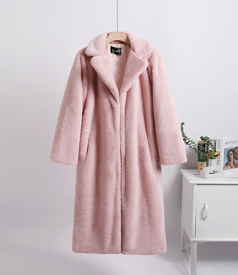 Длинная шуба из меха кролика, утолщенная осенне-зимняя шуба, женское тонкое плюшевое пальто в европейском и американском стиле оптом