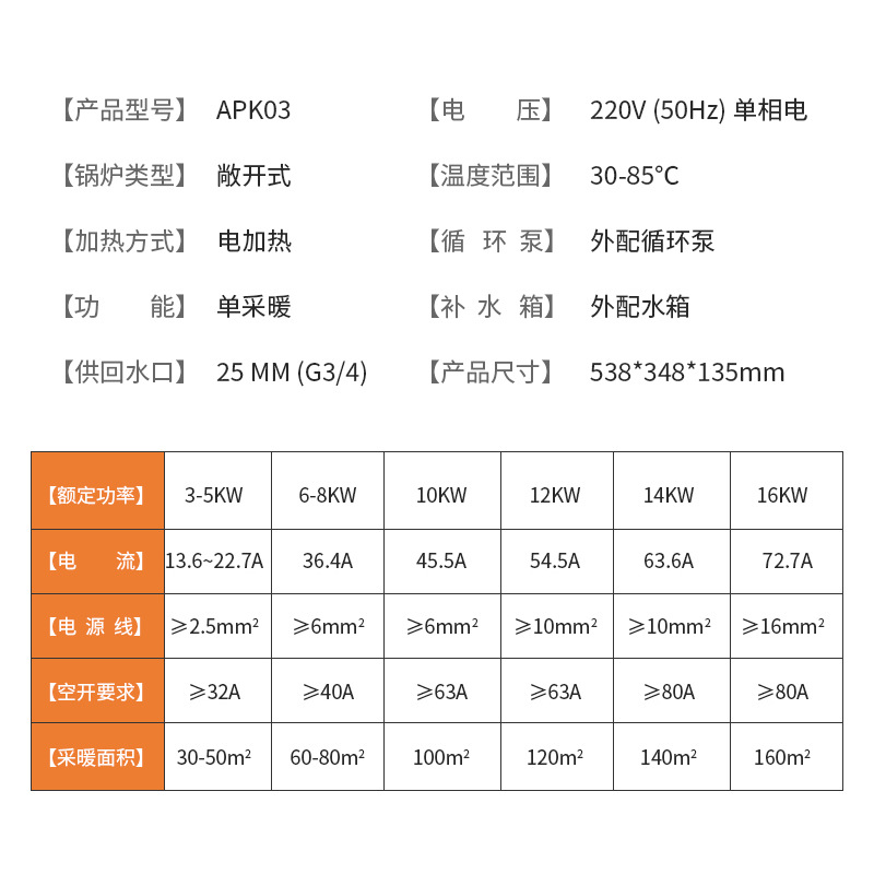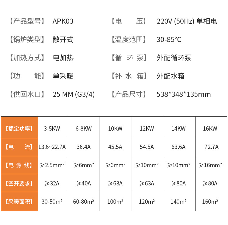 220В-5КВ-[применимый к ㎡ 30-50]; 220В-6КВ-[применимый к ㎡ 60-80]; 220В-8КВ-[применимый к ㎡ 60-80]; 220В-10КВ-[применимый к ㎡ 100]; 220В-12КВ-[применимый к ㎡ 120]; 220В-14КВ-[применимый к ㎡ 140]; 220V-16KW-[Применимо к 160 ㎡]