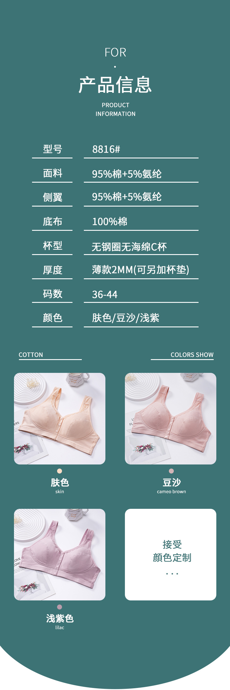 Хлопчатобумажная передняя пряжка маленькое кружево без губки мама нижнее белье женское горячее продавая бюстгальтер большого размера