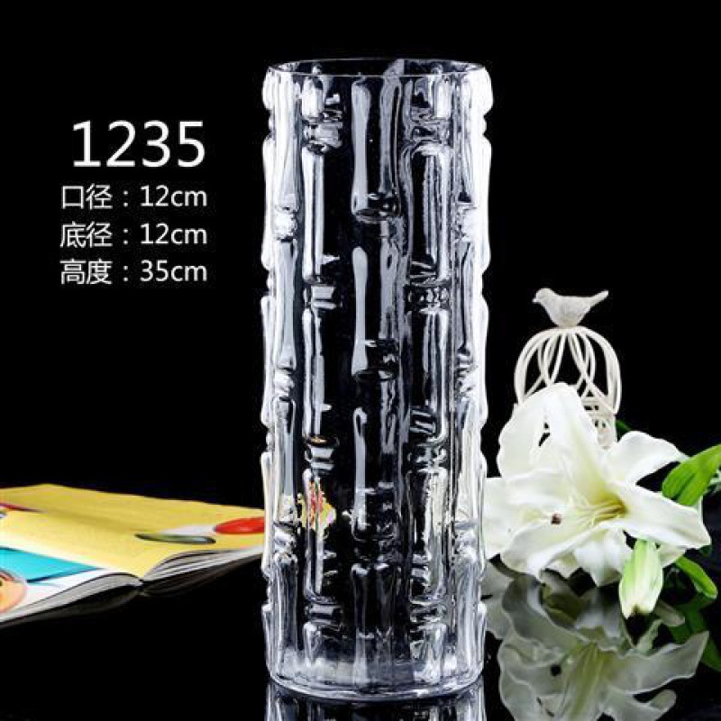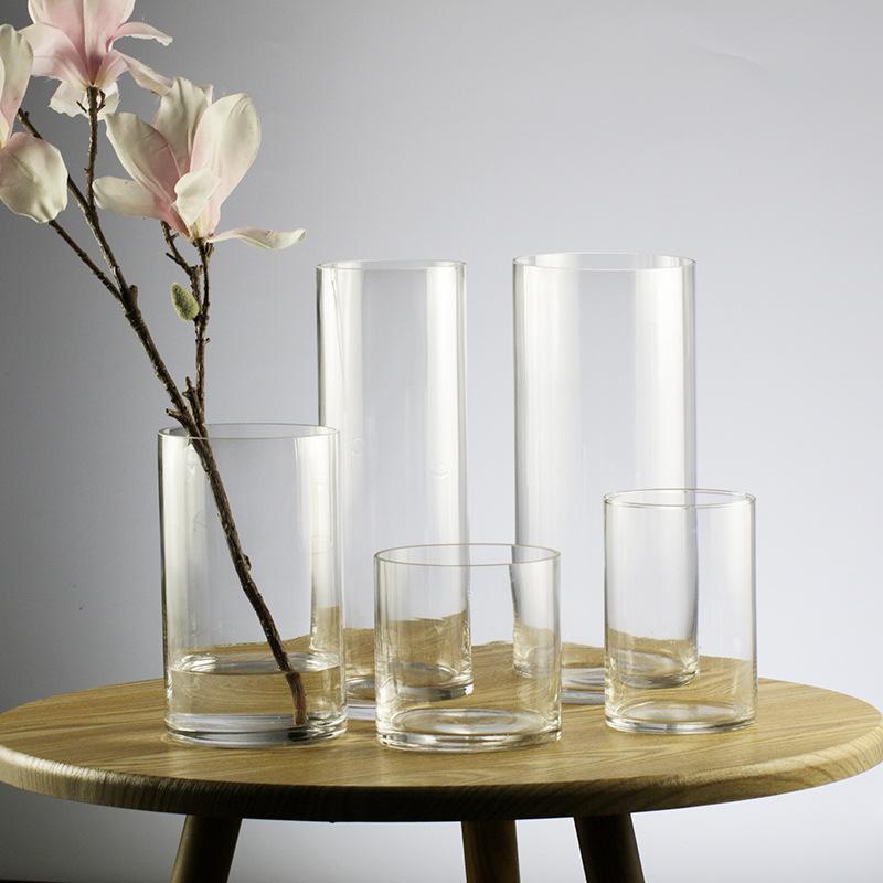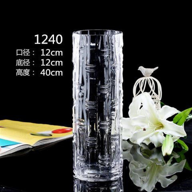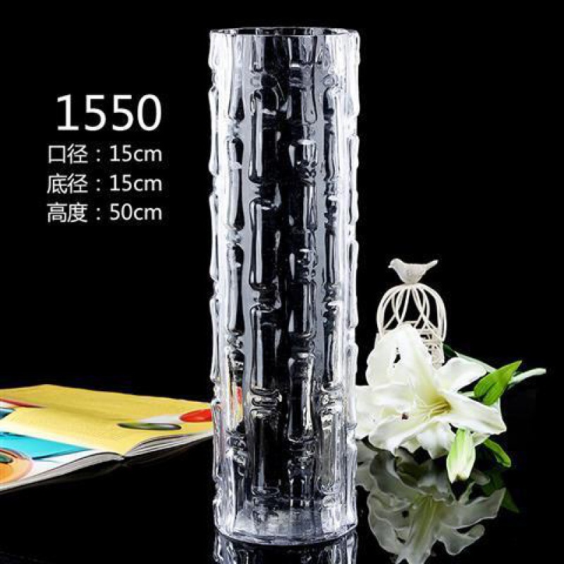 Напольная прямая большая прозрачная стеклянная ваза Свадебная дорожная направляющая Цилиндрическая ваза Гостиная Богатые бамбуковые Гидропонные украшения