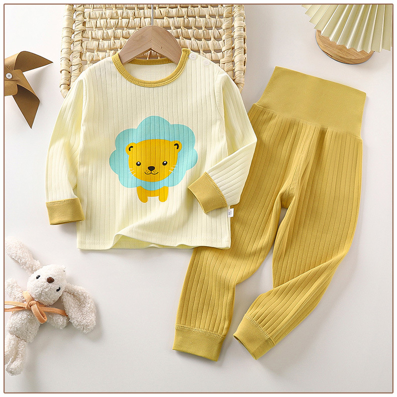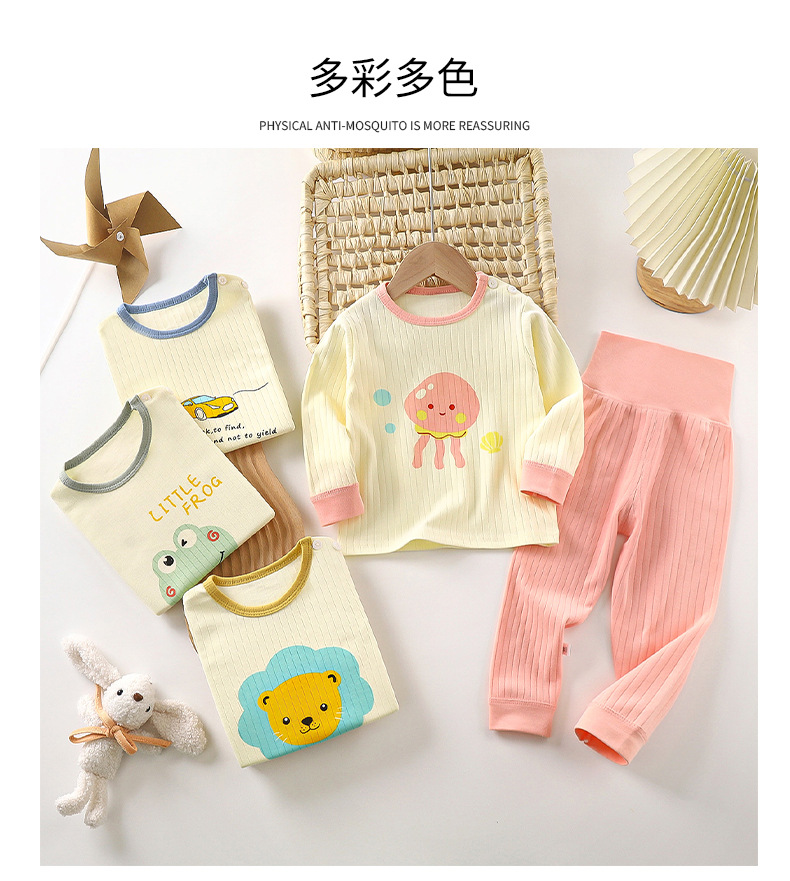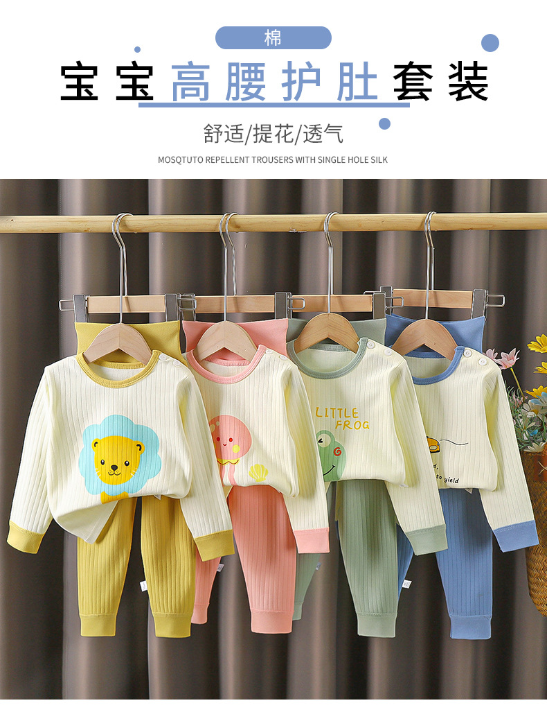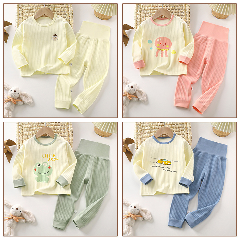 Детский хлопковый нижнее белье с высокой талией, весенне-Осенняя детская одежда для девочек, пижамы с длинными кальсонами, хлопковая домашняя одежда