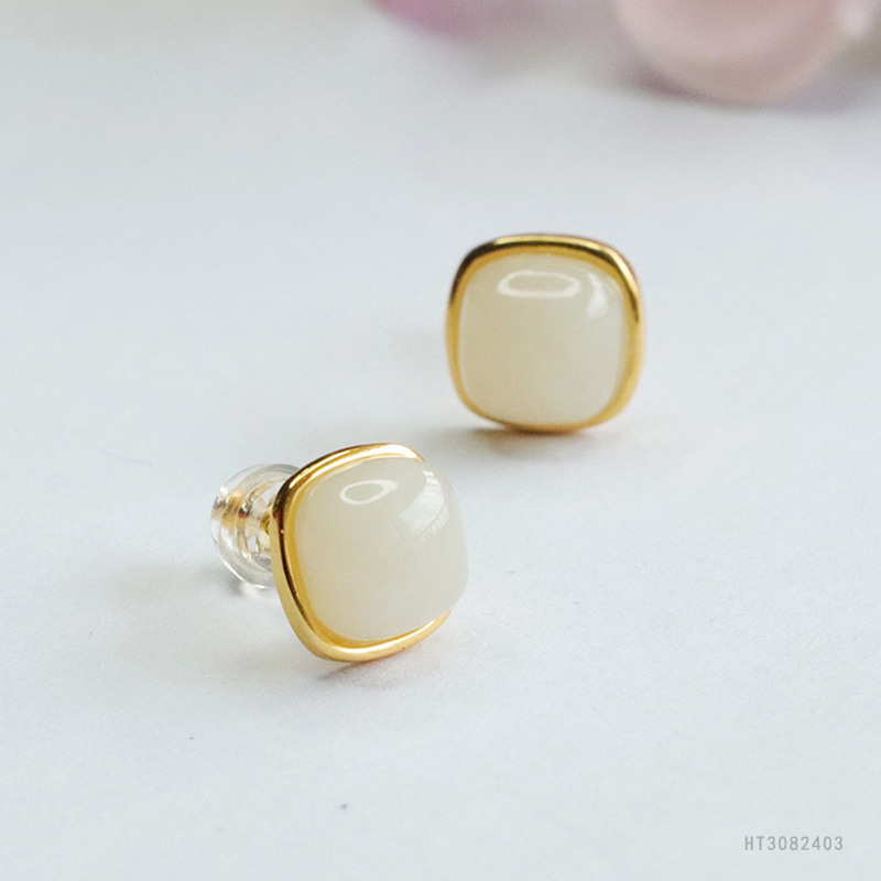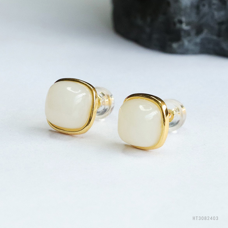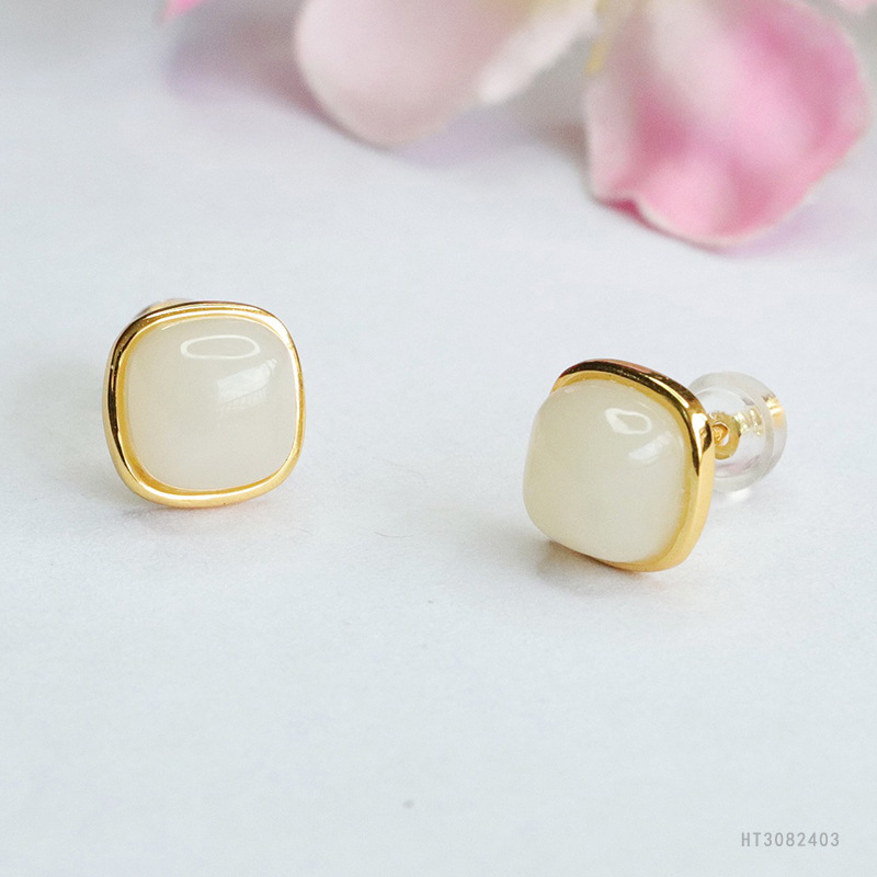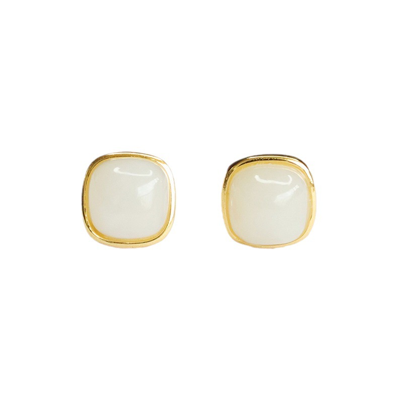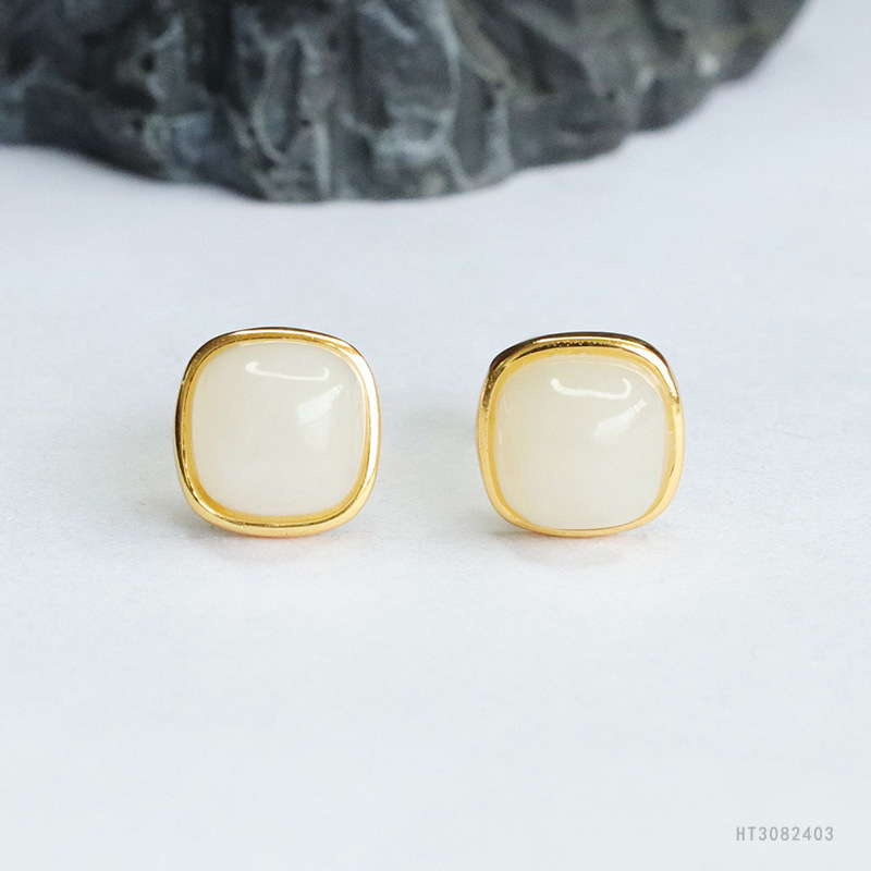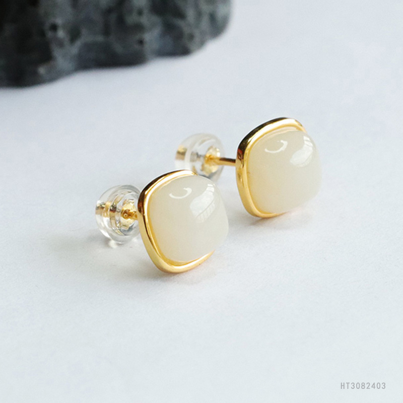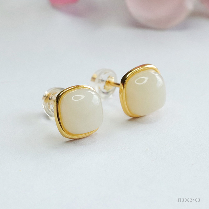 S925 инкрустированные серебром Hetian Jade Белый нефрит серьги в форме сахара